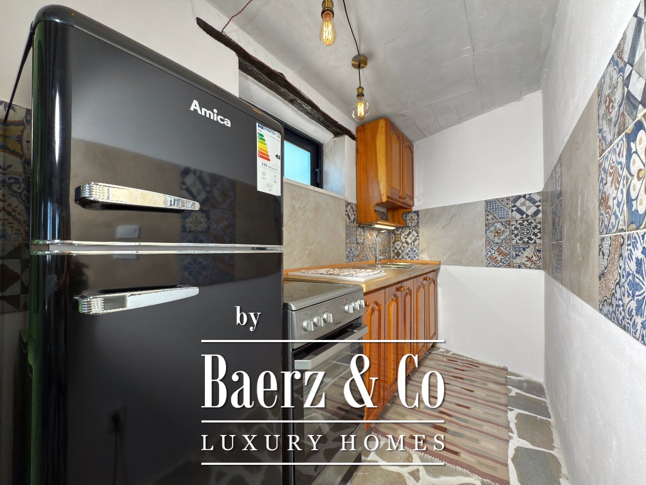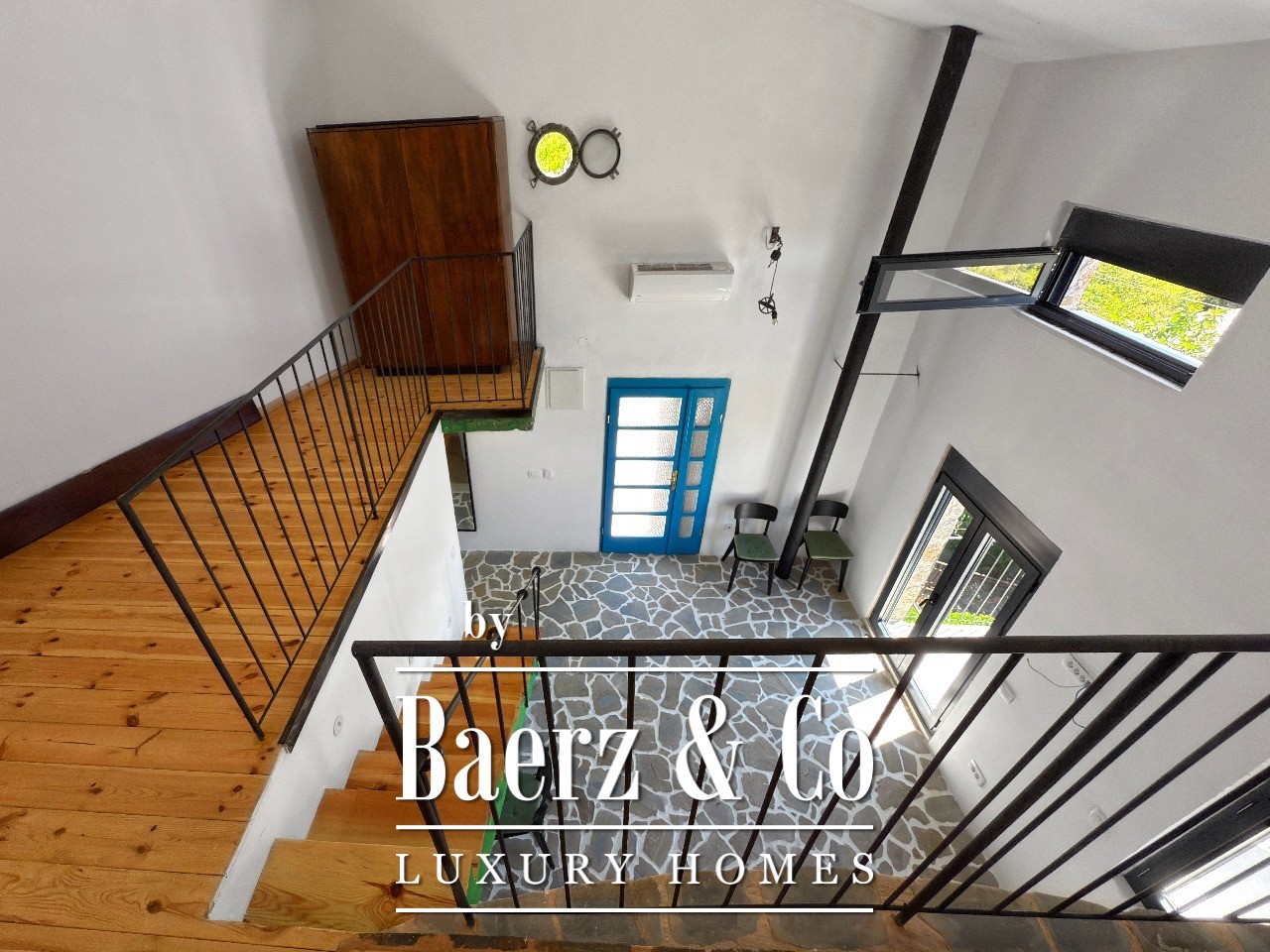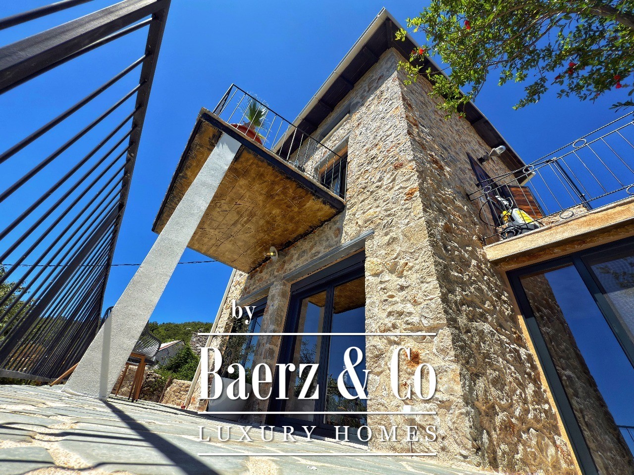 تبلغ مساحة المنزل 102 م² تتوزع على ثلاثة طوابق، ويتميز بواجهة حجرية تمنحه إحساساً بالثبات والديمومة. يتضمن التصميم مدروسا قبوًا مع خزان مياه خاص، غرفتين للنوم، حماماً واحداً، ومساحة معيشة متصلة بمطبخ ومنطقة طعام. تفتح ثلاث شرفات على مناظر خضراء مع إطلالة جزئية على بحيرة سكادار المتلألئة في الأفق. يتوفر موقف سيارات خلف المنزل، أما العقار نفسه فهو مفروش بالكامل وجاهز للسكن الفوري.