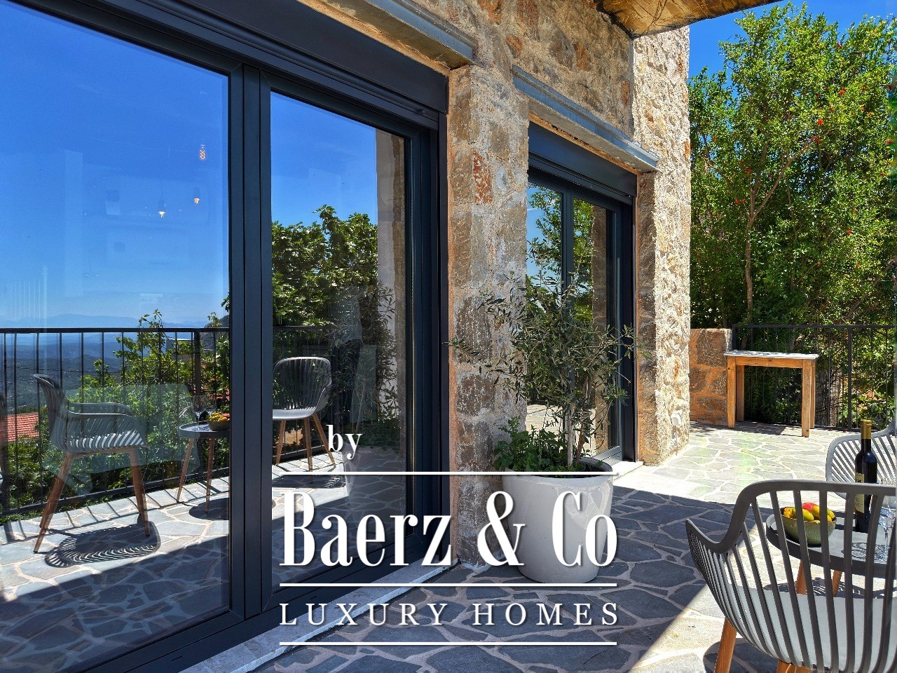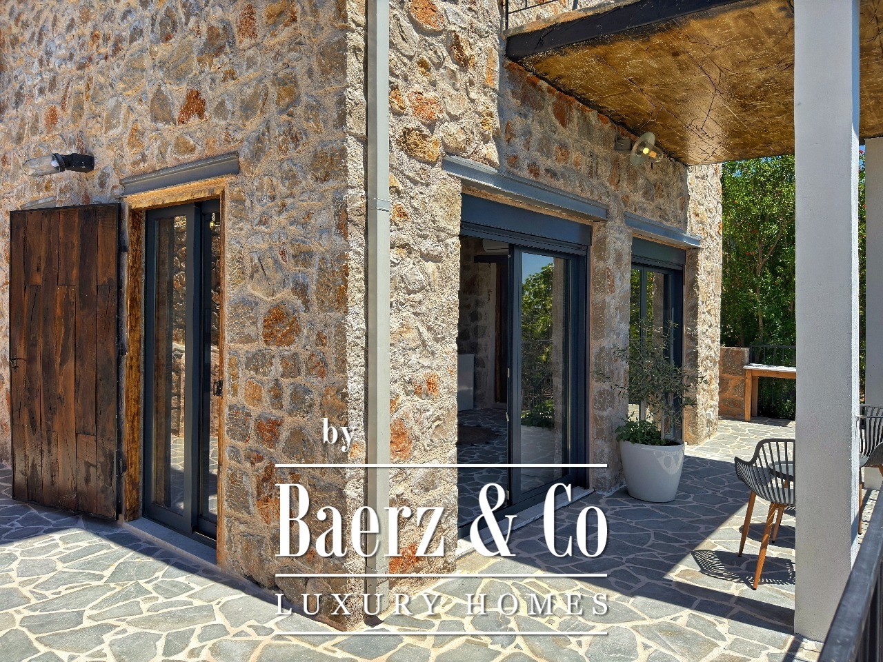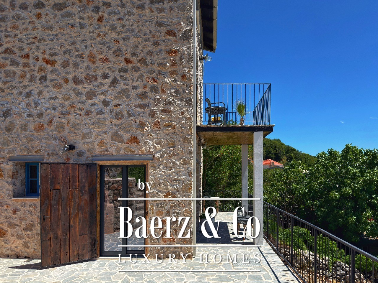 تبلغ مساحة المنزل 102 م² تتوزع على ثلاثة طوابق، ويتميز بواجهة حجرية تمنحه إحساساً بالثبات والديمومة. يتضمن التصميم مدروسا قبوًا مع خزان مياه خاص، غرفتين للنوم، حماماً واحداً، ومساحة معيشة متصلة بمطبخ ومنطقة طعام. تفتح ثلاث شرفات على مناظر خضراء مع إطلالة جزئية على بحيرة سكادار المتلألئة في الأفق. يتوفر موقف سيارات خلف المنزل، أما العقار نفسه فهو مفروش بالكامل وجاهز للسكن الفوري.