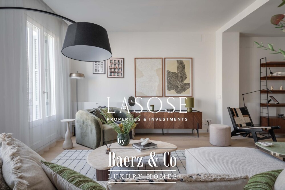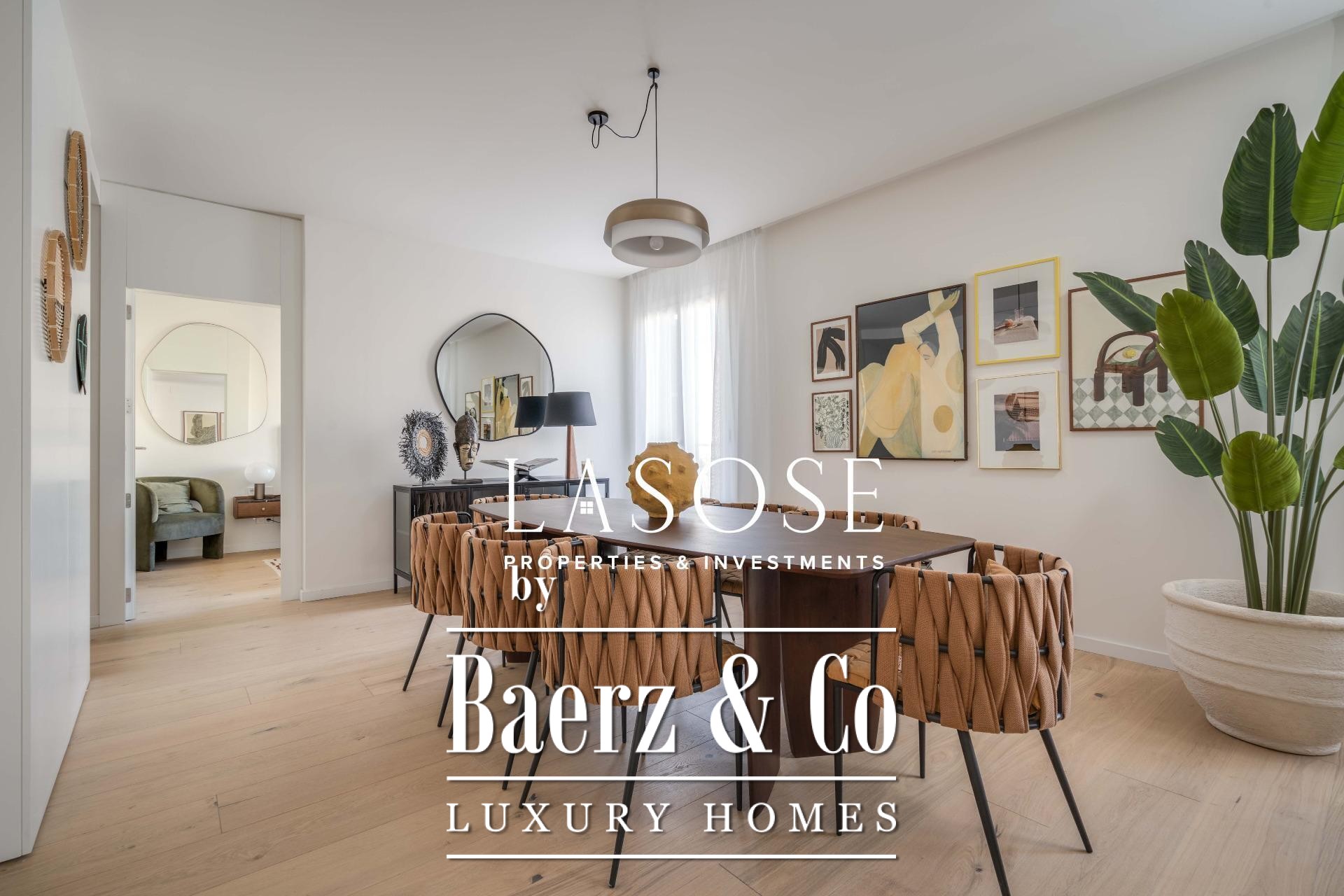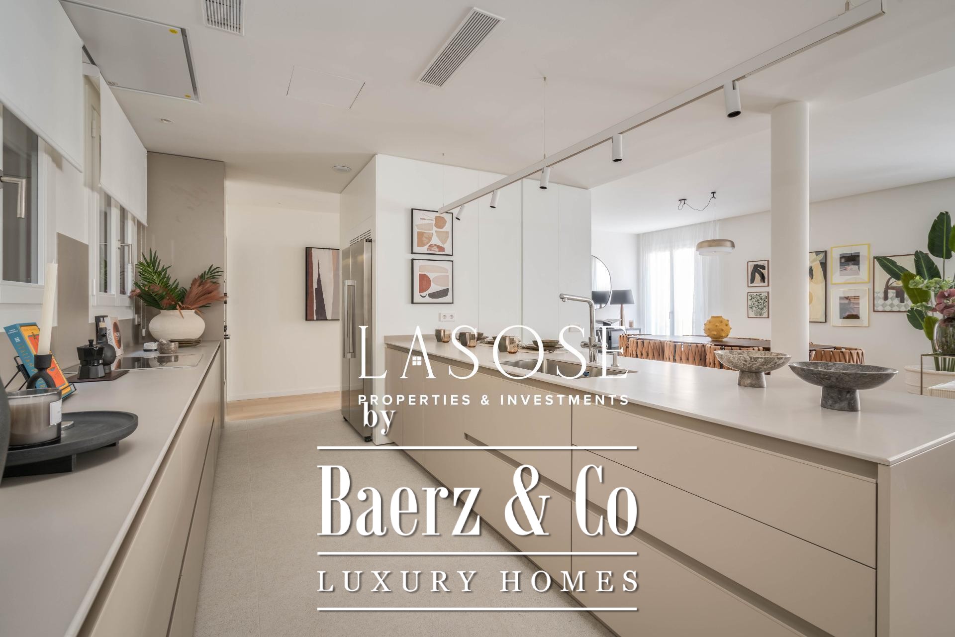 تمنحك هذه الوحدة السكنية مساحة معيشة تبلغ ١٣٧ متر مربع، تم توزيعها بعناية على غرفتي نوم وثلاثة حمامات. تسهم الشرفات والتراس الفسيح في ربط المساحات الداخلية بنبض المدينة، بينما تعكس واجهة المبنى والمساحات المشتركة أناقة برشلونة الكلاسيكية. توازن التشطيبات الداخلية التي تولاها Estudio Vilablanch بين الحداثة والأسلوب الدائم، وتشمل أجهزة منزلية عالية الجودة، وخزائن واسعة، وتدفئة، وأجواء مشرقة راقية.