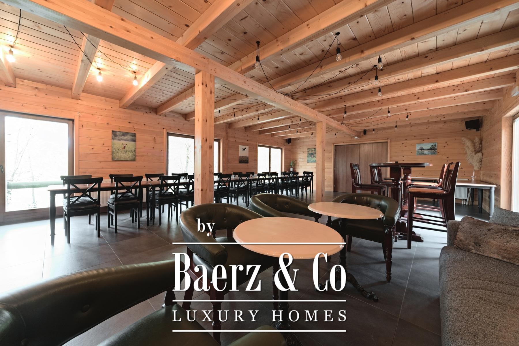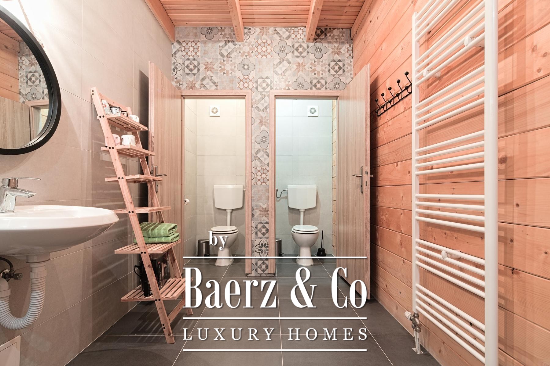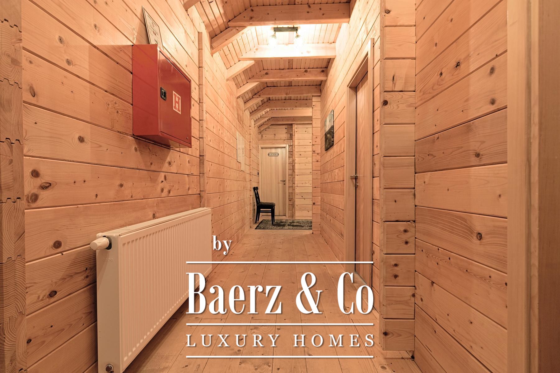 وبجوار المنزل الرئيسي، توفر خمسة منازل خشبية جديدة كل منها 80 متراً مربعاً من مساحة المعيشة. يتكوّن التصميم من منطقة معيشة مشرقة ودورة مياه في الطابق الأرضي، بينما يوجد غرفتا نوم في الطابق العلوي. تطل الشرفات الخاصة في الخلف على الأراضي الواسعة، مع نظام تدفئة صُمّم ليكون فعالاً ومستقلاً.