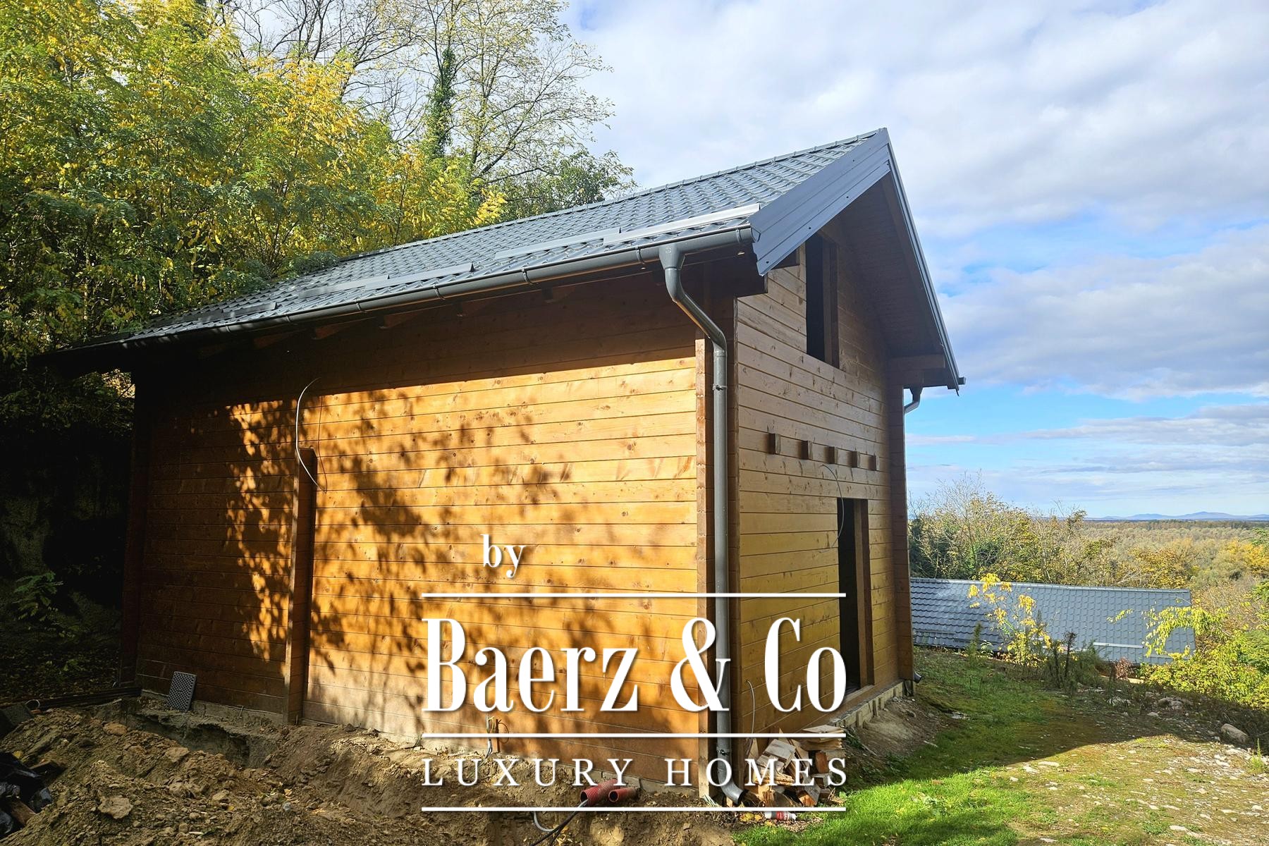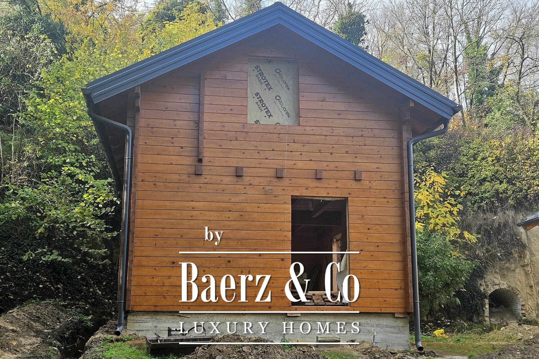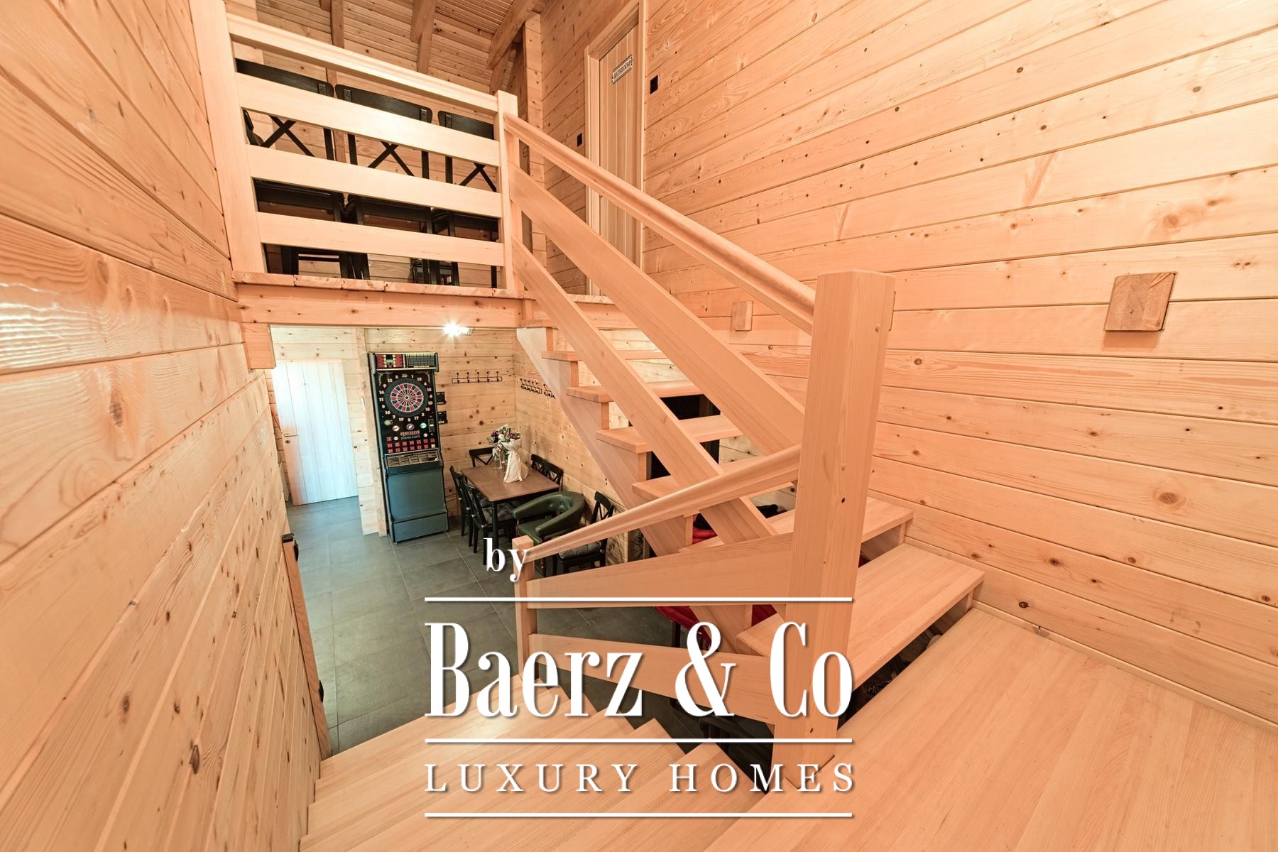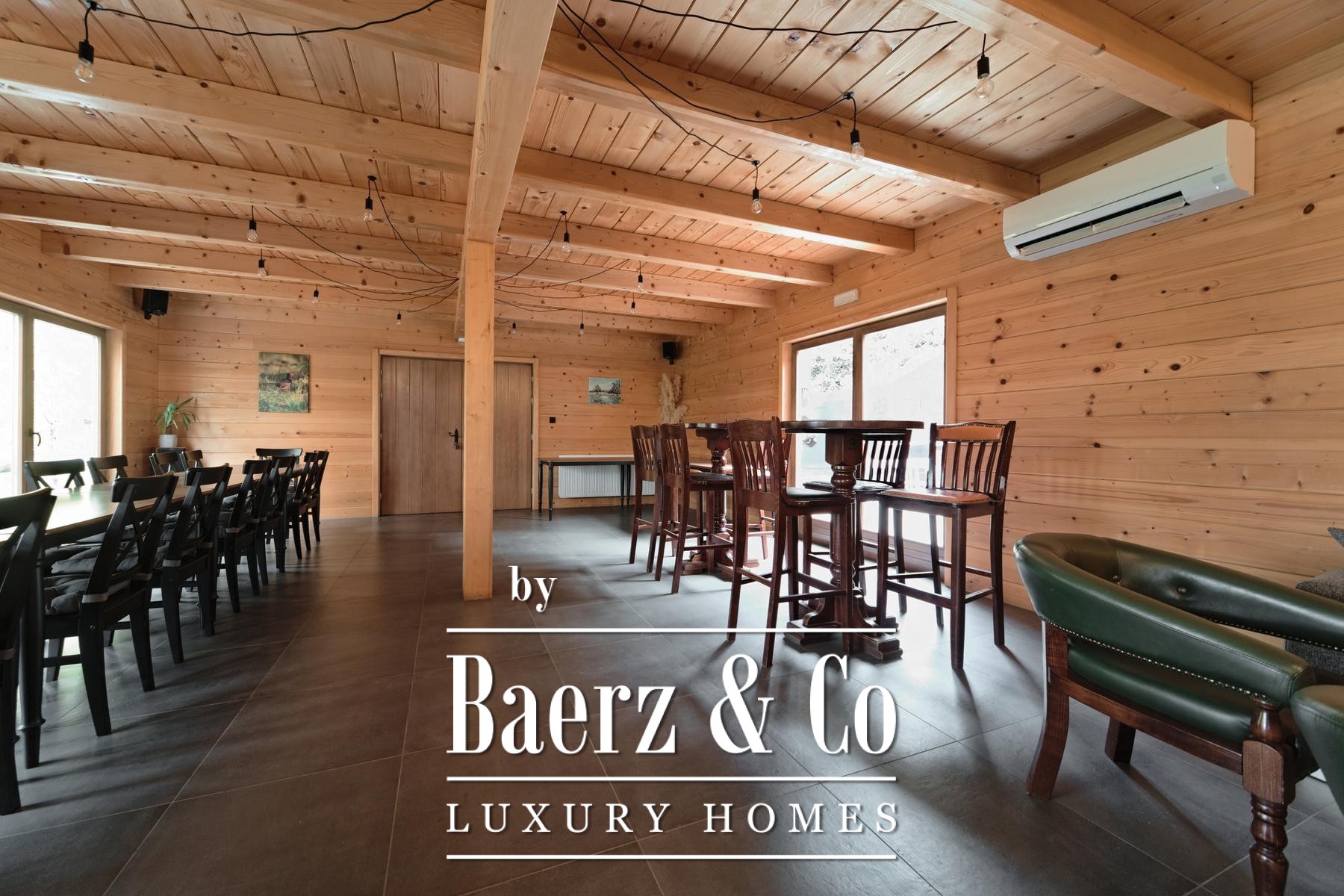 وبجوار المنزل الرئيسي، توفر خمسة منازل خشبية جديدة كل منها 80 متراً مربعاً من مساحة المعيشة. يتكوّن التصميم من منطقة معيشة مشرقة ودورة مياه في الطابق الأرضي، بينما يوجد غرفتا نوم في الطابق العلوي. تطل الشرفات الخاصة في الخلف على الأراضي الواسعة، مع نظام تدفئة صُمّم ليكون فعالاً ومستقلاً.