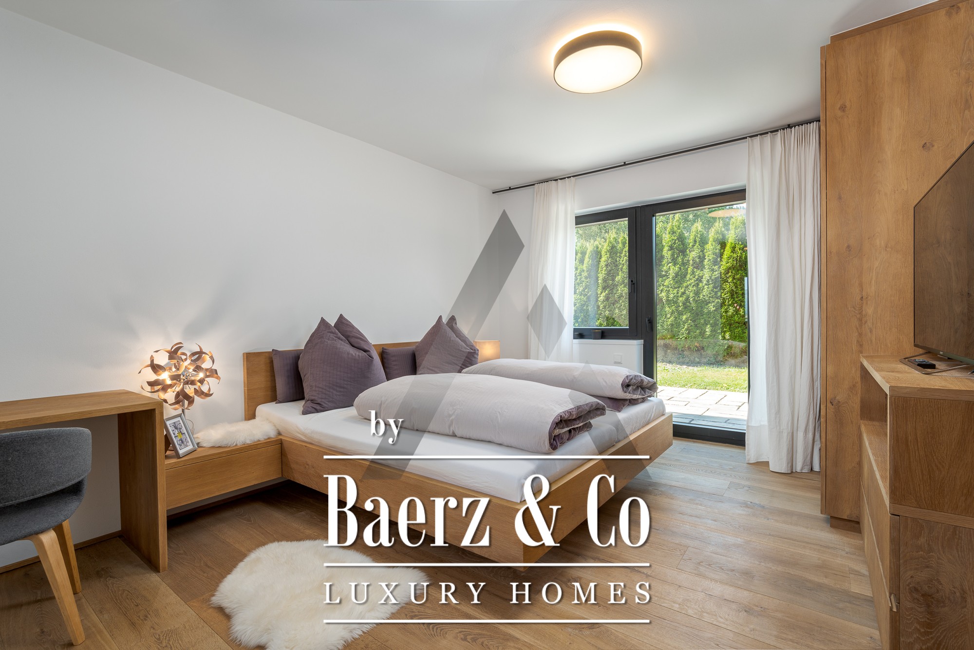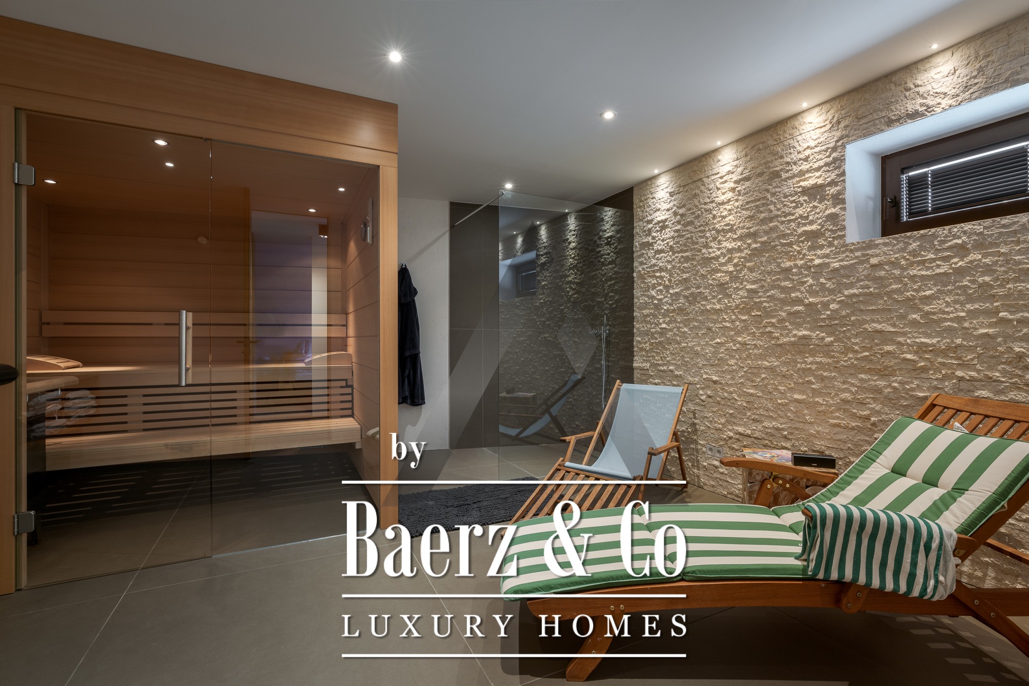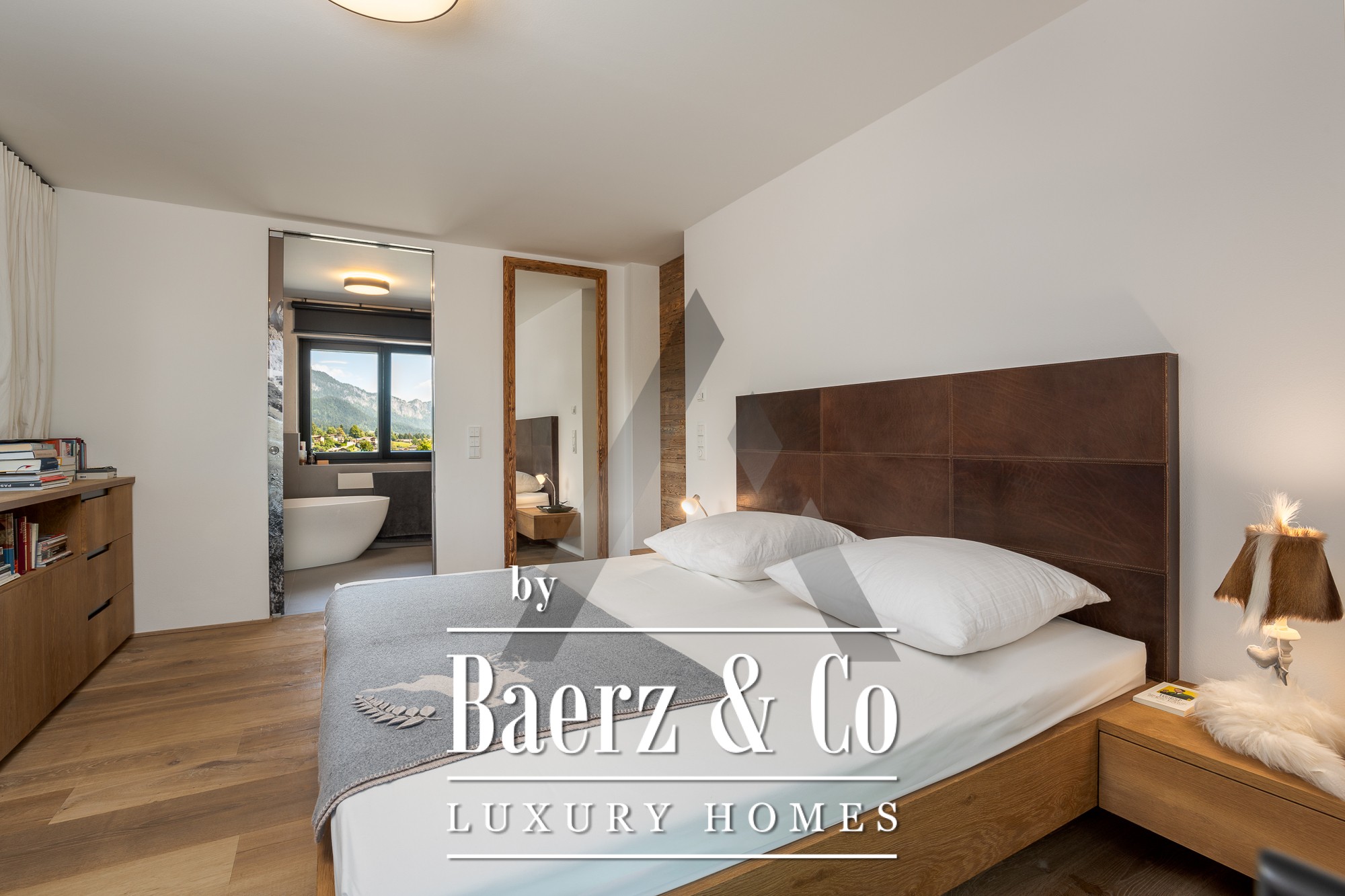 توفر ثلاث غرف نوم بحمامات داخلية الخصوصية والراحة، بما في ذلك جناح في الطابق السفلي يطل على بئر مضاء بجمال. تشمل المرافق ساونا فنلندية، صالة ألعاب رياضية، غرفة هوايات ومستودعاً مخصصاً لمعدات التزلج. تعزز المواد المستخدمة كالخشب والحجر المعاد تدويرهما وأرضيات الخشب الأنيقة الطابع الجبلي الأصيل والزمني. يوفر المرآب التحت أرضي المخصص موقفين للسيارات بالإضافة إلى أماكن مظللة إضافية.