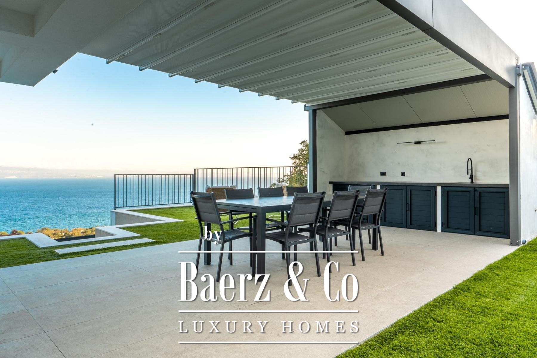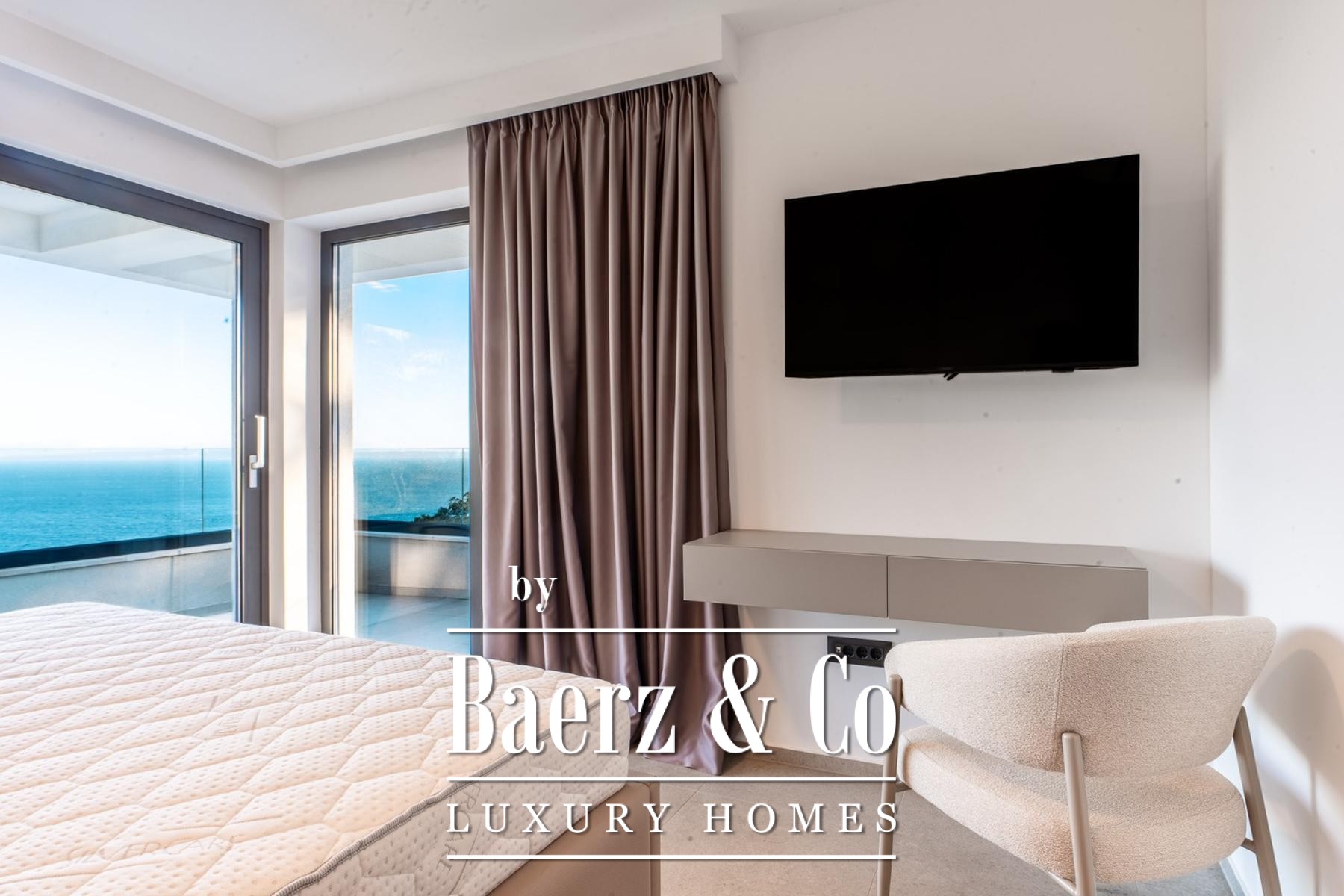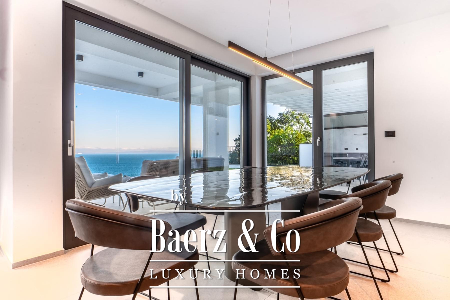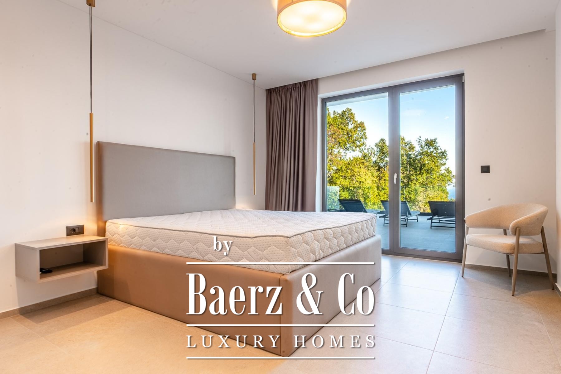 تحدد فيلا مودرن لوفران معايير رفيعة للعيش العصري، حيث تقدم 250 مترًا مربعًا من المساحات الداخلية المضيئة على هضبة هادئة تطل على خليج كفارْنِر. يعكس العقار تناغمًا معماريًا مدروسًا عبر طابقين، جُهز كل منهما للراحة والخصوصية. أربع غرف نوم واسعة وأربعة حمامات توفر المساحة الكافية للعائلة والضيوف، بينما تمتد منطقة المعيشة وتناول الطعام ذات التصميم المفتوح بمنتهى السلاسة نحو التراس البانورامي. نوافذ ممتدة من الأرض إلى السقف تؤطر إطلالات لا مثيل لها على الخليج، مما يغمر المنزل بإحساس بالانفتاح والهدوء.