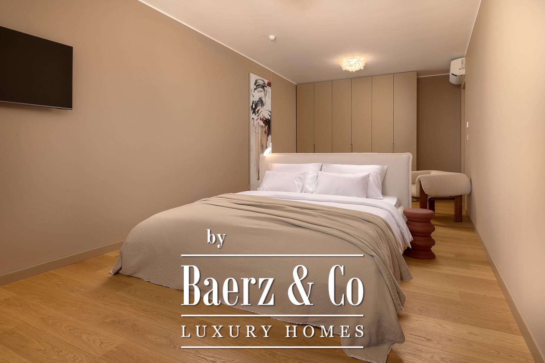 على مدى ثلاثة طوابق، تم تخصيص 379.58 م² للمعيشة اليومية النابضة وتوفير الملاذ الشخصي. يحتوي الطابق العلوي على أربع غرف نوم، لكل منها حمام داخلي وشرفة مطلة على البحر الأدرياتيكي، مما يعزز الحصرية والهدوء. في طابق التسوية، يوجد استوديو للضيوف أو العاملين مع تراسه الخاص إلى جانب مرآب يتسع لسيارتين وغرف التخزين والخدمات التقنية.