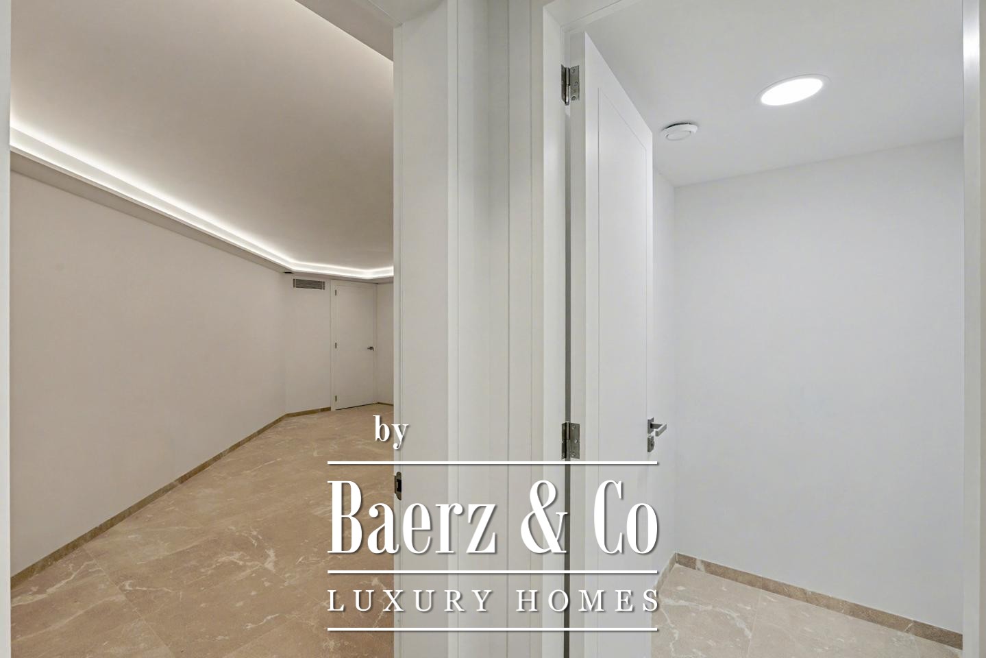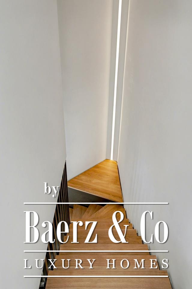 يضم الطابق السفلي مساحة مفتوحة متعددة الاستخدامات يمكن تكييفها كغرفة تلفزيون أو صالة رياضية أو مكان للتخزين الإضافي، إضافة إلى حمام ضيوف وغرفة غسيل مصممة لعملية يومية عملية. في الطابق الأرضي يتناغم الضوء الطبيعي مع التخطيط المفتوح والسخي لمنطقة المعيشة والمطبخ وتناول الطعام، مع انتقالات سلسة تؤدي إلى تراس خاص في الهواء الطلق وحوض سباحة، ليتلاءم مع مناخ المنطقة المعتدل طوال العام.