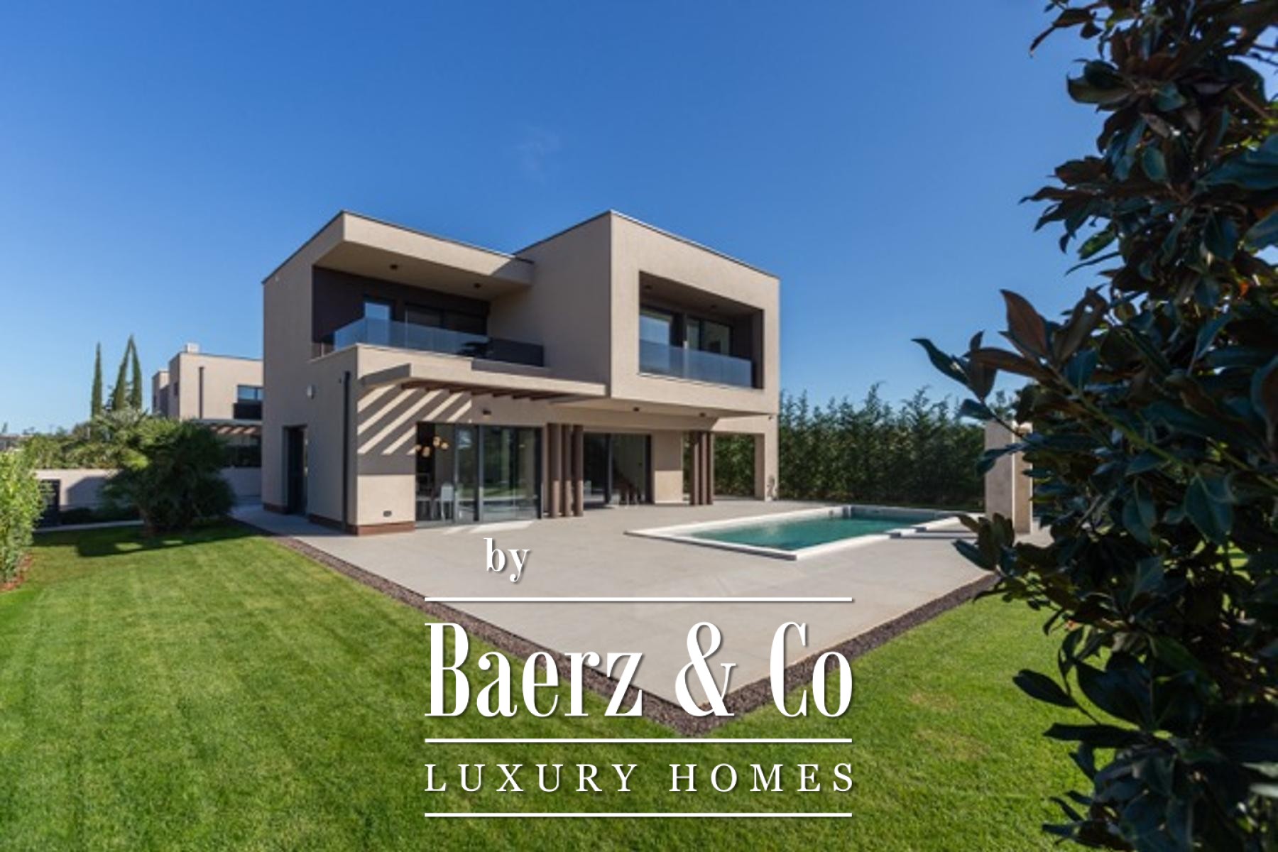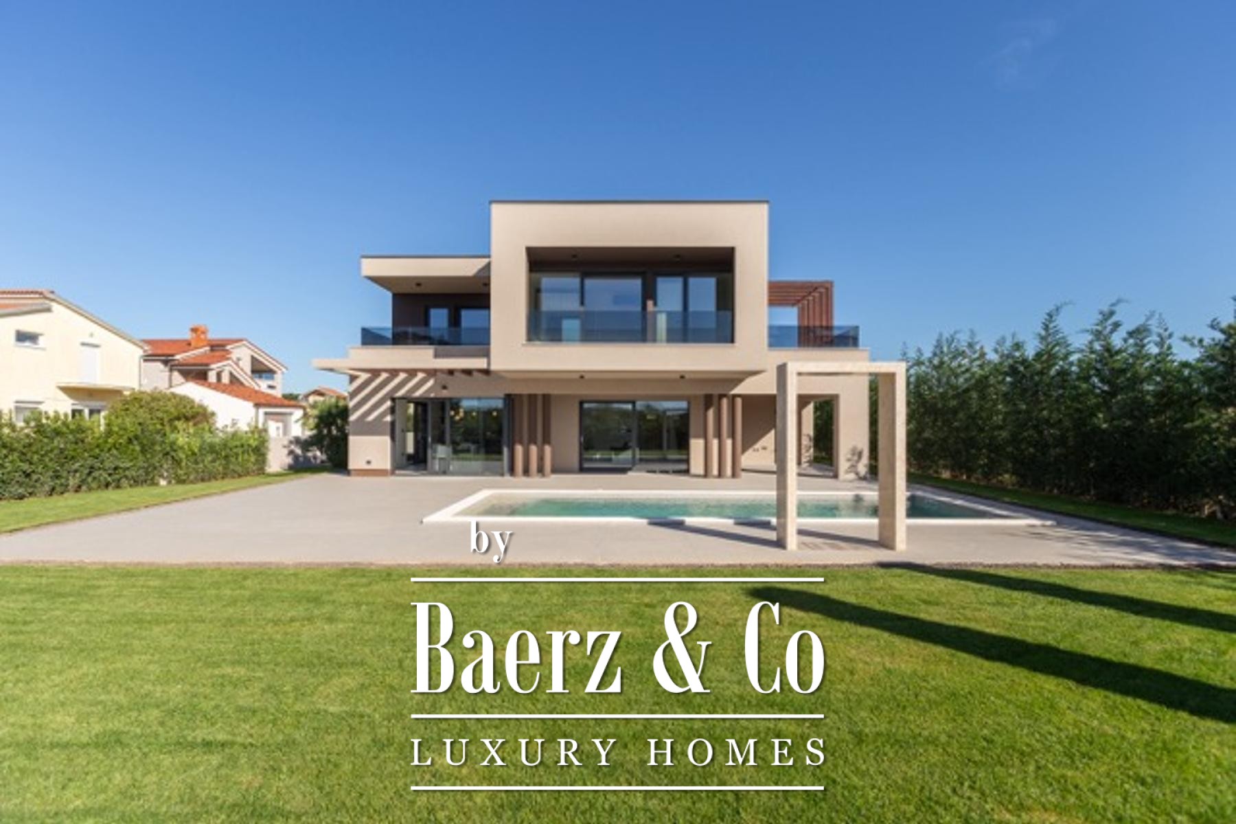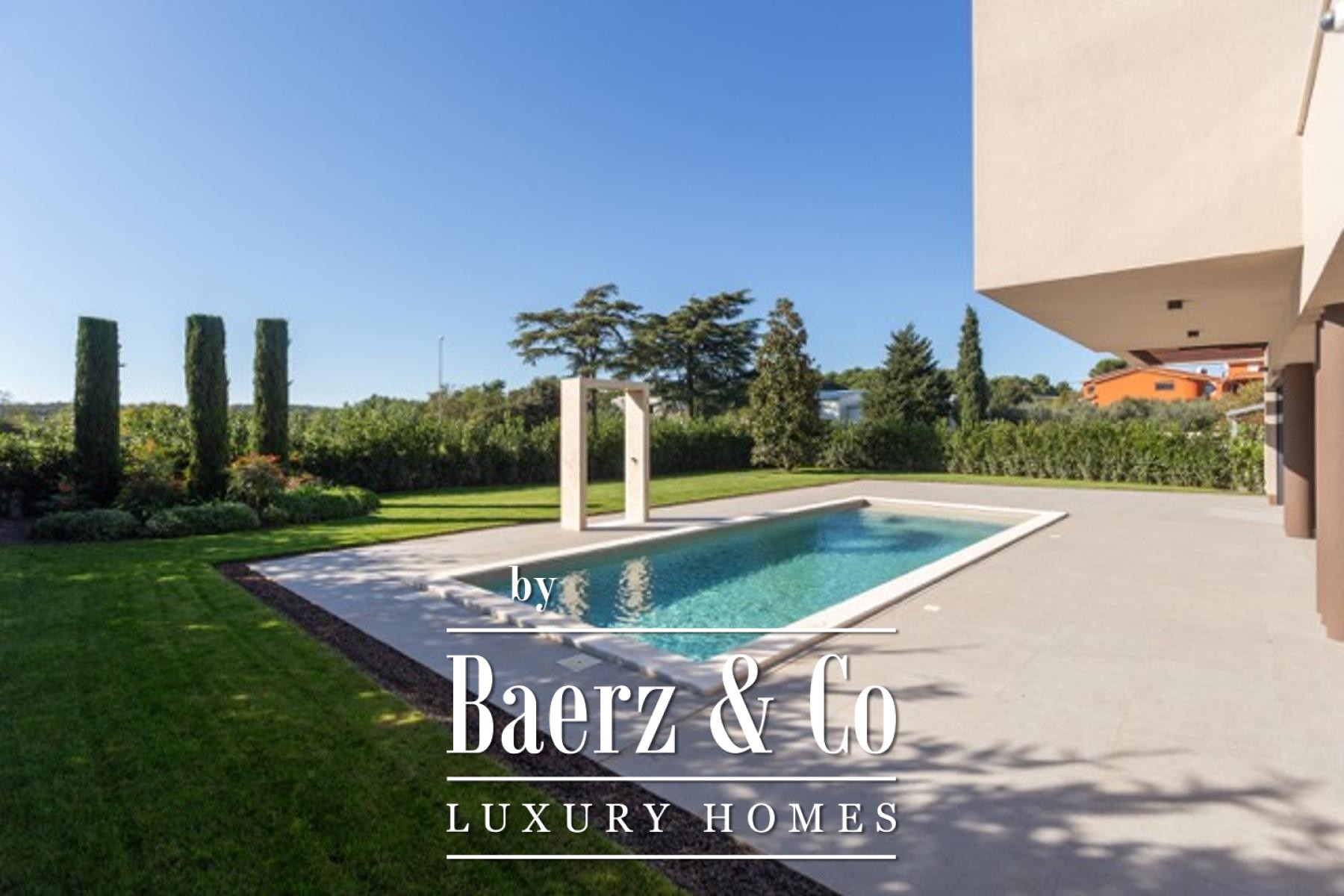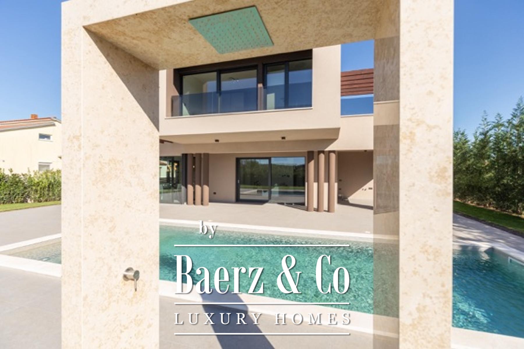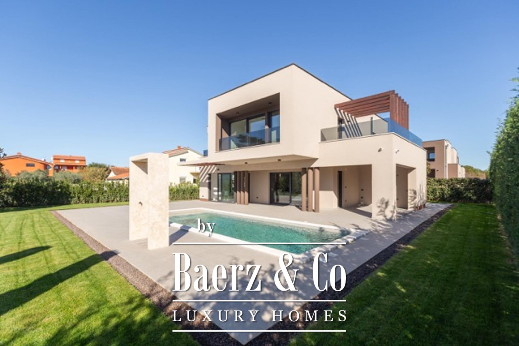 Nestled in the picturesque southern part of Istria, near stunning beaches and enchanting natural beauty, lies this villa, unique in its architecture, representing a fusion of modern lines perfectly blended with nature. It's a perfect combination of elegance and nature. Carefully designed, it spans 275.28 m2 of net living space, situated on a 772 m2 plot, guaranteeing complete privacy and tranquility for its residents.Upon entering the villa, high ceilings create an impression of spaciousness and luxury. The open-concept living room and kitchen, enhanced by large glass walls, allow for plenty of natural light and unobstructed views of the meticulously landscaped garden and heated pool measuring 9.5 m x 3.5 m, which blends harmoniously with the surrounding greenery. The courtyard area is enhanced with automatic irrigation.An elegant glass staircase leads to the upper floor, where there are three luxuriously decorated bedrooms, each with its own modern bathroom. Two rooms have access to terraces, ideal corners for relaxing in the afternoon. In addition to the impeccable interior, the villa offers additional amenities such as an outdoor summer kitchen, Fujitsu heat pumps, a designer shower, and a video surveillance system that ensures privacy and peace. Aluminum carpentry with triple-glazed windows, electric blinds, mosquito nets.The villa is equipped with underfloor heating via a heat pump system, while all rooms are air-conditioned. Solar panels are installed on the roof, ensuring the villa's energy self-sufficiency, a power plant with a capacity of 13.5 kilowatts. In the courtyard area, there is a technical room with a water filtration system.The villa is ideally located - it's just a few minutes' drive to the beautiful beaches in Štinjan and Fažana, the same distance to Pula, while the highway exit is only five minutes away. For more information about this unique villa and to arrange a viewing, feel free to contact us so that we can provide you with the best service in finding your home.
