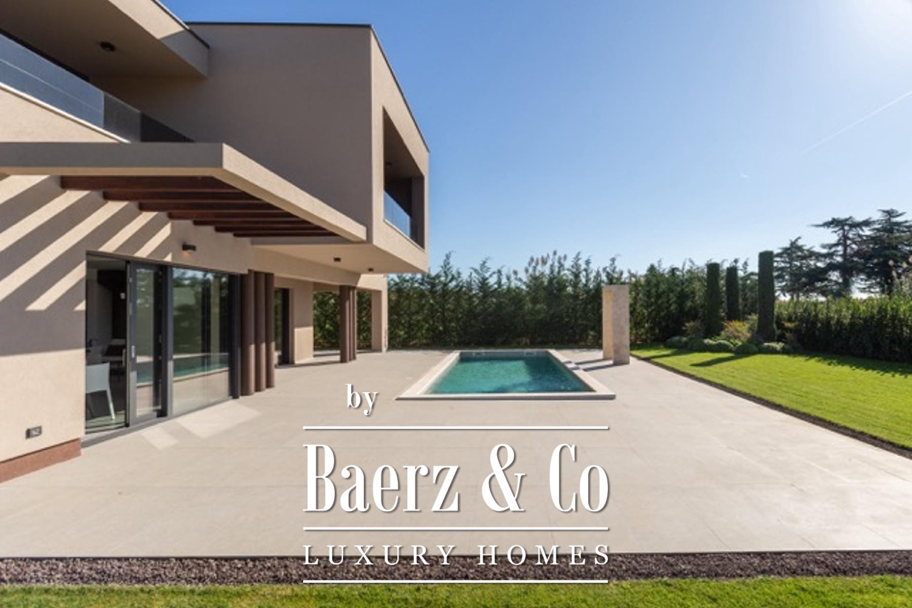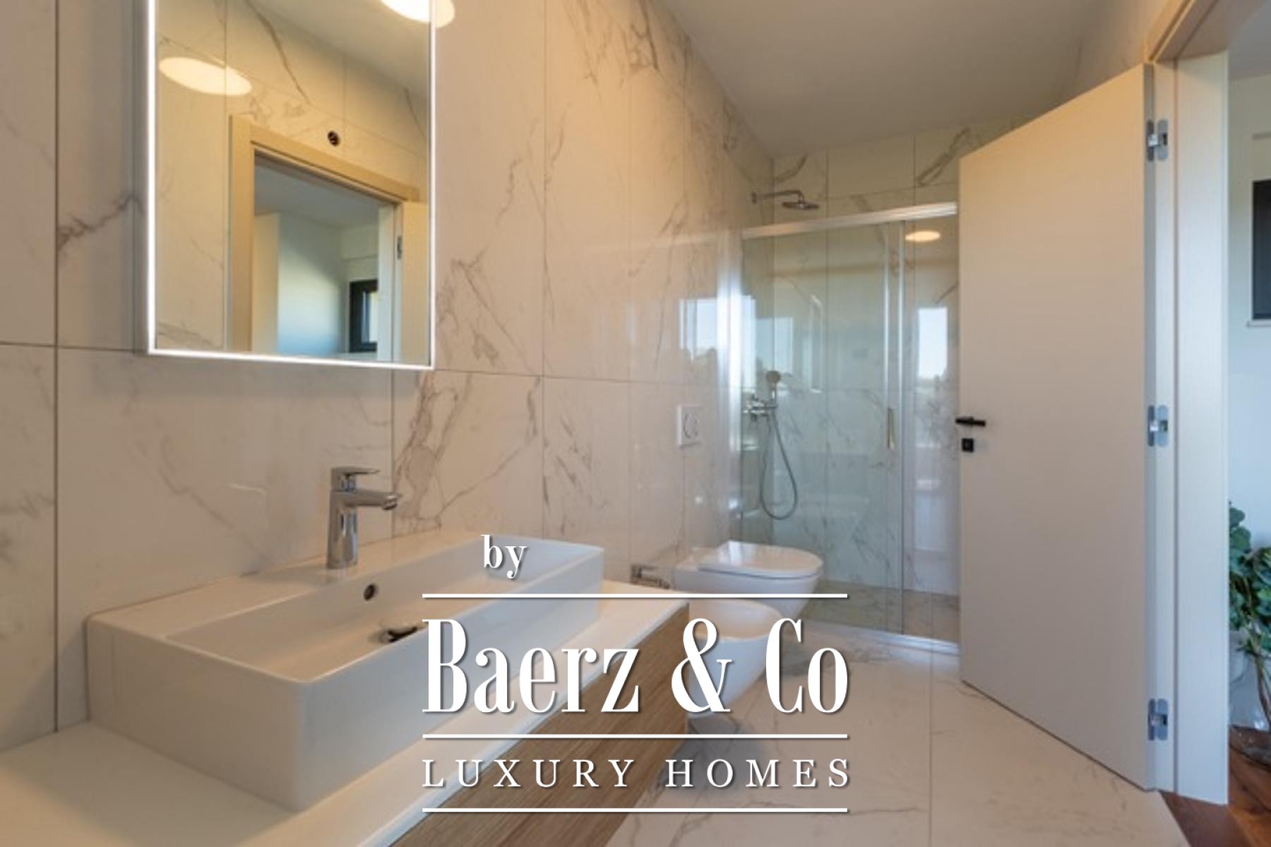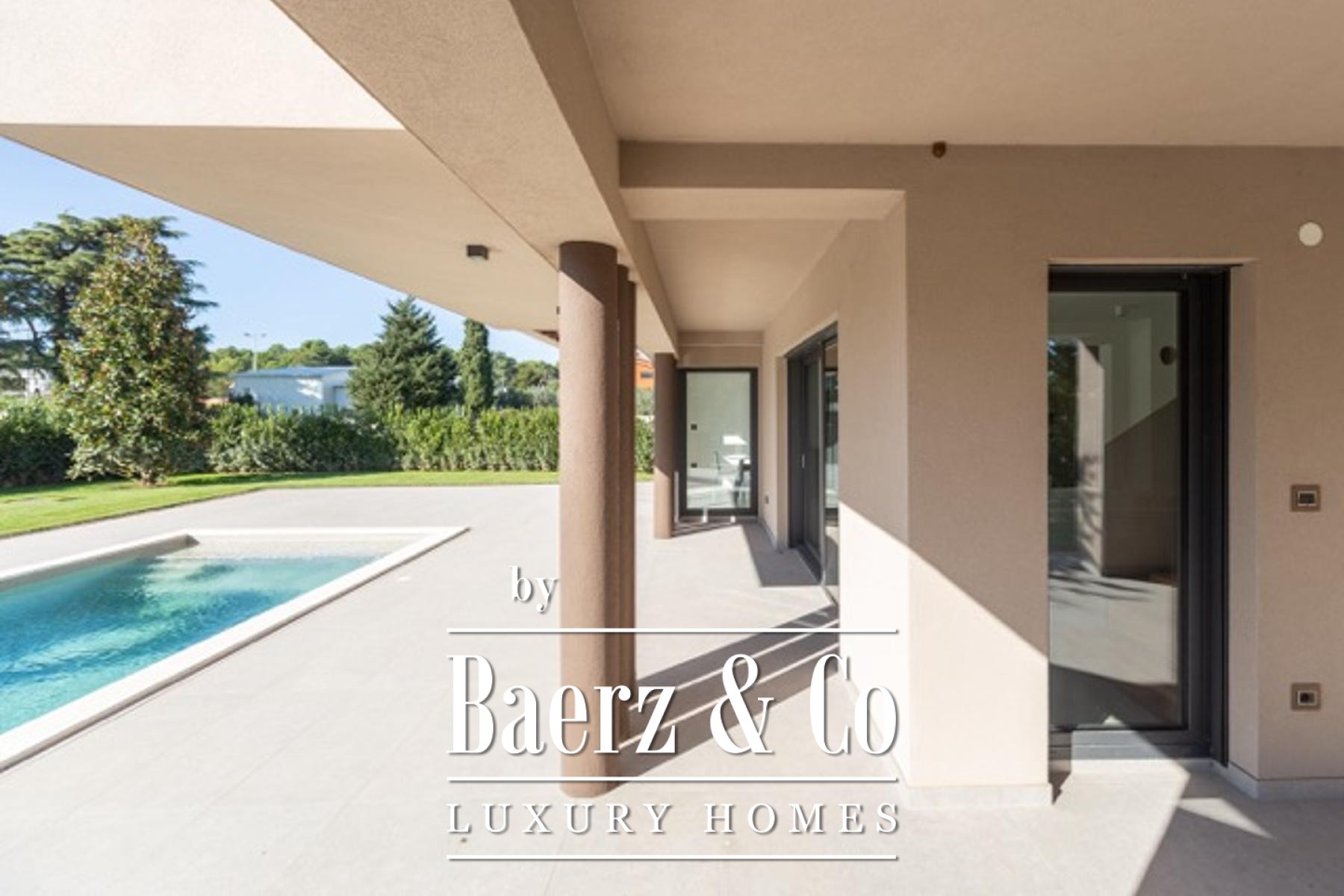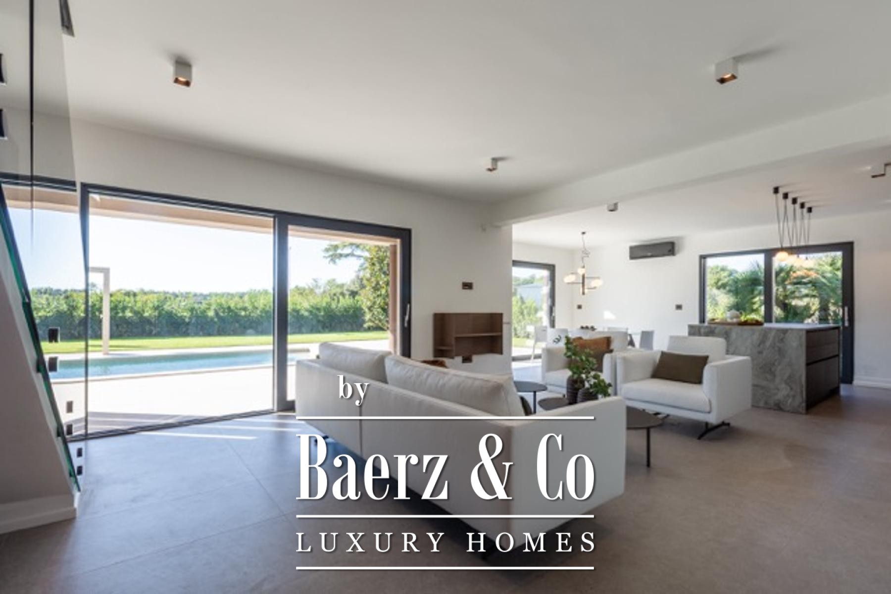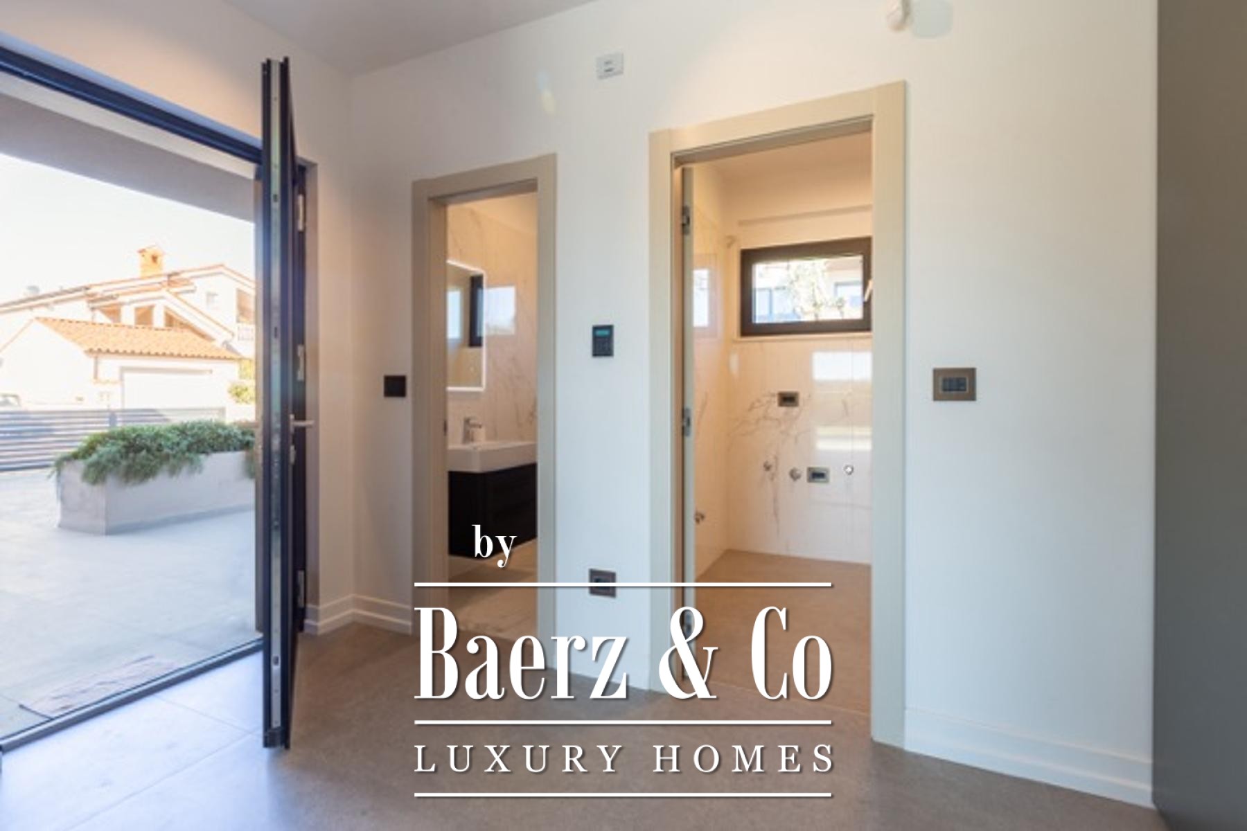 Nestled in the picturesque southern part of Istria, near stunning beaches and enchanting natural beauty, lies this villa, unique in its architecture, representing a fusion of modern lines perfectly blended with nature. It's a perfect combination of elegance and nature. Carefully designed, it spans 275.28 m2 of net living space, situated on a 772 m2 plot, guaranteeing complete privacy and tranquility for its residents.Upon entering the villa, high ceilings create an impression of spaciousness and luxury. The open-concept living room and kitchen, enhanced by large glass walls, allow for plenty of natural light and unobstructed views of the meticulously landscaped garden and heated pool measuring 9.5 m x 3.5 m, which blends harmoniously with the surrounding greenery. The courtyard area is enhanced with automatic irrigation.An elegant glass staircase leads to the upper floor, where there are three luxuriously decorated bedrooms, each with its own modern bathroom. Two rooms have access to terraces, ideal corners for relaxing in the afternoon. In addition to the impeccable interior, the villa offers additional amenities such as an outdoor summer kitchen, Fujitsu heat pumps, a designer shower, and a video surveillance system that ensures privacy and peace. Aluminum carpentry with triple-glazed windows, electric blinds, mosquito nets.The villa is equipped with underfloor heating via a heat pump system, while all rooms are air-conditioned. Solar panels are installed on the roof, ensuring the villa's energy self-sufficiency, a power plant with a capacity of 13.5 kilowatts. In the courtyard area, there is a technical room with a water filtration system.The villa is ideally located - it's just a few minutes' drive to the beautiful beaches in Štinjan and Fažana, the same distance to Pula, while the highway exit is only five minutes away. For more information about this unique villa and to arrange a viewing, feel free to contact us so that we can provide you with the best service in finding your home.