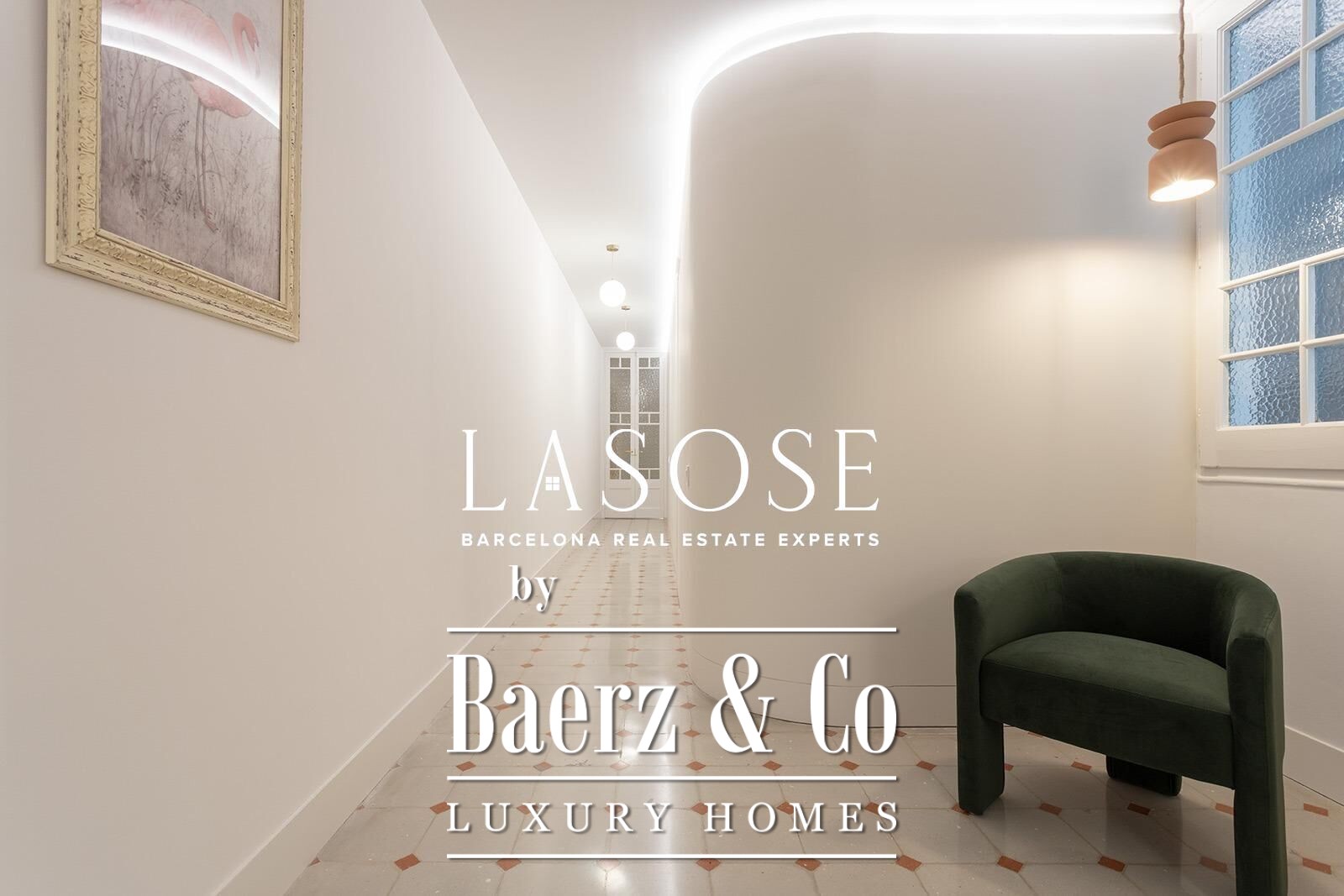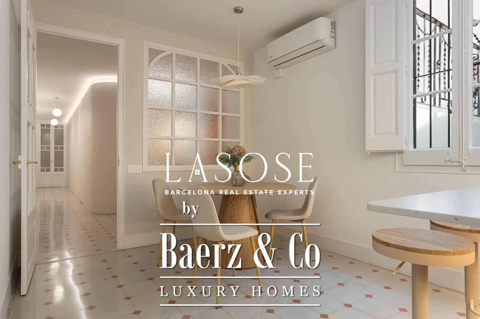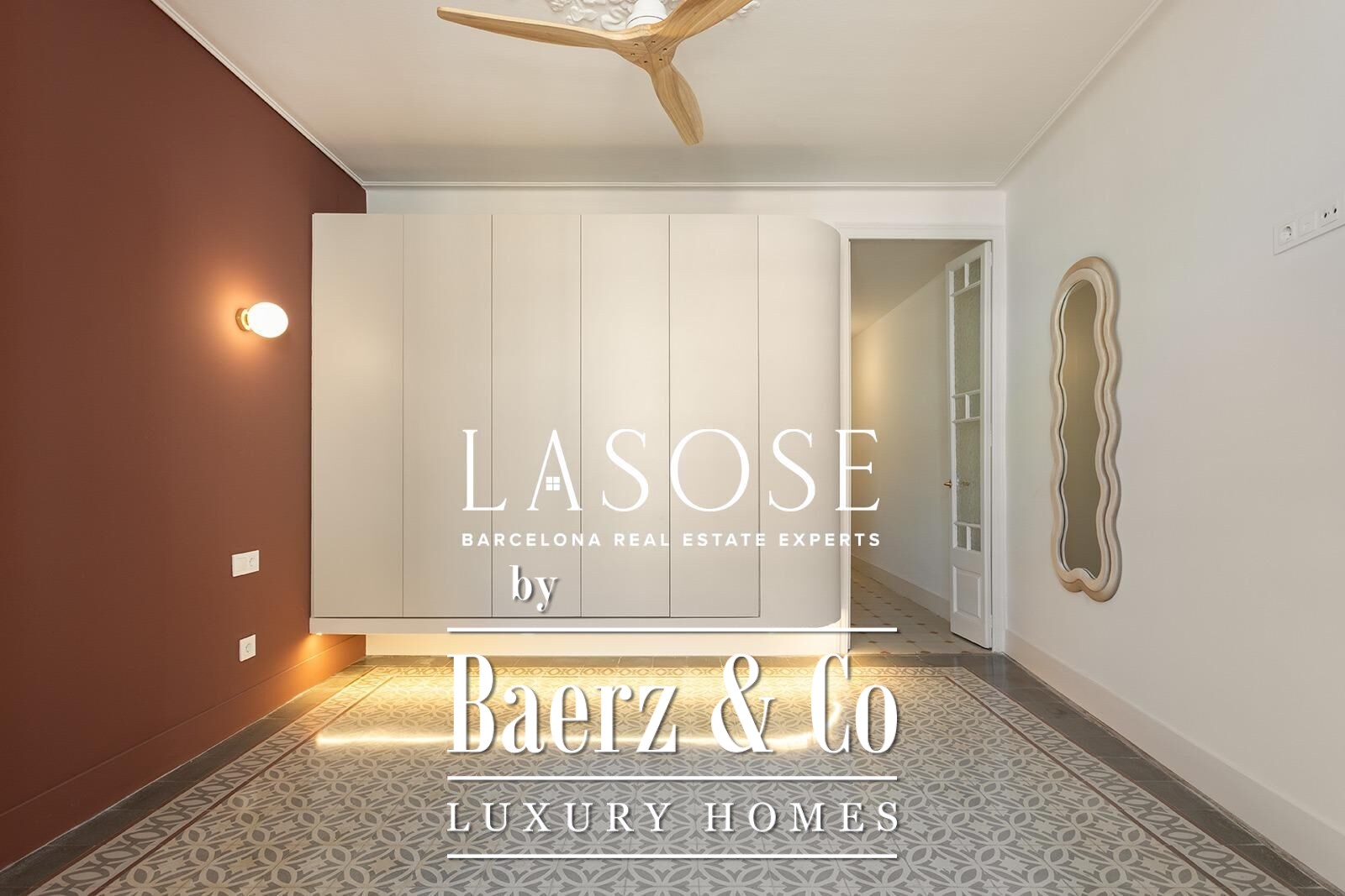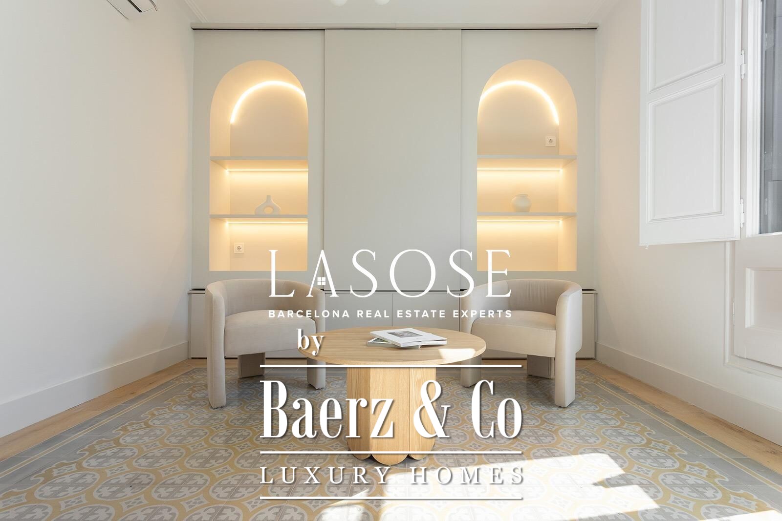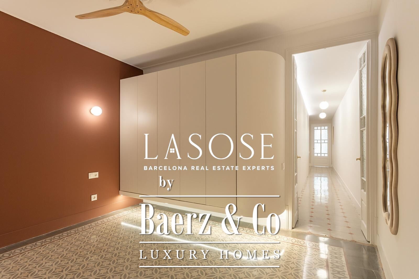 Apartment Barcelona ist eine Residenz, in der sich historische Architektur mit zeitgenössischer Renovierung vereint und die sich im obersten Stockwerk des Eixample befindet. Die 115 m² große Wohnung, die 2025 vollständig erneuert wurde, empfängt reichlich Tageslicht durch den nach Südosten ausgerichteten Balkon, der den Wohnbereich mit Wärme erfüllt und vom Salon aus einen offenen Ausblick bietet. Originale Hydraulikfliesen und eine sorgfältig restaurierte katalanische Decke zeugen von handwerklicher Raffinesse der Epoche, während moderne Beleuchtung, elegante Bäder und neue Geräte sich harmonisch in das stilvolle Gesamtbild einfügen.
