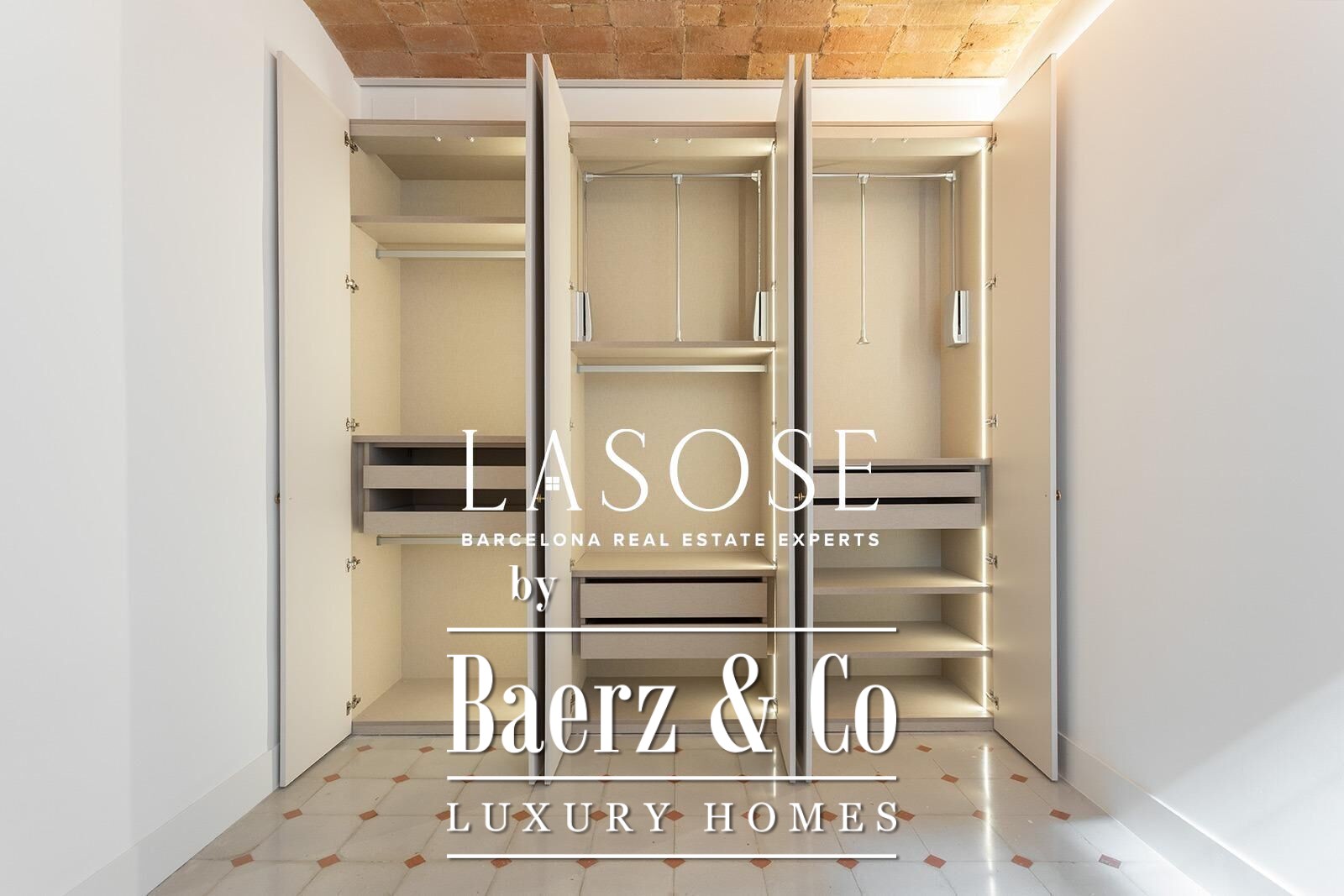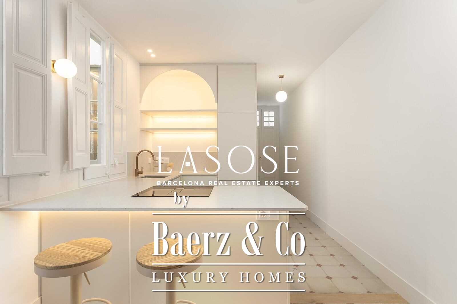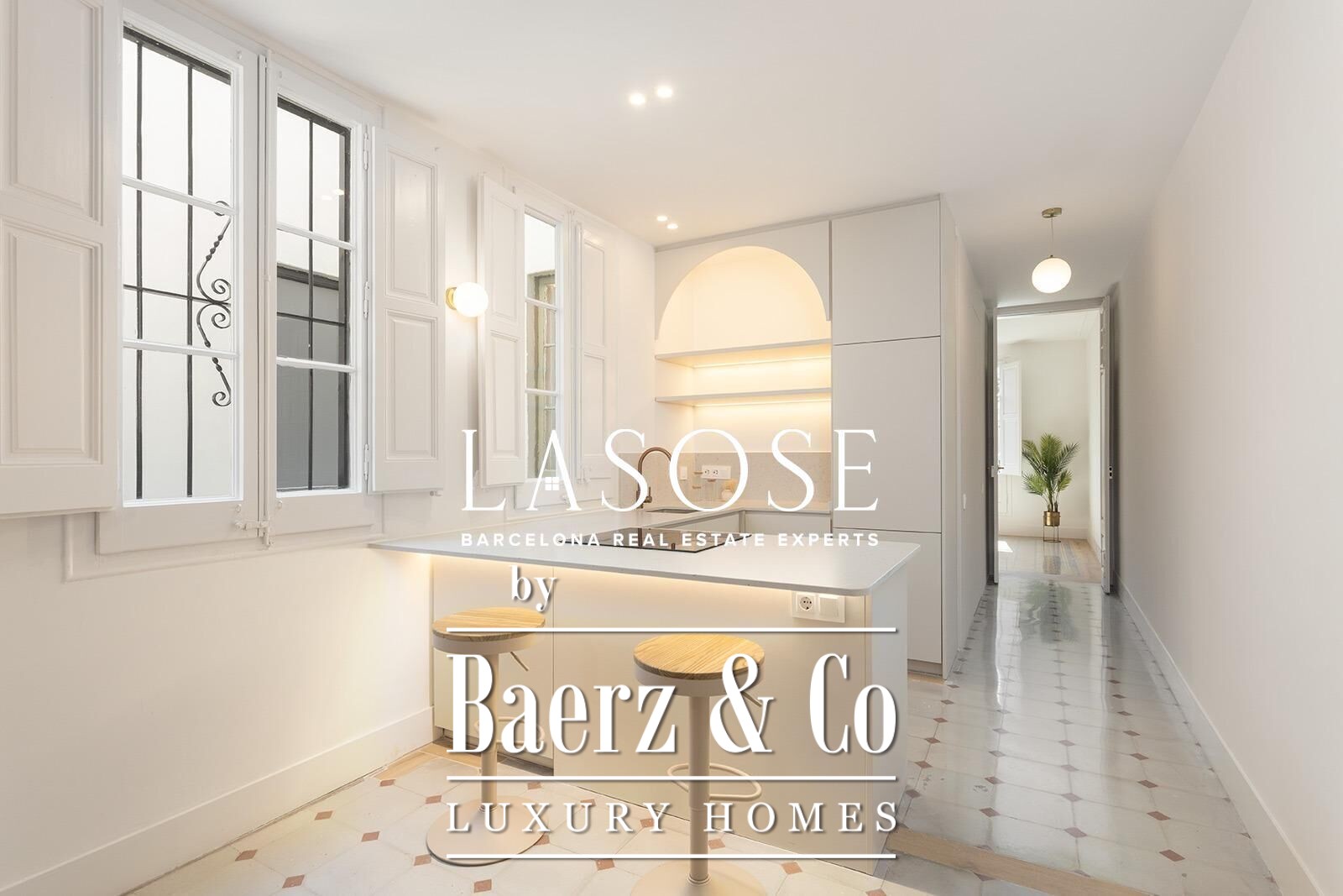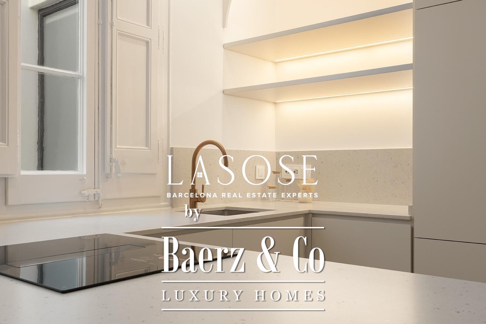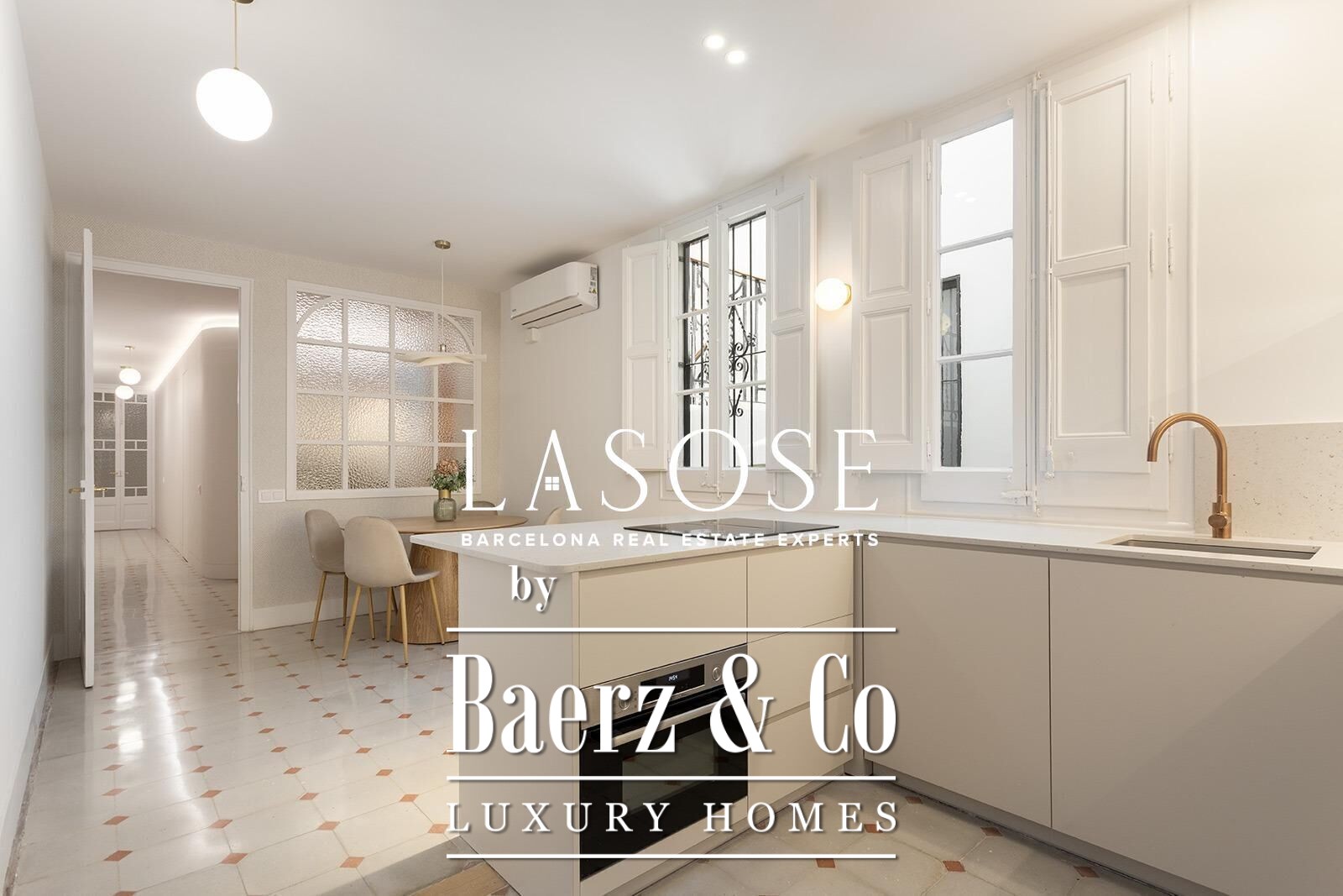 Apartment Barcelona ist eine Residenz, in der sich historische Architektur mit zeitgenössischer Renovierung vereint und die sich im obersten Stockwerk des Eixample befindet. Die 115 m² große Wohnung, die 2025 vollständig erneuert wurde, empfängt reichlich Tageslicht durch den nach Südosten ausgerichteten Balkon, der den Wohnbereich mit Wärme erfüllt und vom Salon aus einen offenen Ausblick bietet. Originale Hydraulikfliesen und eine sorgfältig restaurierte katalanische Decke zeugen von handwerklicher Raffinesse der Epoche, während moderne Beleuchtung, elegante Bäder und neue Geräte sich harmonisch in das stilvolle Gesamtbild einfügen.