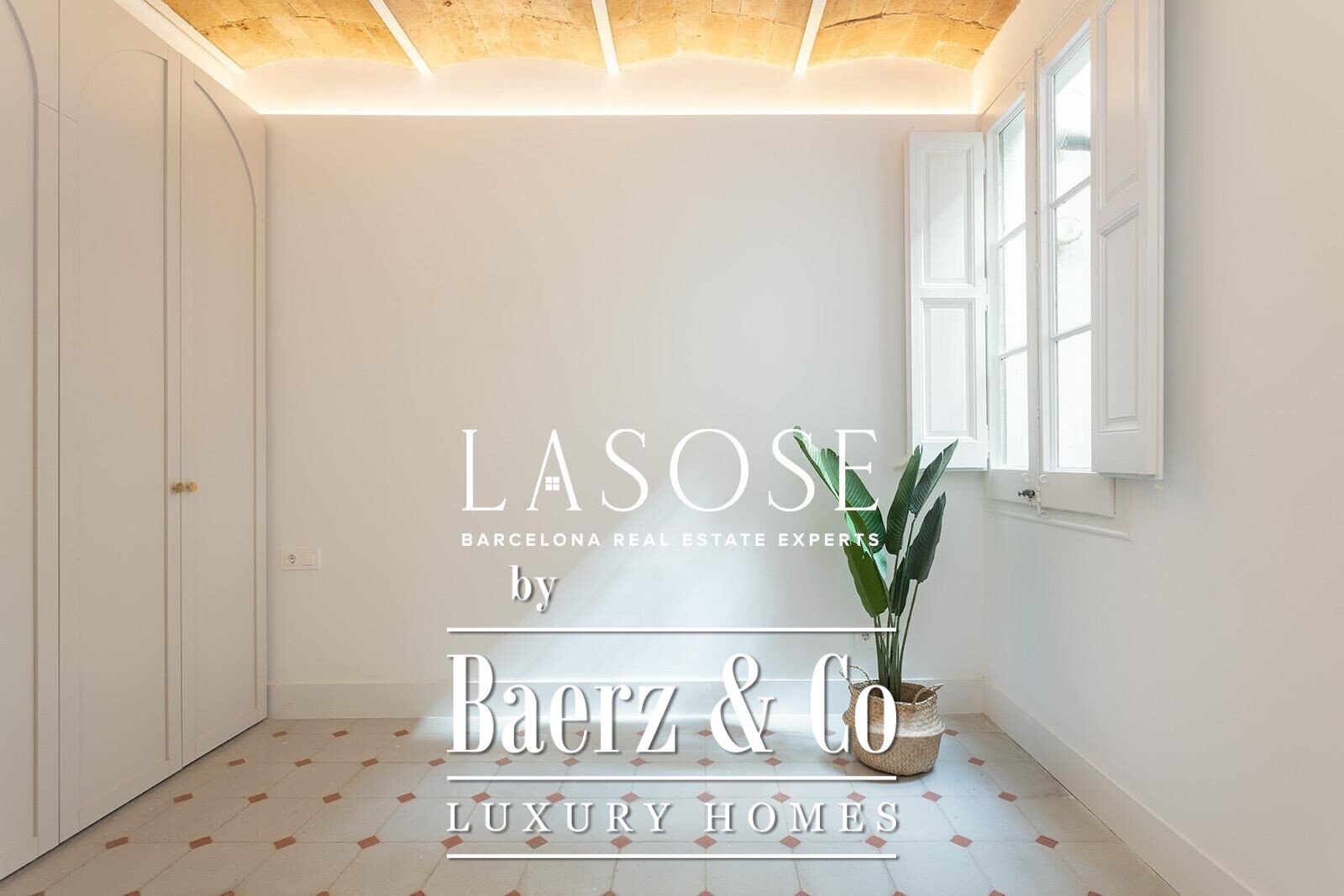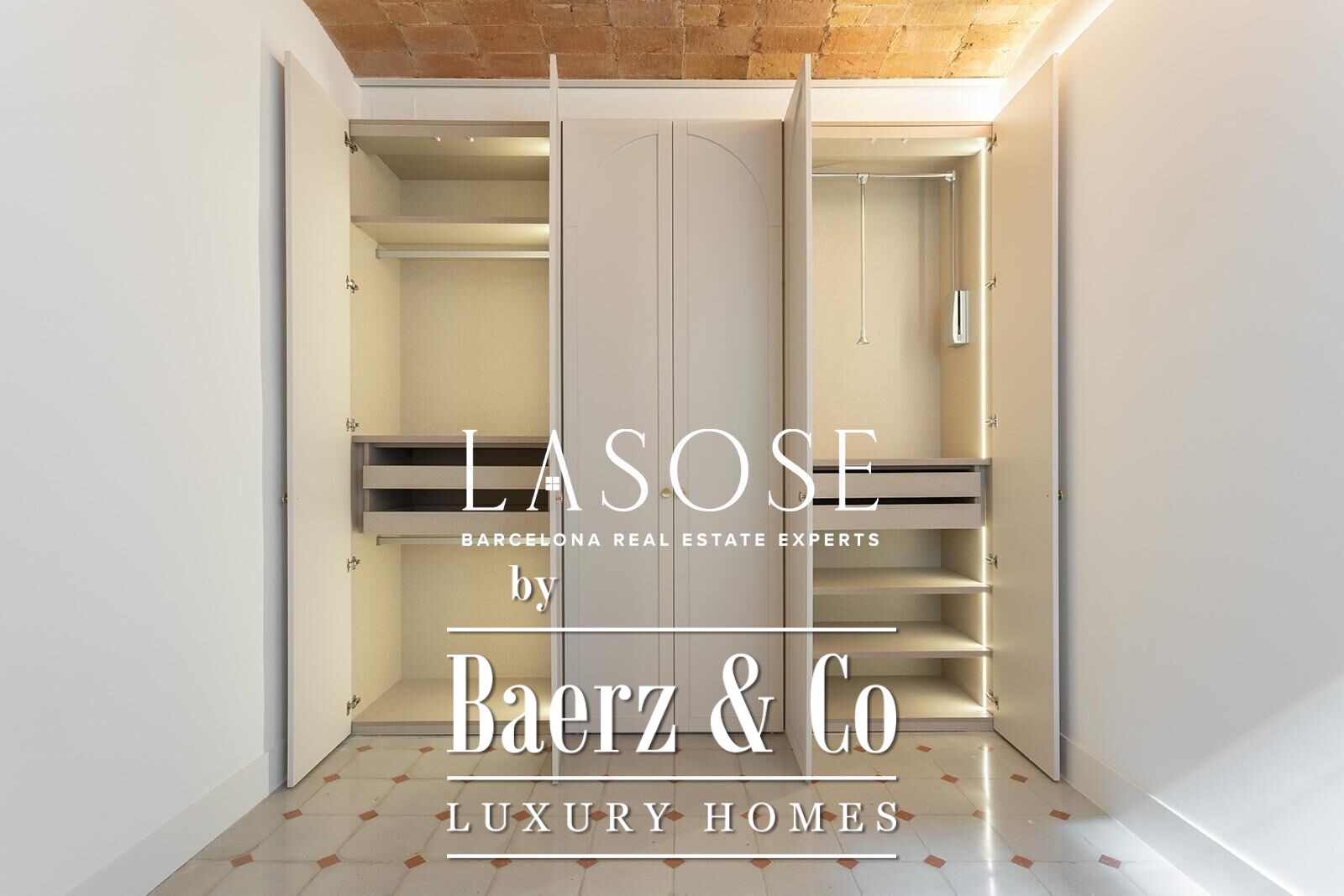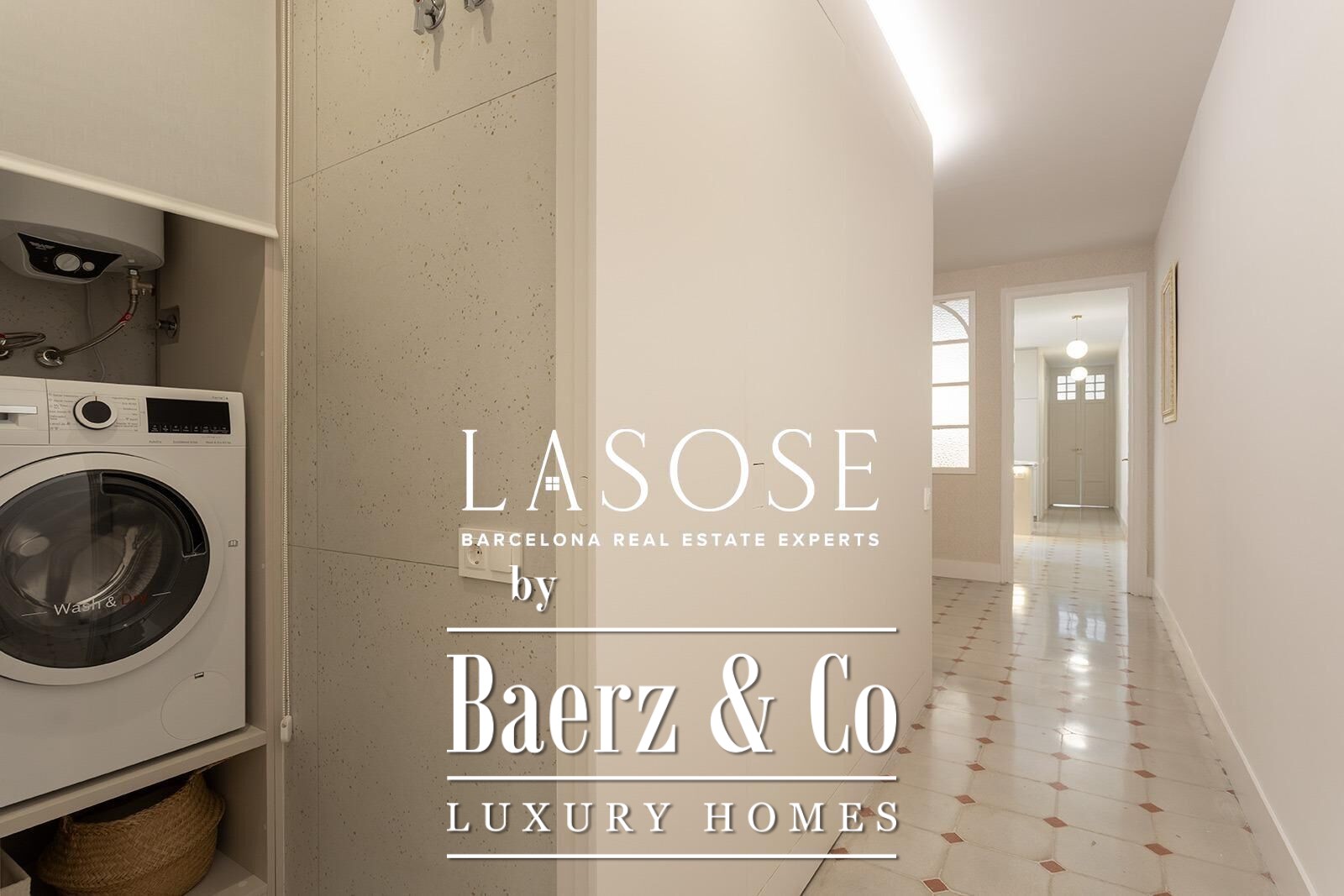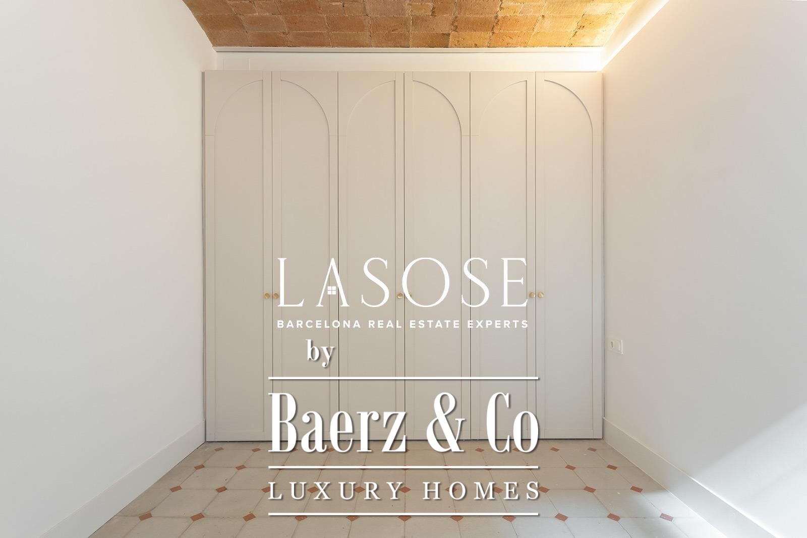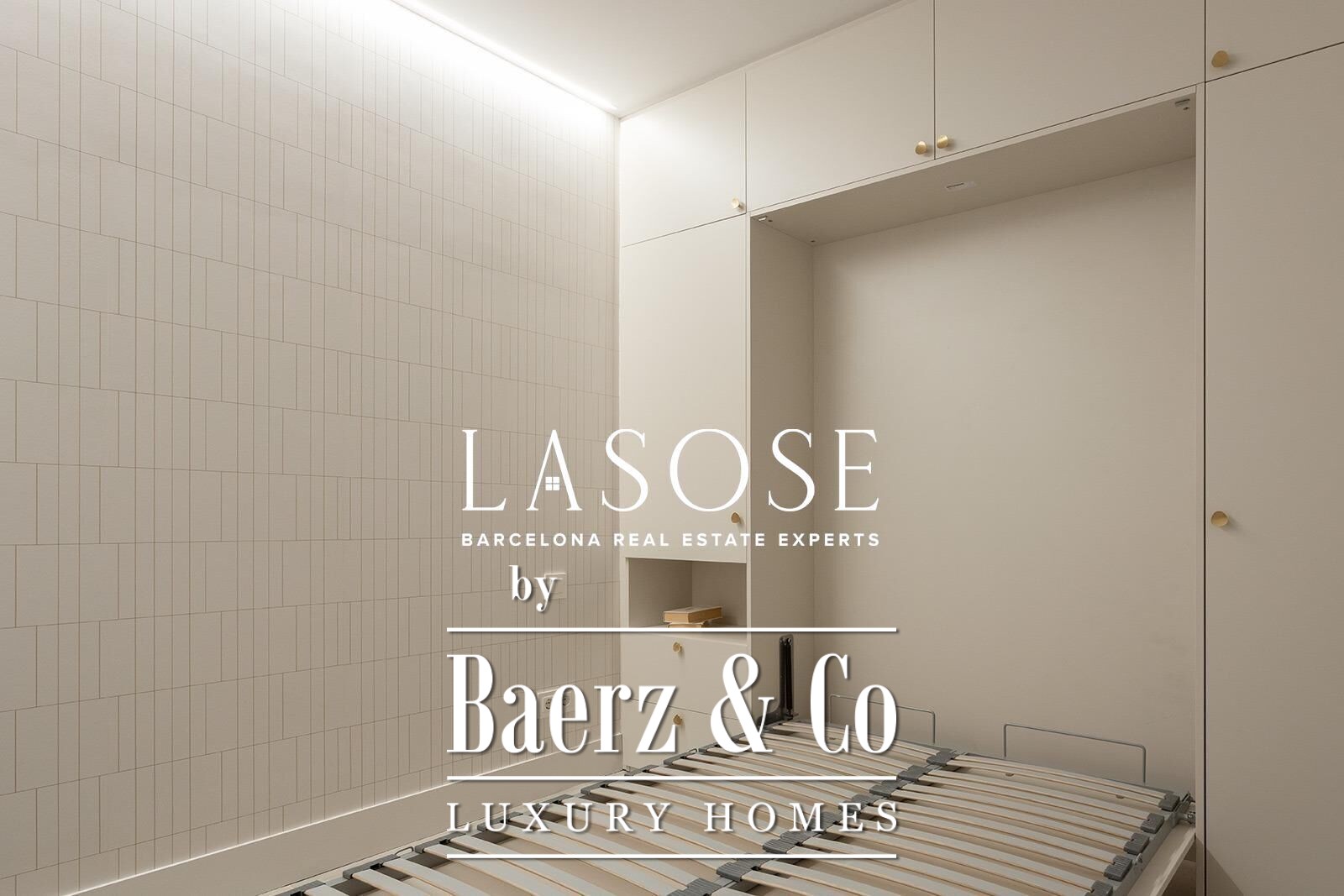 Apartment Barcelona ist eine Residenz, in der sich historische Architektur mit zeitgenössischer Renovierung vereint und die sich im obersten Stockwerk des Eixample befindet. Die 115 m² große Wohnung, die 2025 vollständig erneuert wurde, empfängt reichlich Tageslicht durch den nach Südosten ausgerichteten Balkon, der den Wohnbereich mit Wärme erfüllt und vom Salon aus einen offenen Ausblick bietet. Originale Hydraulikfliesen und eine sorgfältig restaurierte katalanische Decke zeugen von handwerklicher Raffinesse der Epoche, während moderne Beleuchtung, elegante Bäder und neue Geräte sich harmonisch in das stilvolle Gesamtbild einfügen.