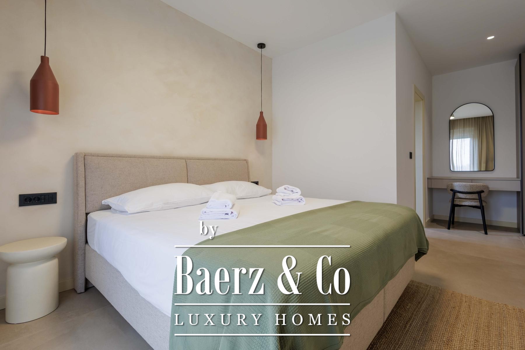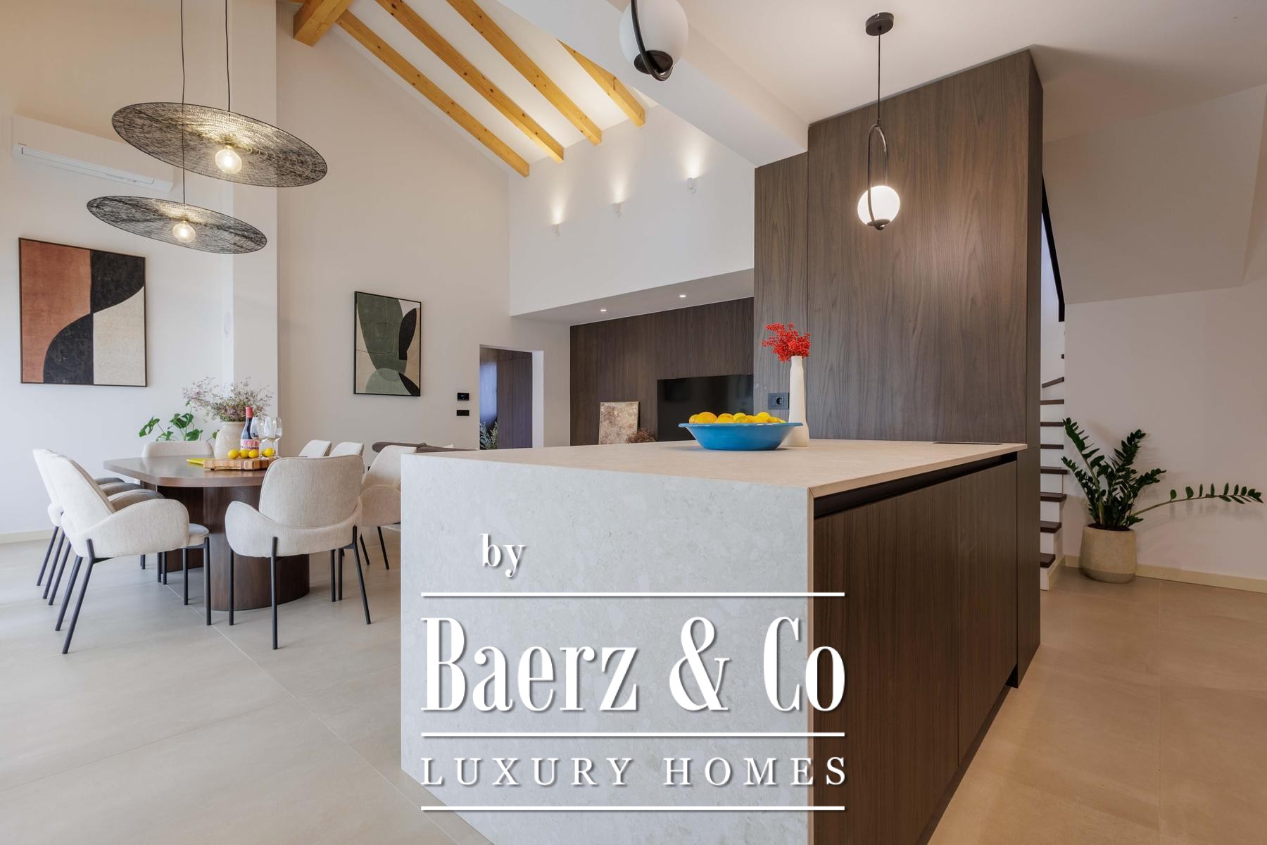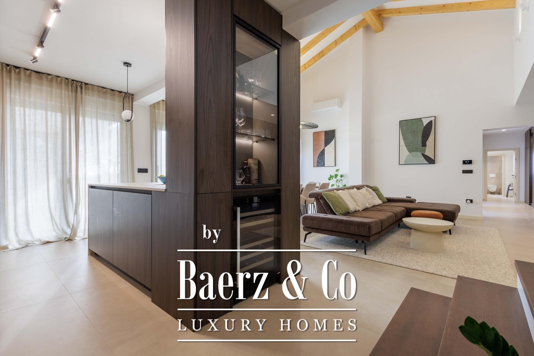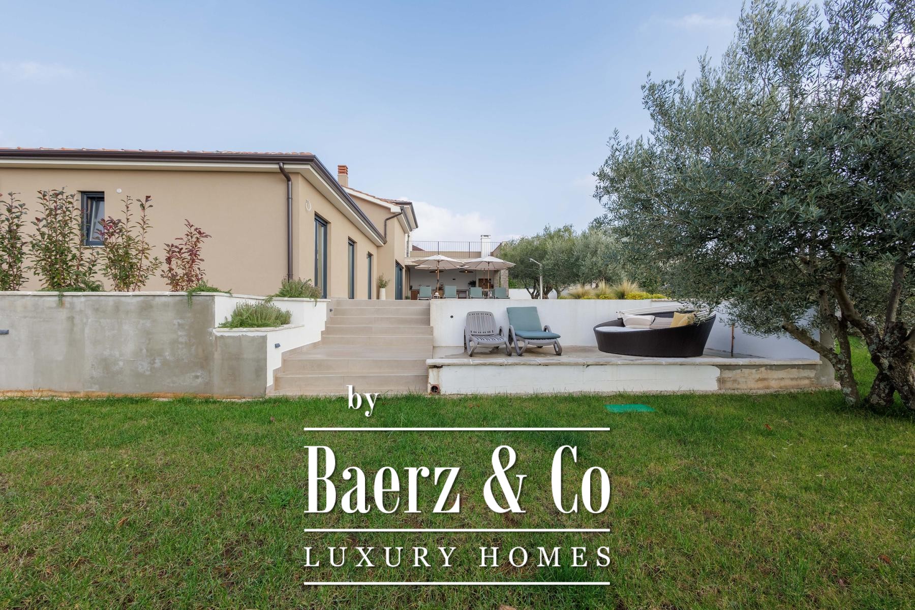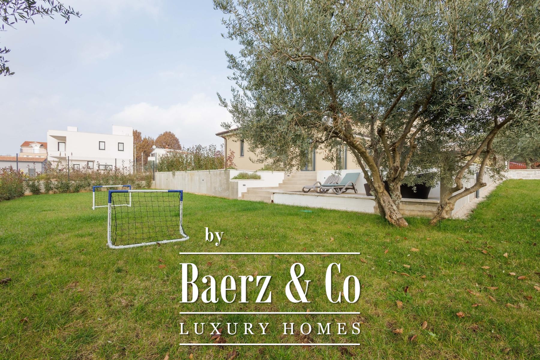 For sale is a modern newly built villa in authentic Istrian style, located in the peaceful area of Kaštelir - Labinci, one of the most desirable parts of western Istria. This exceptional property perfectly combines traditional Istrian charm with contemporary design and top-class comfort, and is built as a high-standard low-energy home.The villa is spread over two floors and features four spacious bedrooms, each with its own en-suite bathroom. Three bedrooms are situated on the ground floor, while the master bedroom occupies the first floor, complete with a private bathroom, walk-in wardrobe, and a large terrace offering a spectacular panoramic view of the sea and the surrounding landscape.The property is equipped with underfloor heating powered by a heat pump and air conditioning throughout, ensuring maximum comfort year-round. Underfloor heating is also installed in the outdoor kitchen, emphasizing practicality and thoughtful design. Additionally, there are two separate guest toilets.The outdoor area is designed as a true oasis of relaxation and luxury, featuring a fully equipped summer kitchen, sunbathing area, swimming pool, fire pit, and a space prepared for a jacuzzi. The beautifully landscaped garden includes a lush green lawn and six olive trees, maintained by a fully automated irrigation system.This stunning villa offers the perfect blend of authentic Istrian elegance and modern luxury, representing an ideal opportunity for those seeking a peaceful residence or a premium investment in the luxury tourism segment of western Istria.