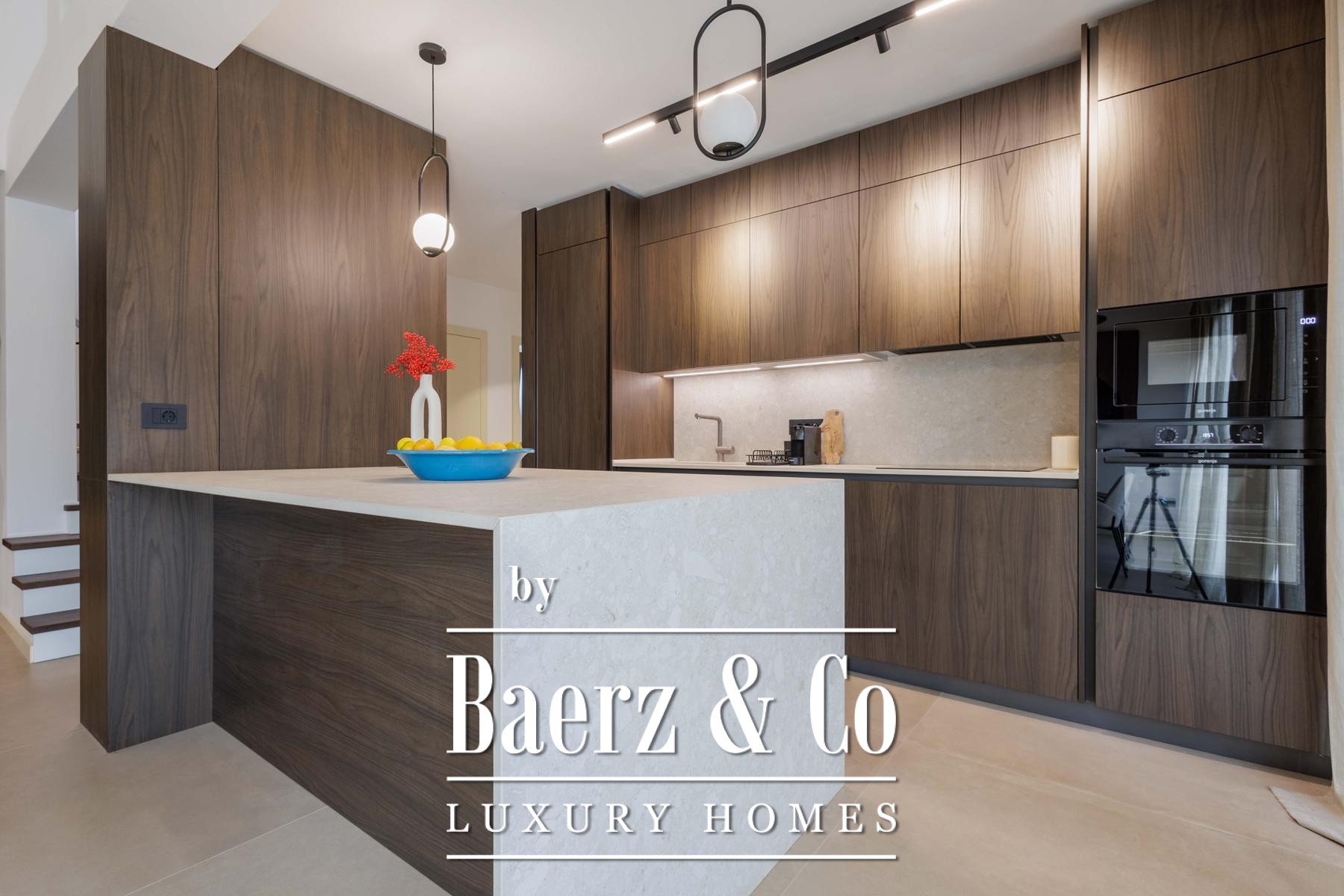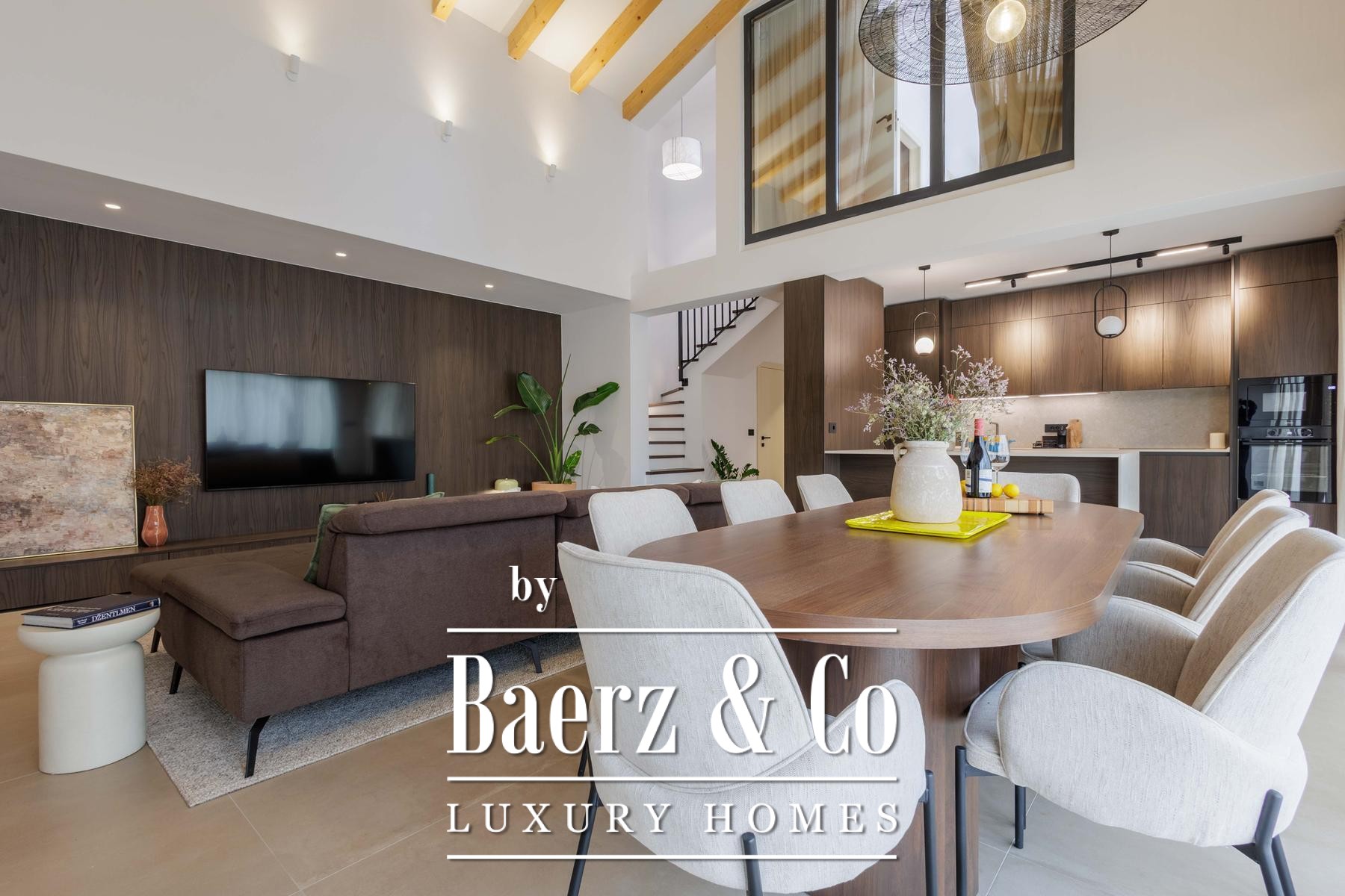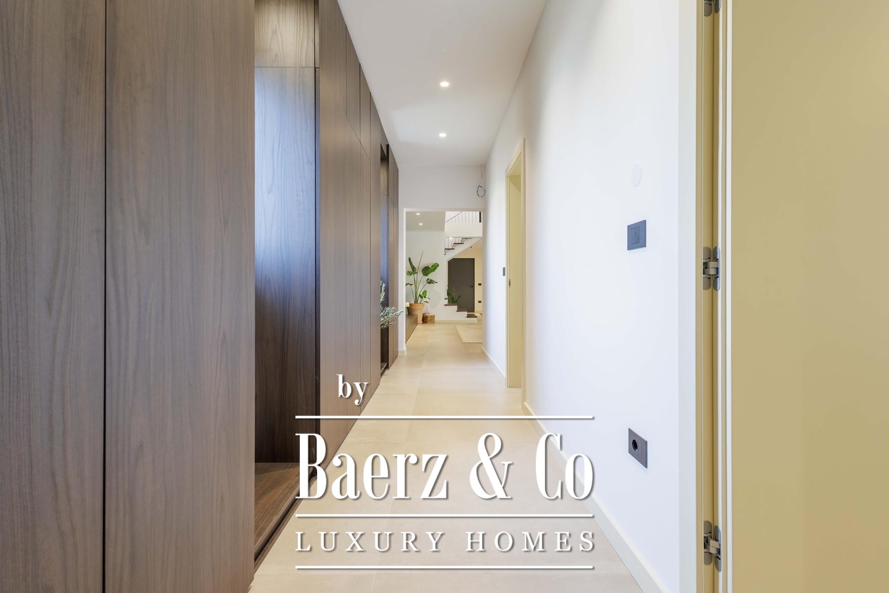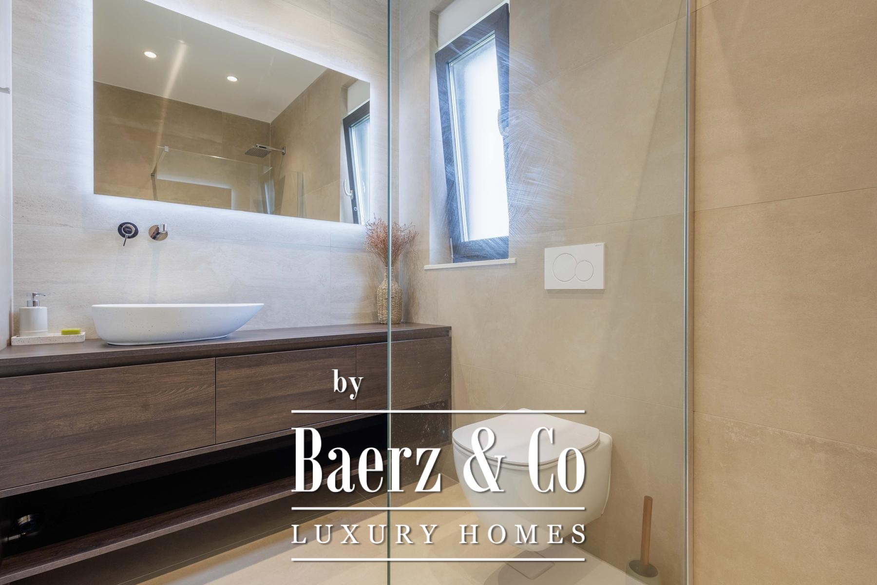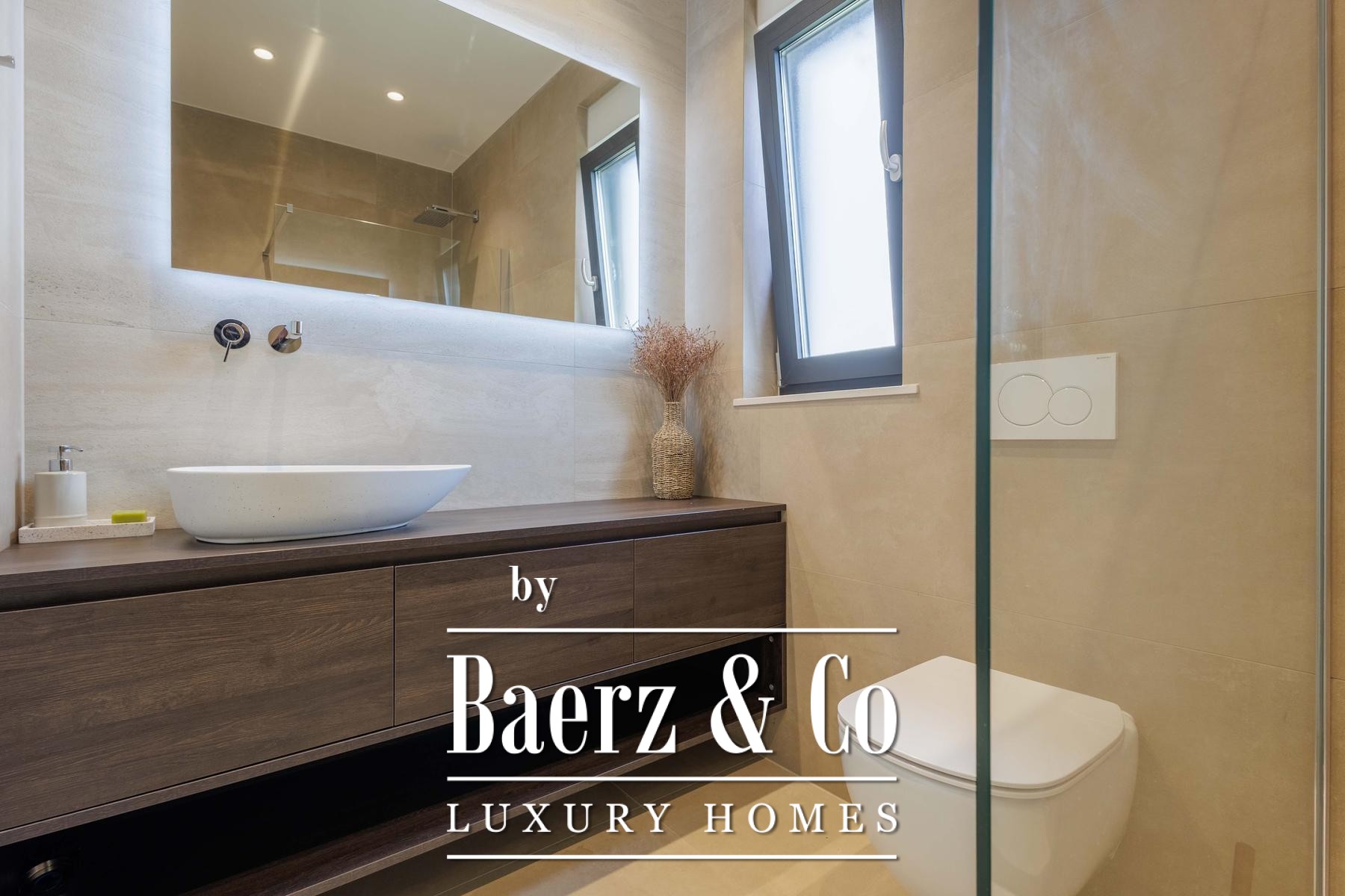 For sale is a modern newly built villa in authentic Istrian style, located in the peaceful area of Kaštelir - Labinci, one of the most desirable parts of western Istria. This exceptional property perfectly combines traditional Istrian charm with contemporary design and top-class comfort, and is built as a high-standard low-energy home.The villa is spread over two floors and features four spacious bedrooms, each with its own en-suite bathroom. Three bedrooms are situated on the ground floor, while the master bedroom occupies the first floor, complete with a private bathroom, walk-in wardrobe, and a large terrace offering a spectacular panoramic view of the sea and the surrounding landscape.The property is equipped with underfloor heating powered by a heat pump and air conditioning throughout, ensuring maximum comfort year-round. Underfloor heating is also installed in the outdoor kitchen, emphasizing practicality and thoughtful design. Additionally, there are two separate guest toilets.The outdoor area is designed as a true oasis of relaxation and luxury, featuring a fully equipped summer kitchen, sunbathing area, swimming pool, fire pit, and a space prepared for a jacuzzi. The beautifully landscaped garden includes a lush green lawn and six olive trees, maintained by a fully automated irrigation system.This stunning villa offers the perfect blend of authentic Istrian elegance and modern luxury, representing an ideal opportunity for those seeking a peaceful residence or a premium investment in the luxury tourism segment of western Istria.