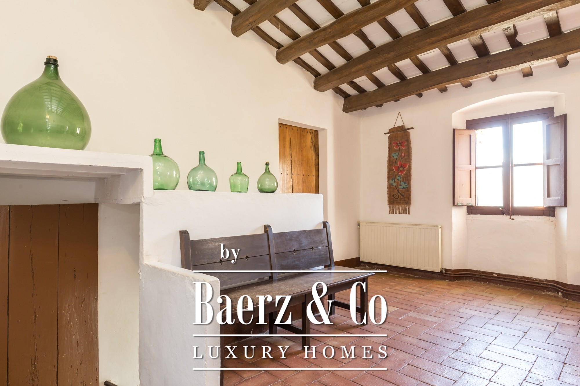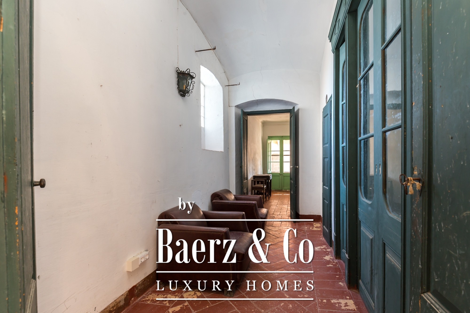 Das Haupthaus bietet sieben Schlafzimmer und vier Badezimmer. Die Suiten im Obergeschoss verfügen über private Terrassen und bieten außergewöhnliche Ausblicke. Hohe Decken, lichtdurchflutete Räume und originale architektonische Details verleihen dem Haus historischen Charme. Zwei Ess- und Wohnzimmer, eine großzügige Wohnküche sowie ein Arbeitszimmer mit Blick in den privaten Garten bieten Raum für Lebensqualität. Großzügige Stauflächen und Nebengebäude sorgen für funktionale Vielseitigkeit.