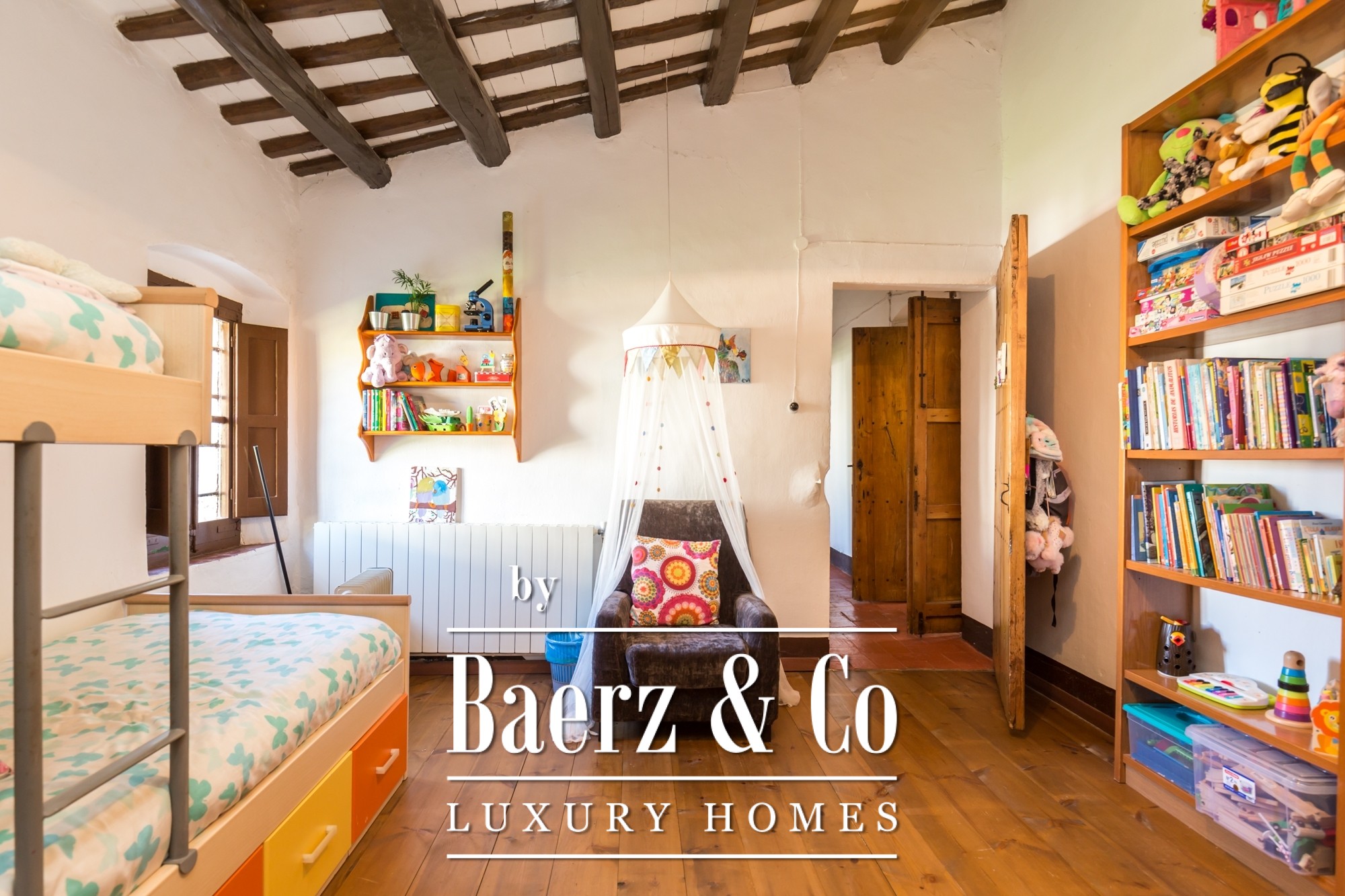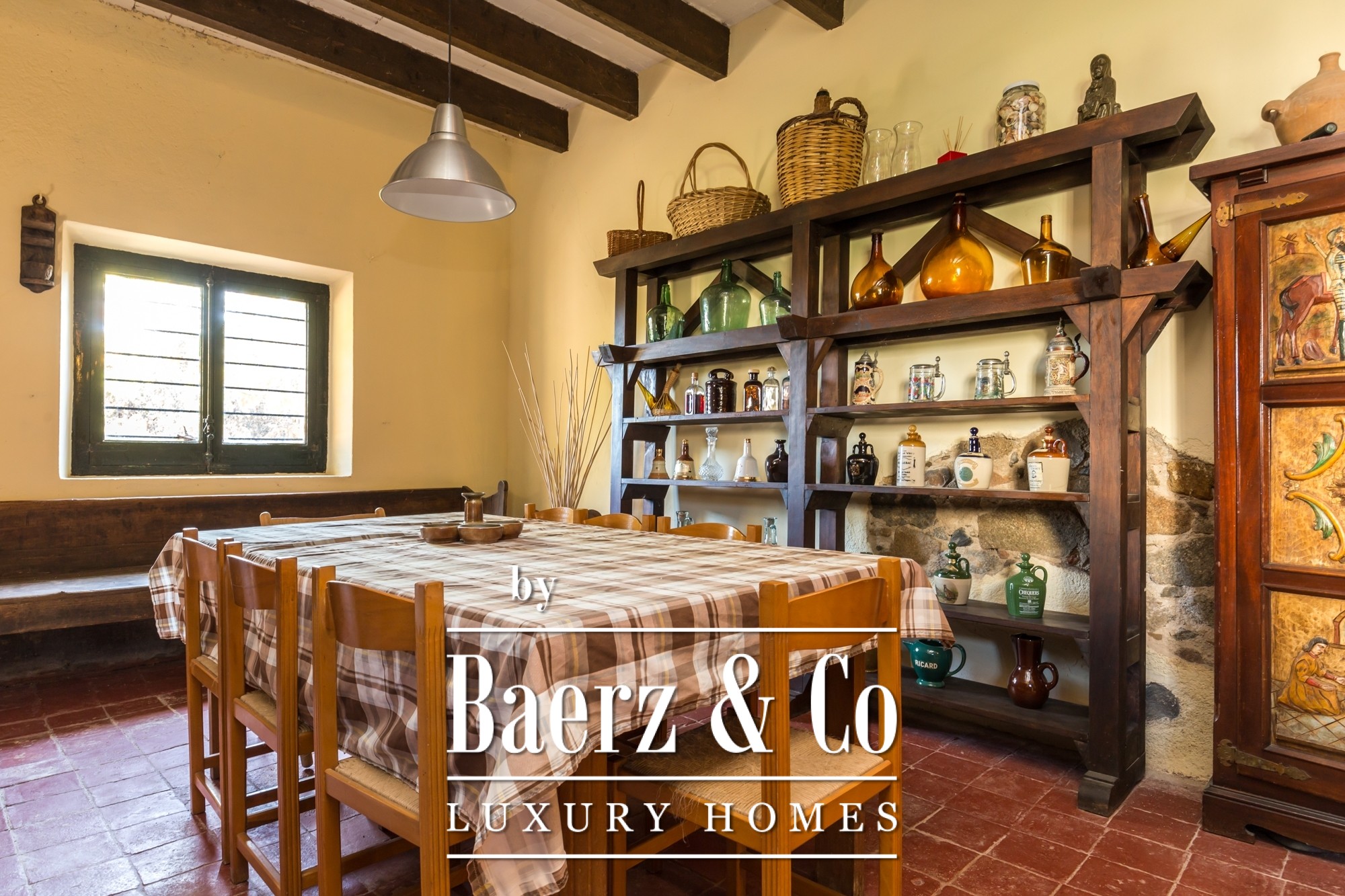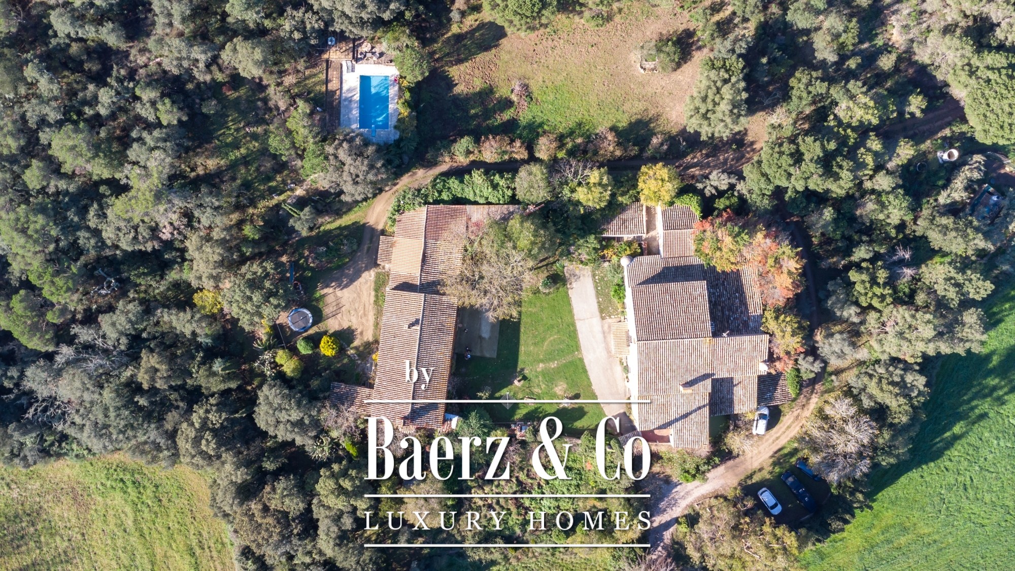 Das Anwesen Farmhouse Llagostera verkörpert zeitlose, ländliche Eleganz auf einem 12 Hektar großen Gelände, das Wald, landwirtschaftliche Flächen und sorgfältig angelegte Gärten vereint. Die 1.567 m² große Wohnfläche erstreckt sich über mehrere eigenständige, funktionale Gebäude, deren Herzstück ein traditionelles Bauernhaus aus dem Jahr 1852 bildet. Die Immobilie genießt eine privilegierte, ländliche Lage, nur wenige Minuten von den Stränden der Costa Brava entfernt, eingebettet in vollkommene Abgeschiedenheit mit Panoramasicht auf Berge und die Region.