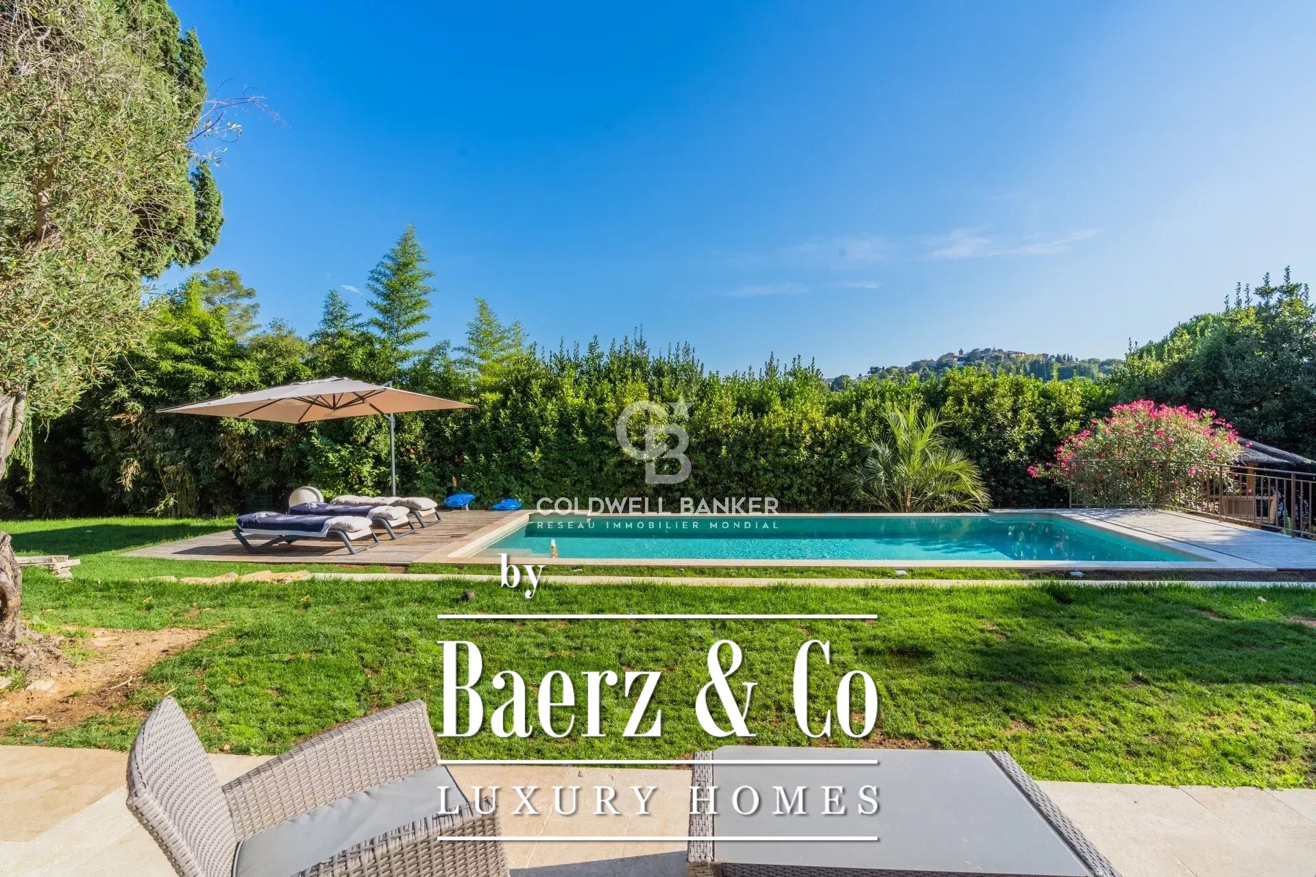 Der Garten, überwiegend mit Rasen angelegt, lädt zu langen Nachmittagen im Freien ein und verfügt über einen neuen Pool mit den Maßen 10 mal 4 Meter, umgeben von Holzdecks. Praktische Ausstattungsmerkmale wie Doppelverglasung, Klimaanlage, Alarmanlage und ein elektrisches Eingangstor sorgen für Diskretion und Komfort. Ein privater Parkplatz bietet Platz für mehrere Fahrzeuge. Die Steinbastide Mougins ist ab Ende Dezember verfügbar und bietet eine harmonische Verbindung zwischen privatem Rückzugsort und dem anspruchsvollen Leben im Dorf.