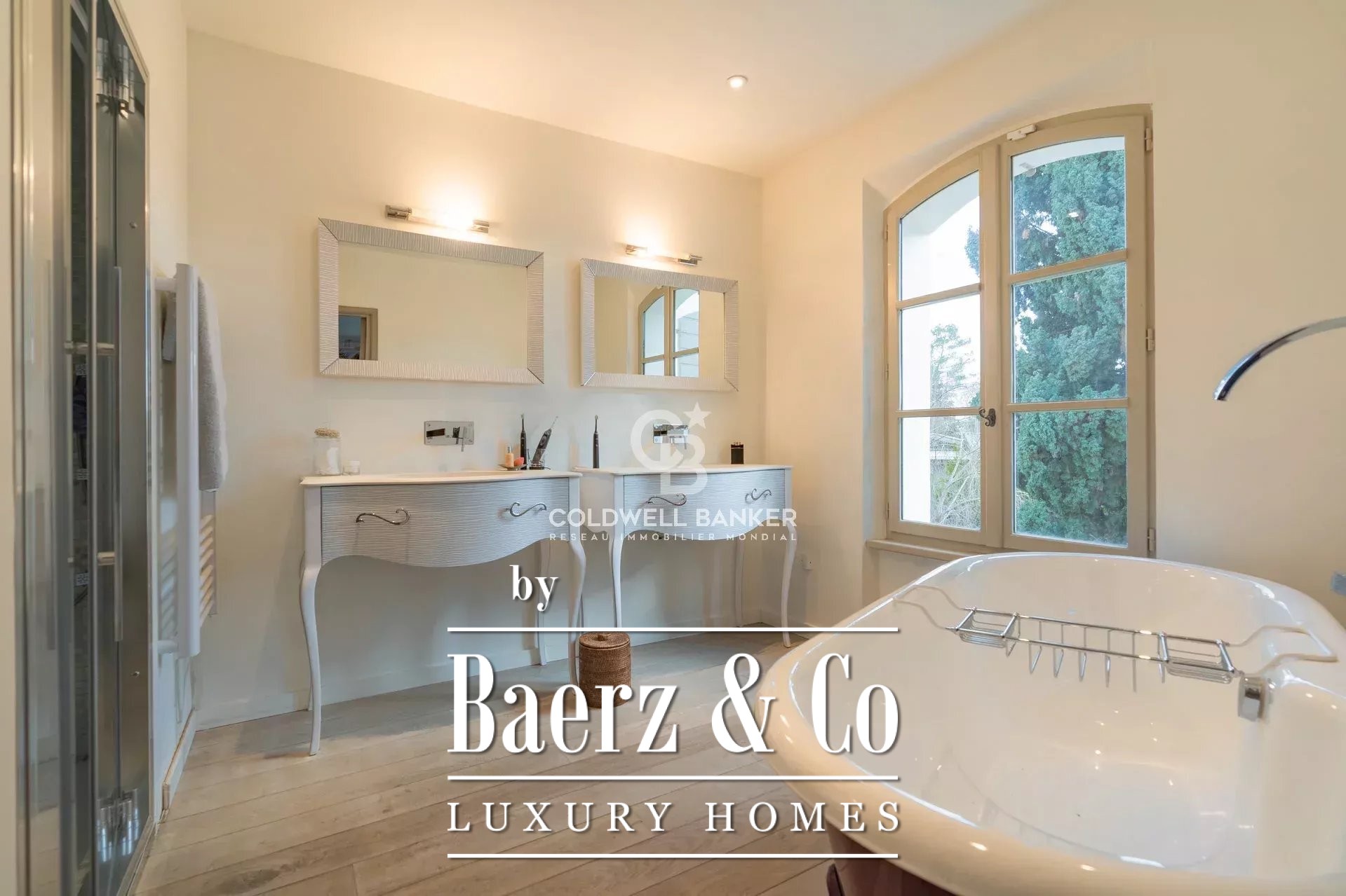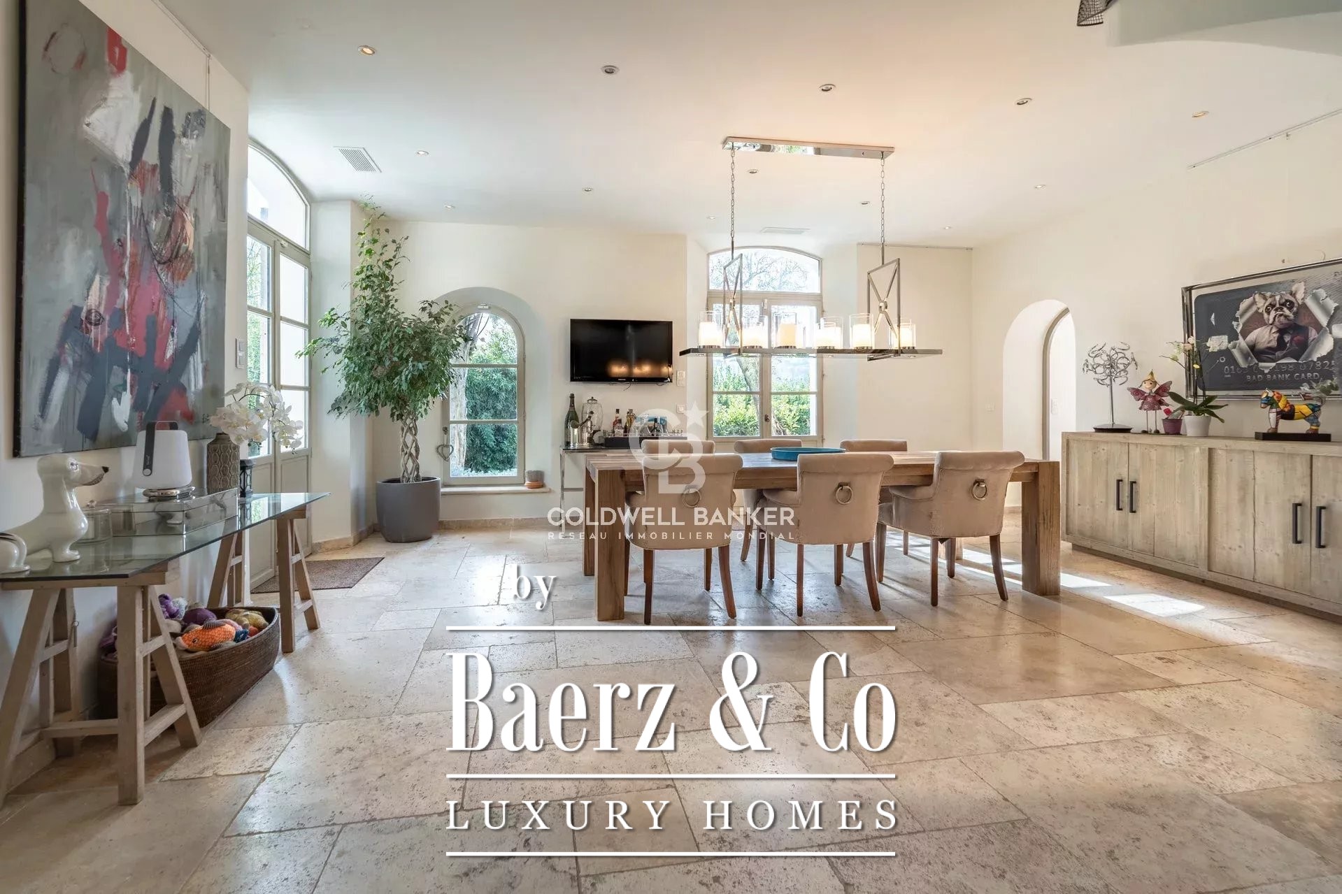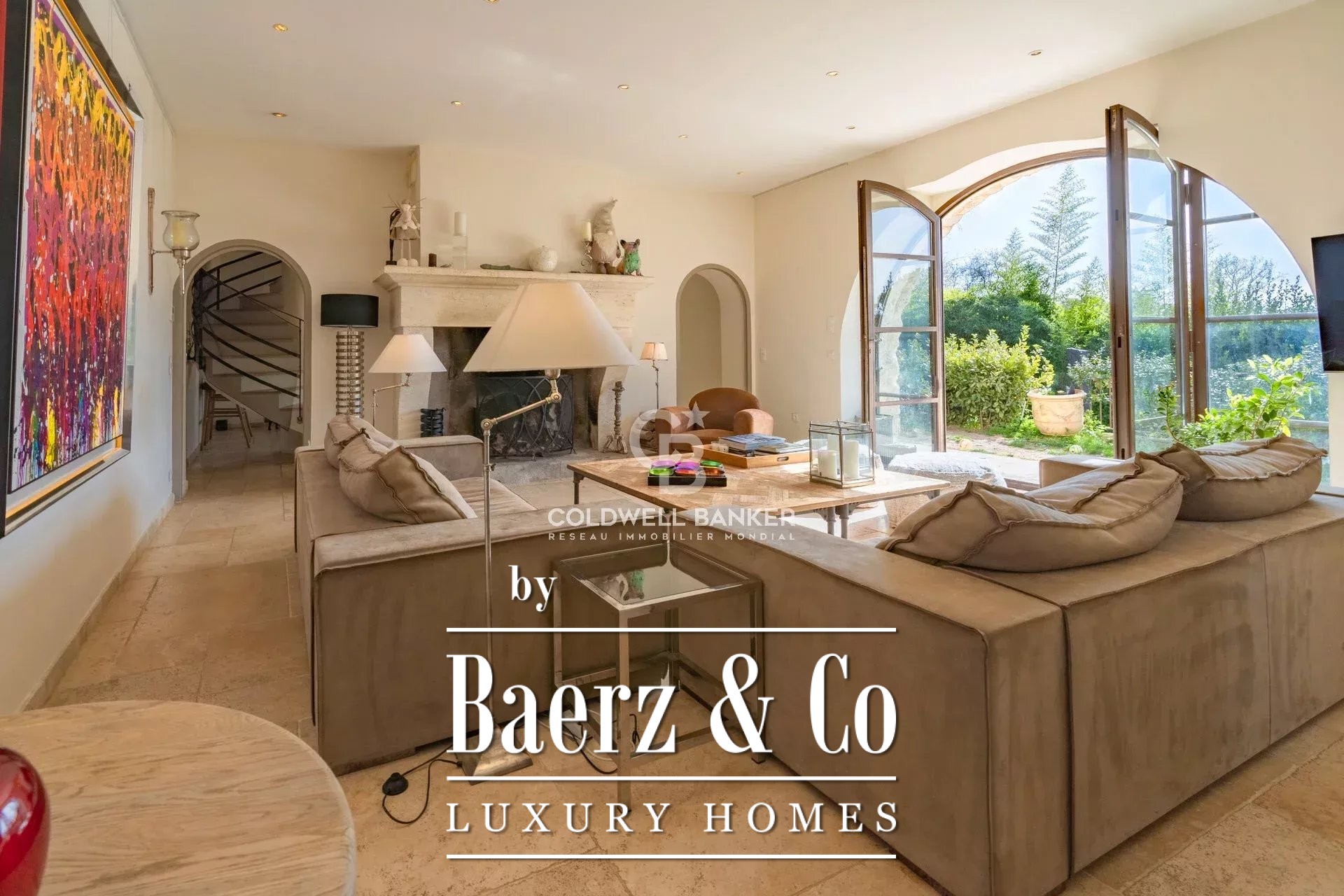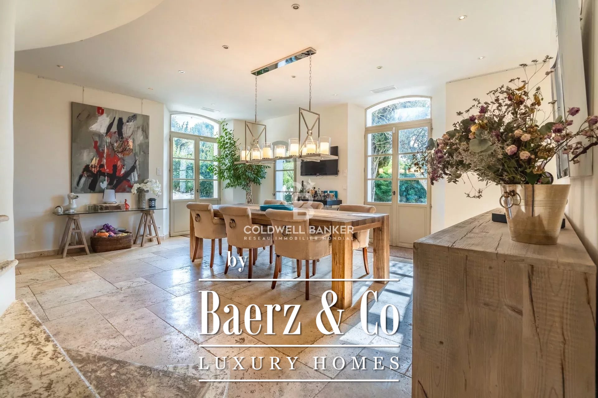 Die Steinbastide in Mougins befindet sich im angesehenen Viertel Les Colles, wo eine sorgfältige Renovierung diesem 200 m² großen Anwesen neues Leben einhaucht. Diese Immobilie vereint klassischen provenzalischen Charme mit gezielter Modernisierung und liegt eingebettet in einen 1.950 m² großen Garten, der ungehinderte Ausblicke über das historische Dorf Mougins bietet.