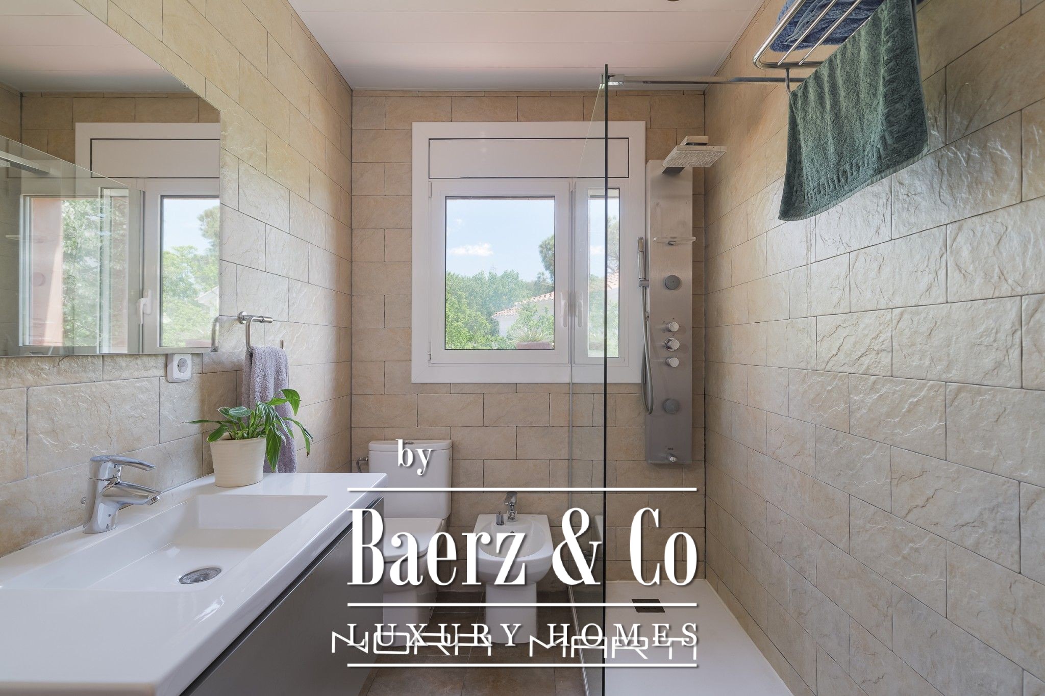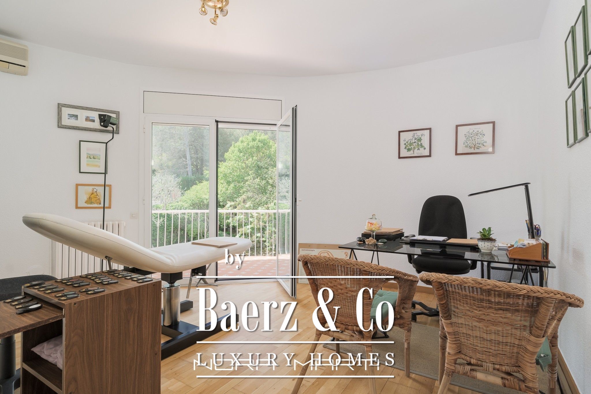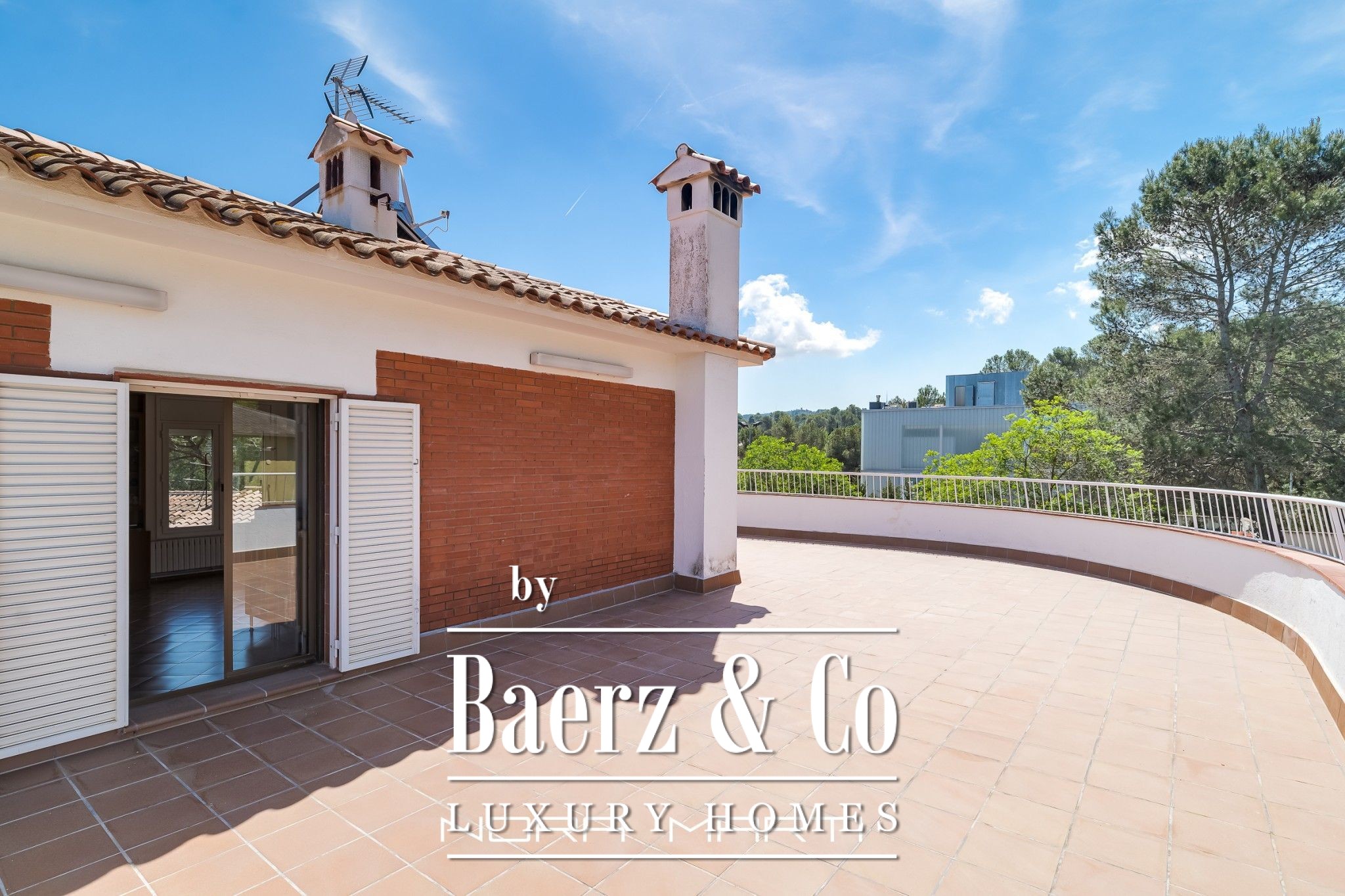 Ein Essbereich im Freien, eine umlaufende Terrasse und zwei separate Parkmöglichkeiten bieten zusätzlichen Komfort und Privatsphäre. Die Immobilie befindet sich in einer ruhigen, aber sehr gut angebundenen Lage und schafft einen exklusiven Rahmen für das Familien- und Gesellschaftsleben in Sant Cugat.