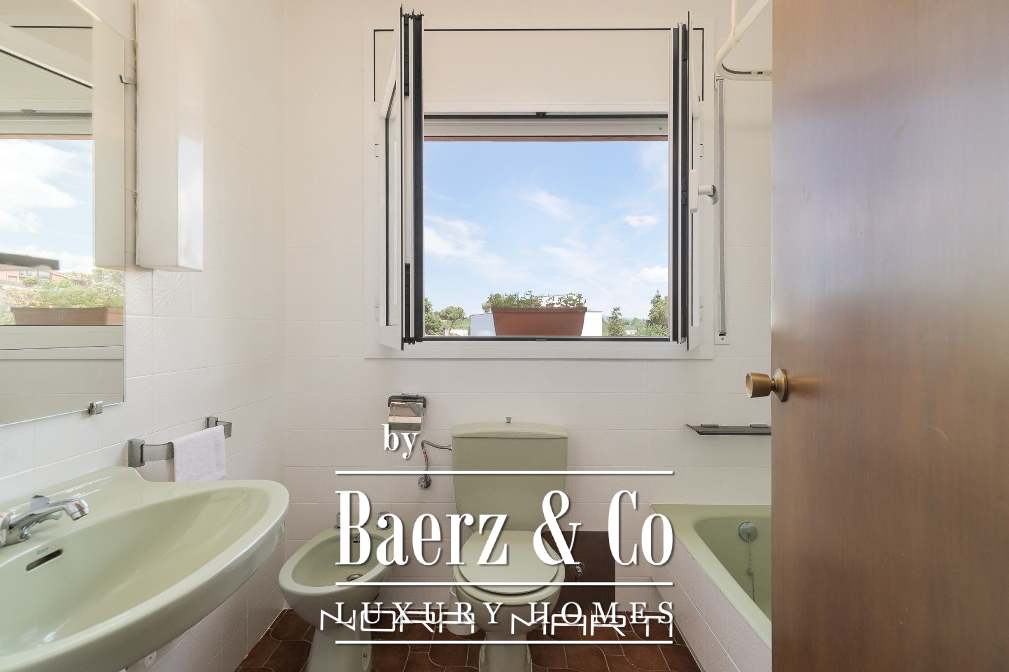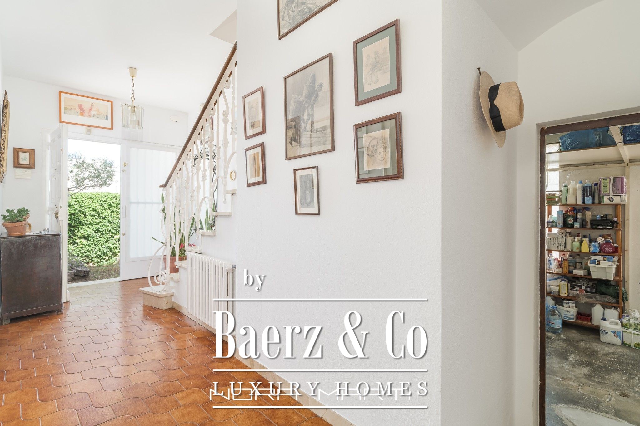 Im ersten Obergeschoss bieten sieben Schlafzimmer und zwei Badezimmer flexible Nutzungsmöglichkeiten für eine große Familie oder Gäste, unterstrichen durch eine 40 m² große Terrasse, die den Wohnraum nach außen erweitert. Die zweite Etage beherbergt ein 50 m² großes Studio, das für Arbeit oder Freizeit genutzt werden kann, ergänzt durch eine 84 m² große Terrasse für ruhiges Verweilen oder gemeinsames Beisammensein.