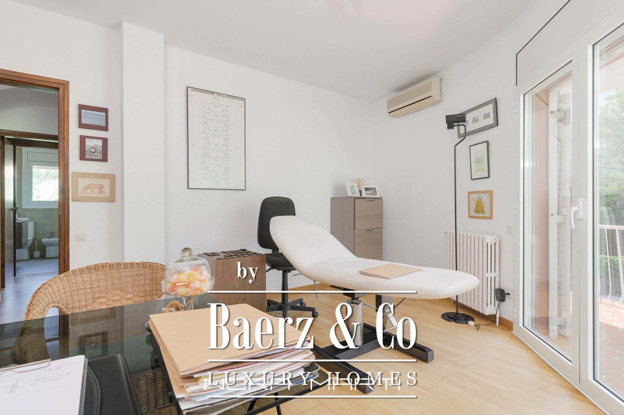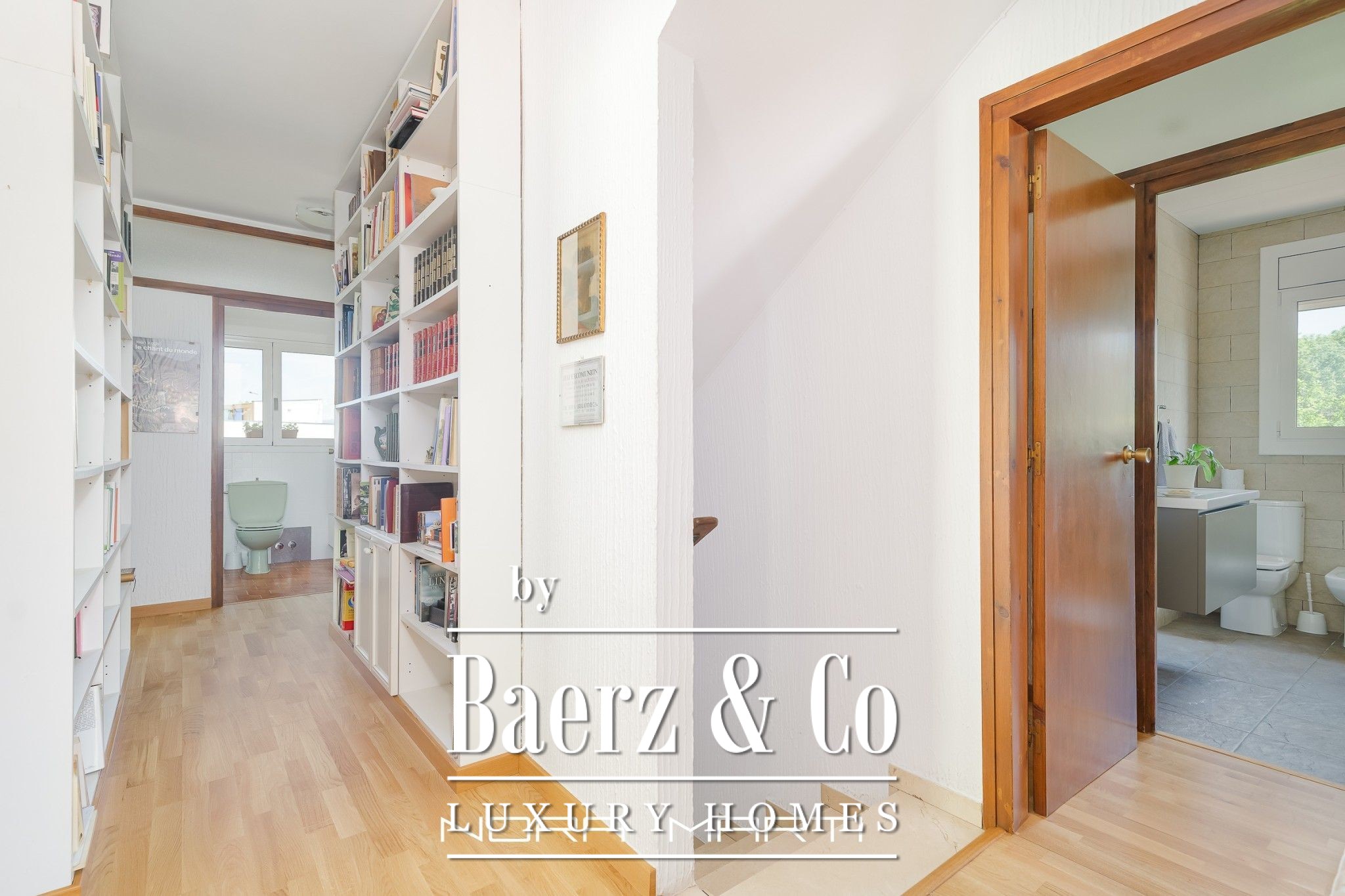 Das Haus in Sant Cugat bietet 375 m² durchdacht gestaltete Wohnfläche auf einem 620 m² großen Grundstück, nur wenige Gehminuten vom Bahnhof Valldoreix entfernt. Diese Immobilie verbindet raffinierte Gestaltung mit Privatsphäre und präsentiert eine segelförmige Fassade, die Sonnenlicht sowie den sorgfältig angelegten Garten und Pool einlädt. Das 120 m² große Erdgeschoss umfasst eine 40 m² große Garage mit direktem Zugang zur Diele, von der Sie in einen großzügigen Wohn- und Essbereich gelangen, eine Küche, die auf tägliche Abläufe abgestimmt ist, einen praktischen Hauswirtschafts- und Bügelraum, ein separates Arbeitszimmer sowie ein voll ausgestattetes Badezimmer.