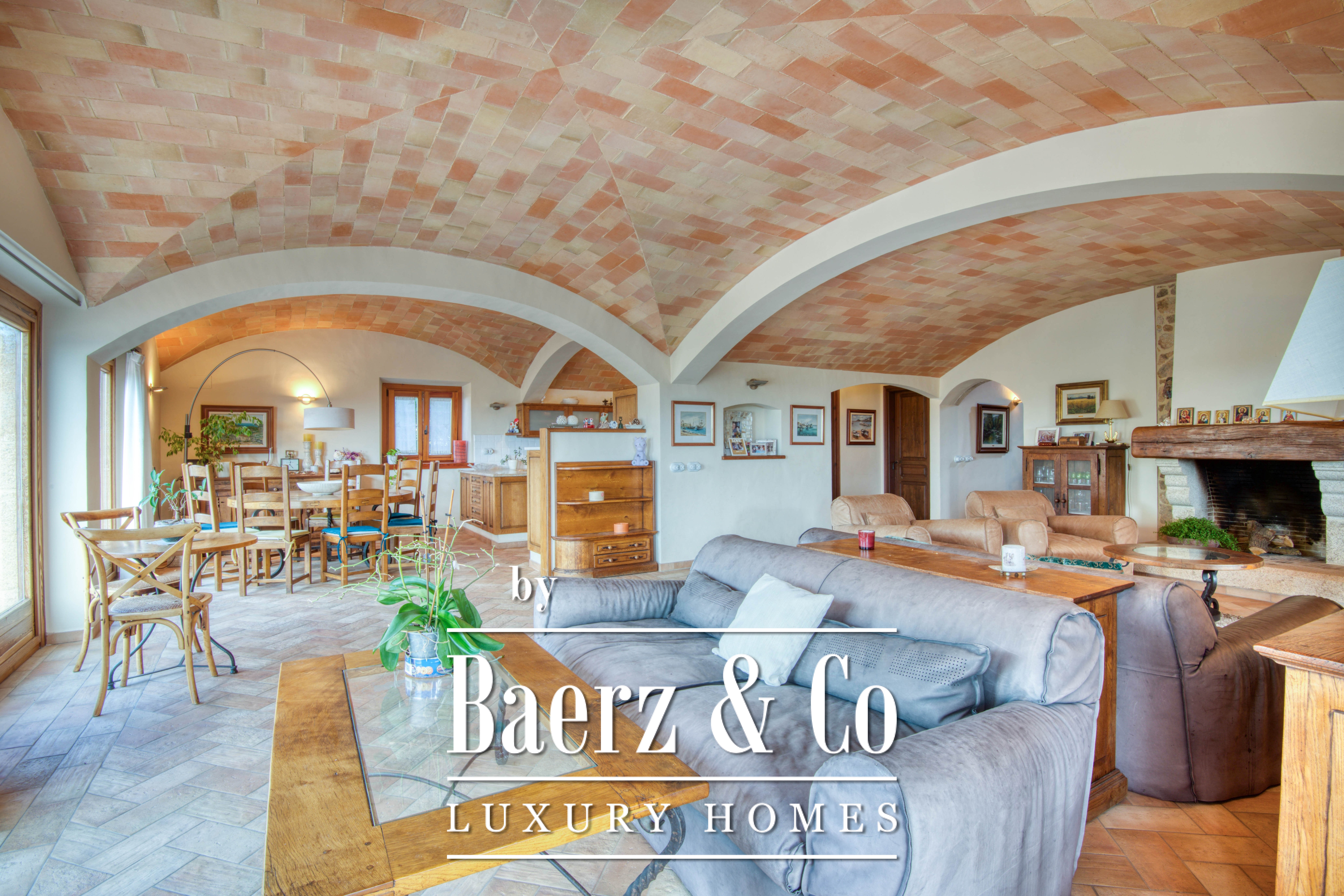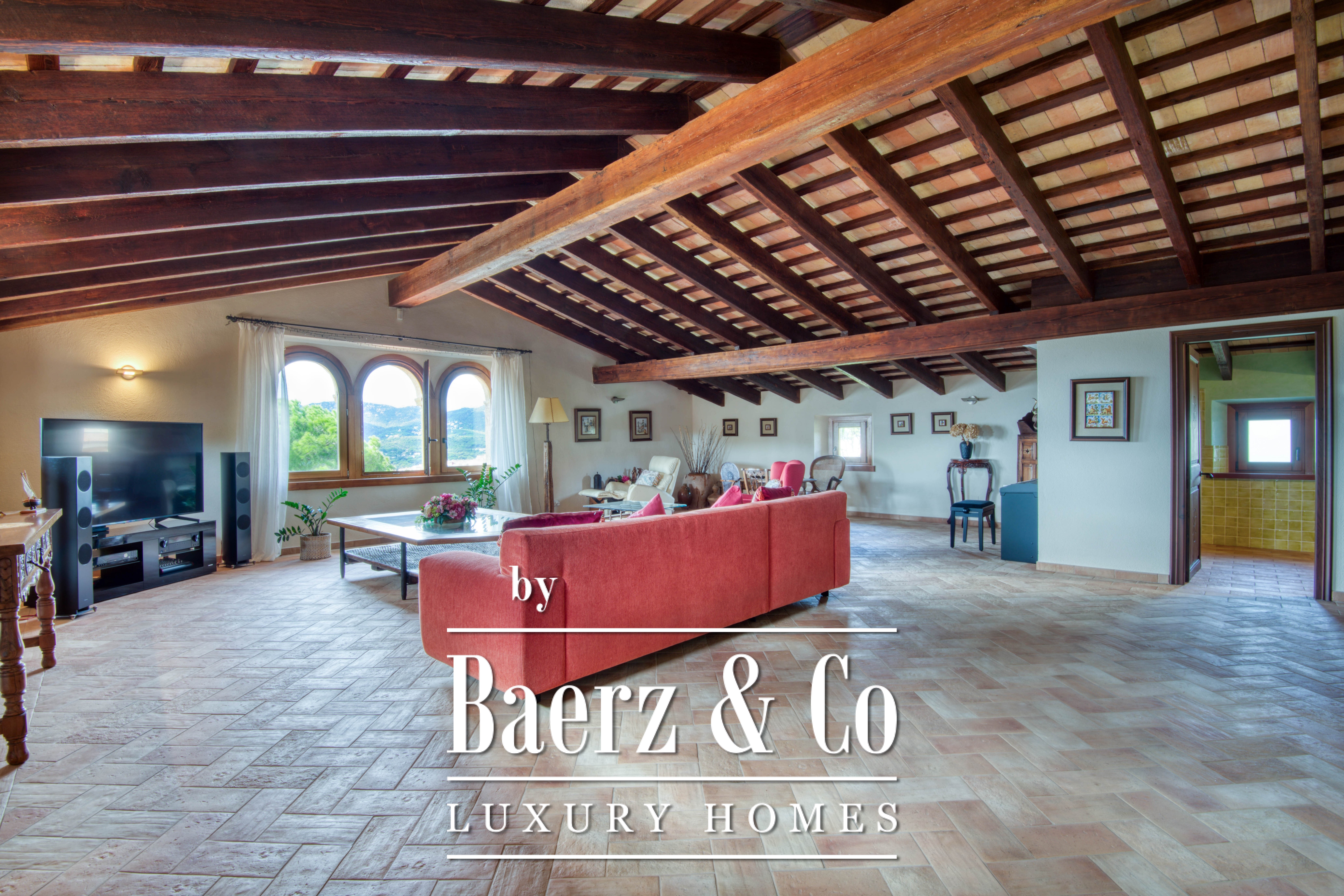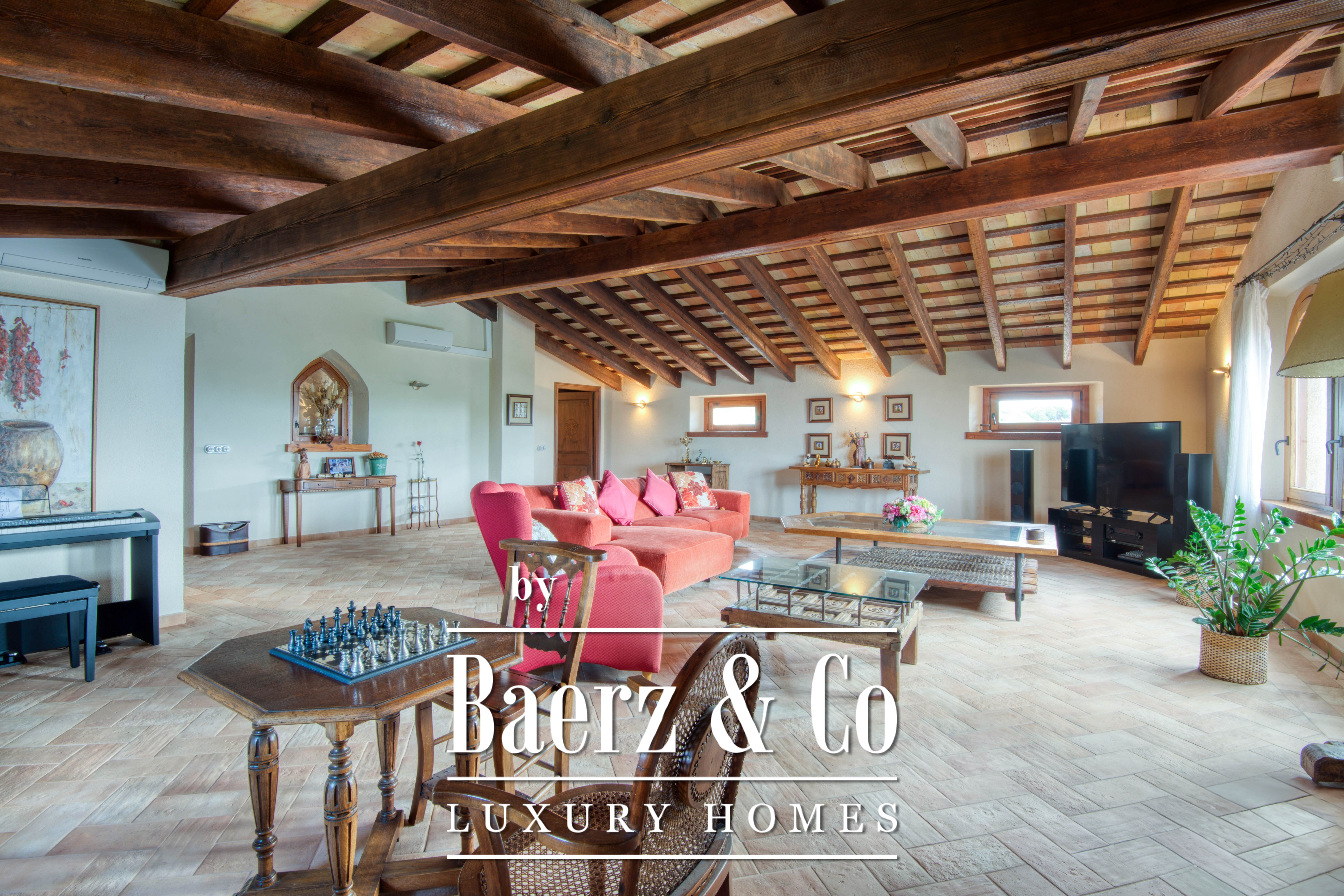 Im Inneren sorgen sechs Schlafzimmer und vier Bäder für dezenten Luxus für Familie oder Gäste. Die separate Küche bietet direkten Zugang zu den Gesellschaftsräumen, während das großzügige, lichtdurchflutete Wohnzimmer auf die Terrassen führt, von denen aus sich Sonnenauf- und -untergänge über der Küste genießen lassen. Im Außenbereich laden der private Garten und der Swimmingpool zu entspanntem Sommerleben ein. Grillbereich, Kamin und großzügige Lounges vervollständigen das Angebot. Für Komfort sorgen Heizung, Klimaanlage, eine geschlossene Garage und zahlreiche Parkmöglichkeiten auf dem Grundstück.
