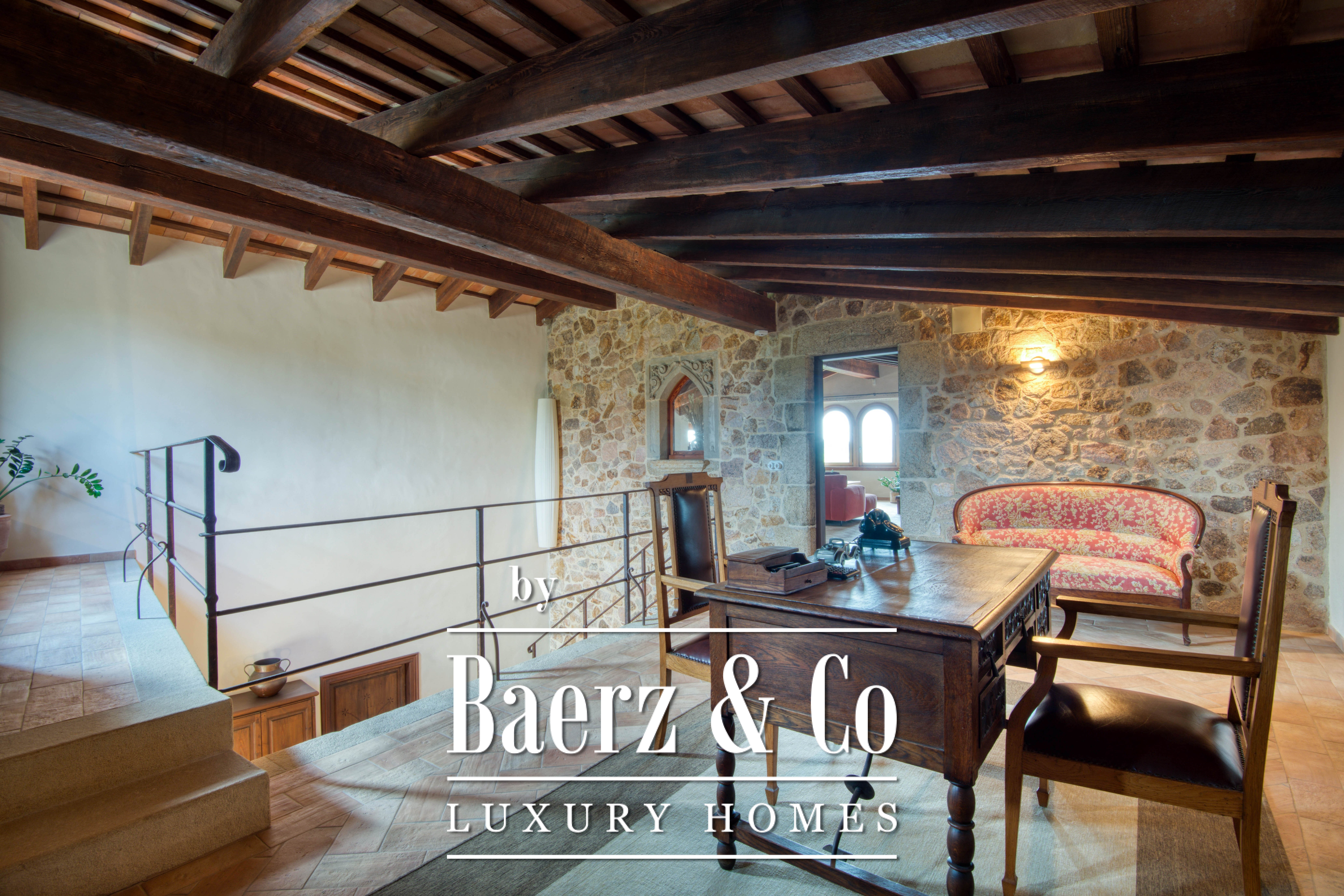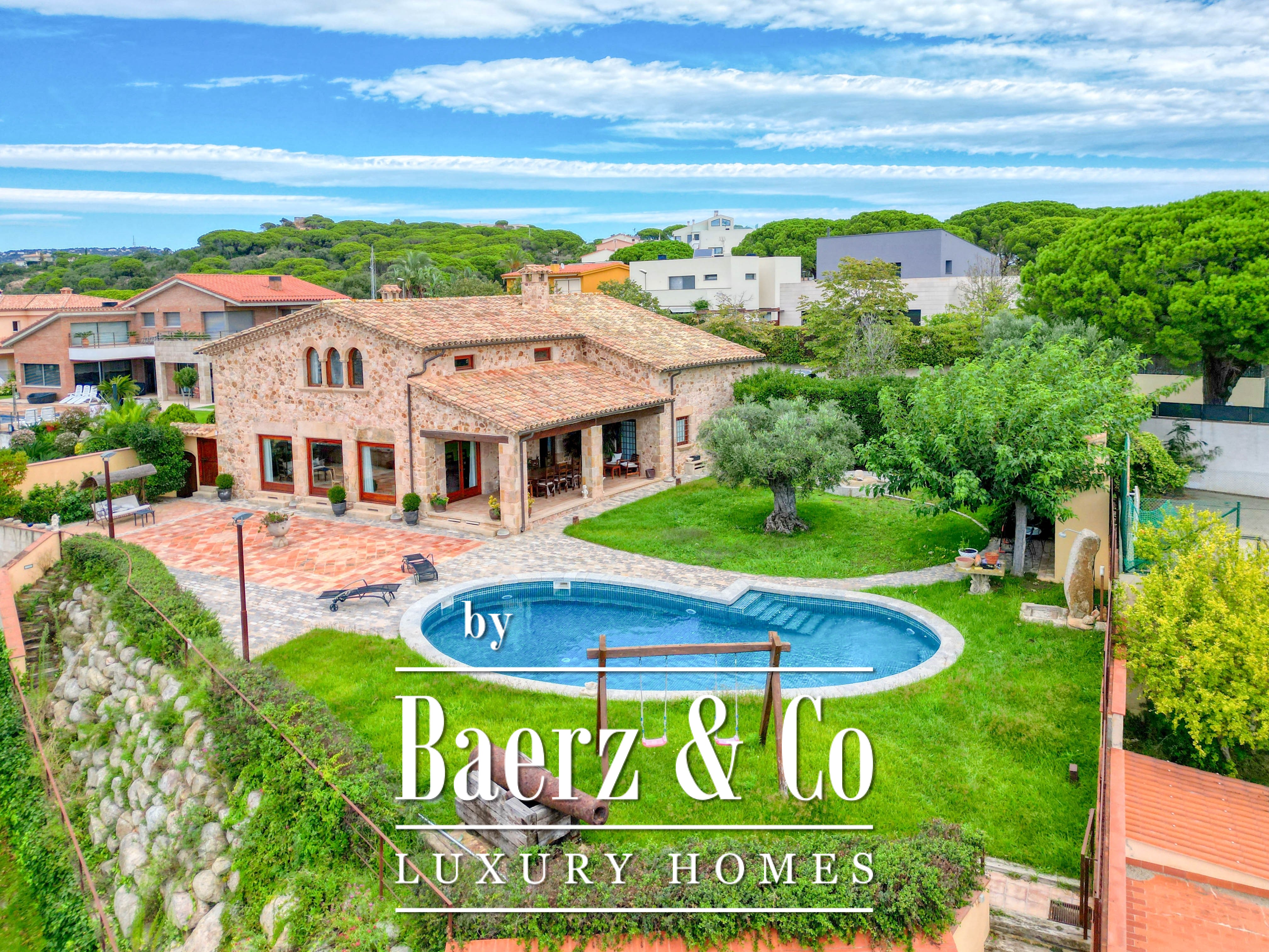 Die freistehende Villa in Sant Feliu de Guixols bietet eine harmonische Verbindung von Privatsphäre, Großzügigkeit und mediterranem Lebensstil an der begehrten Costa Brava. Das 520 m² große Anwesen liegt auf einem vollständig ebenen Grundstück von 1.179 m² und überzeugt durch seine anspruchsvolle, rustikale Architektur, die traditionelle Materialien mit modernem Komfort kombiniert. Mediterrane Bepflanzung und der freie Blick zum Meer schaffen eine Atmosphäre tiefer Ruhe und ein starkes Naturerlebnis.