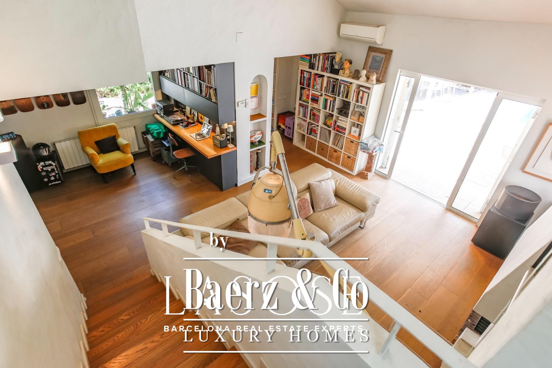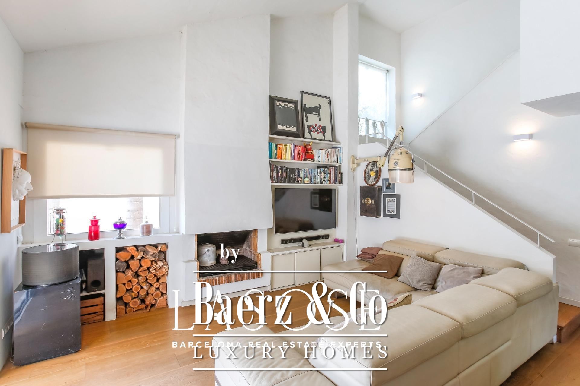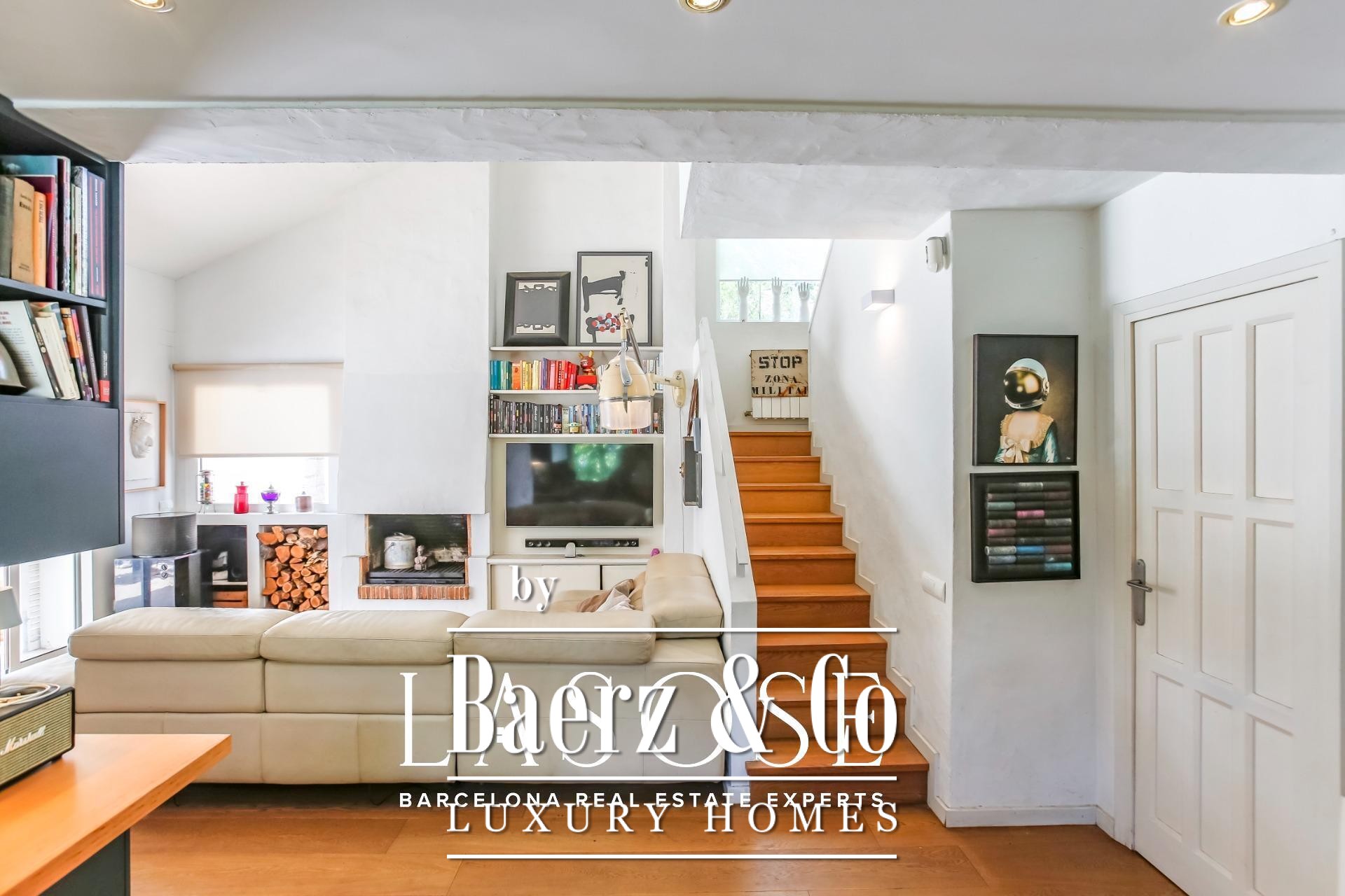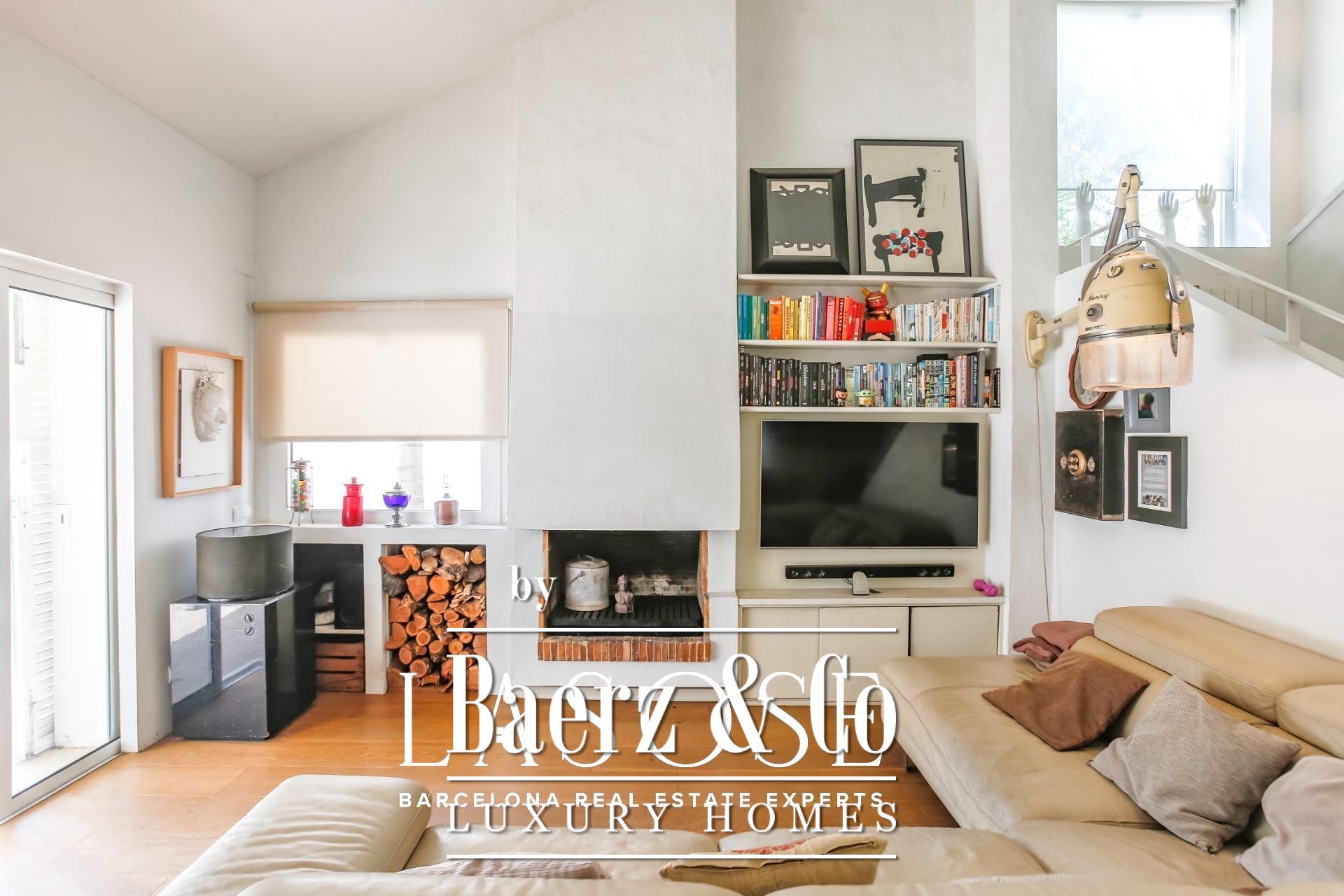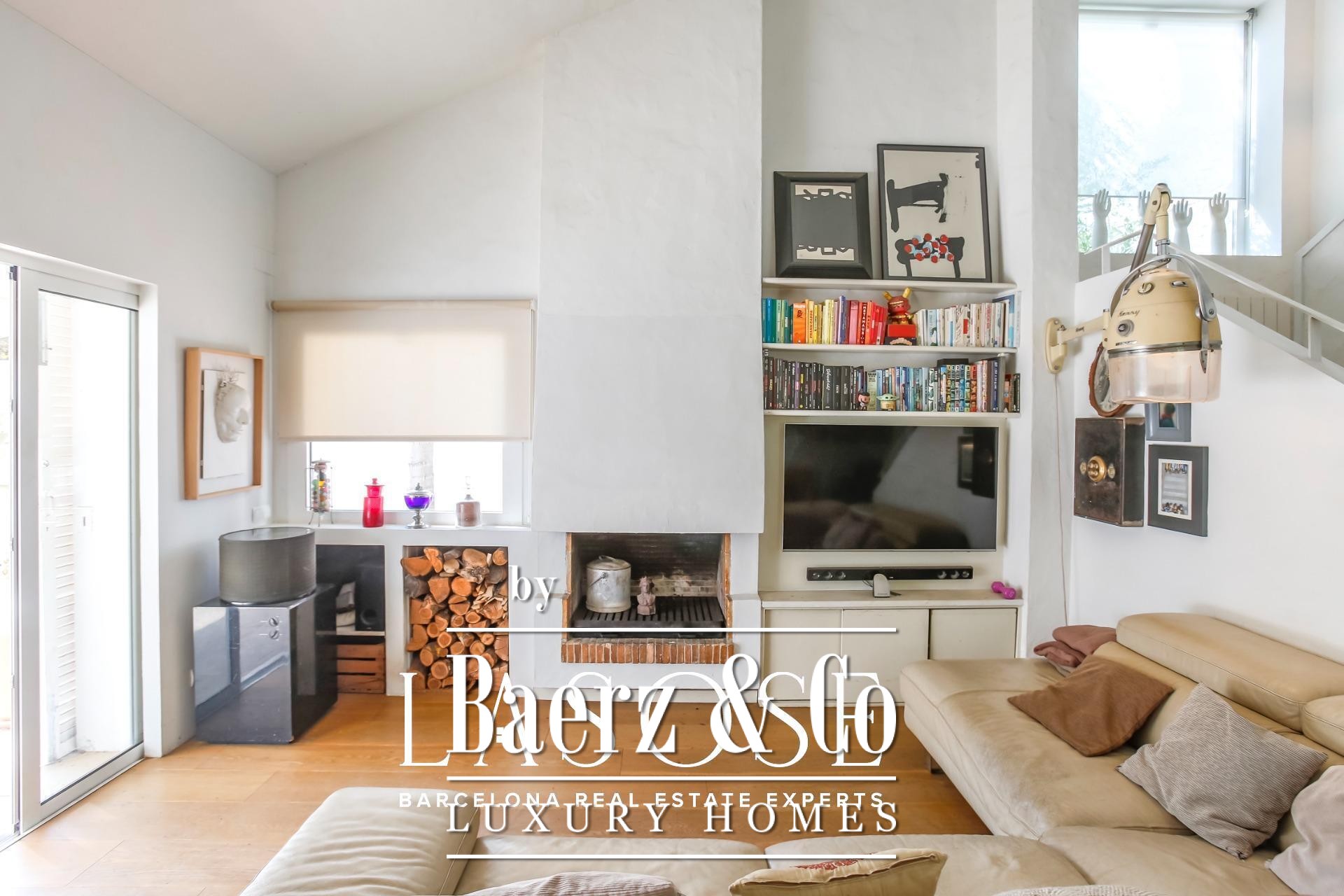 Im Inneren entfaltet sich ein harmonischer Wohnrhythmus. Der elegante Wohnbereich mit Kamin öffnet sich zum Garten, während die voll ausgestattete Küche mit zentraler Arbeitsfläche an eine private Terrasse und den Parkplatz anschließt. Im Erdgeschoss ergänzt eine Gästesuite oder ein Homeoffice das flexible Wohnkonzept, während das Obergeschoss drei helle Doppelschlafzimmer mit Gartenblick und doppelt hoher Decke bietet. Überall unterstreichen hochwertige Ausstattungen und neutrale Farbtöne die natürliche Noblesse der Architektur.