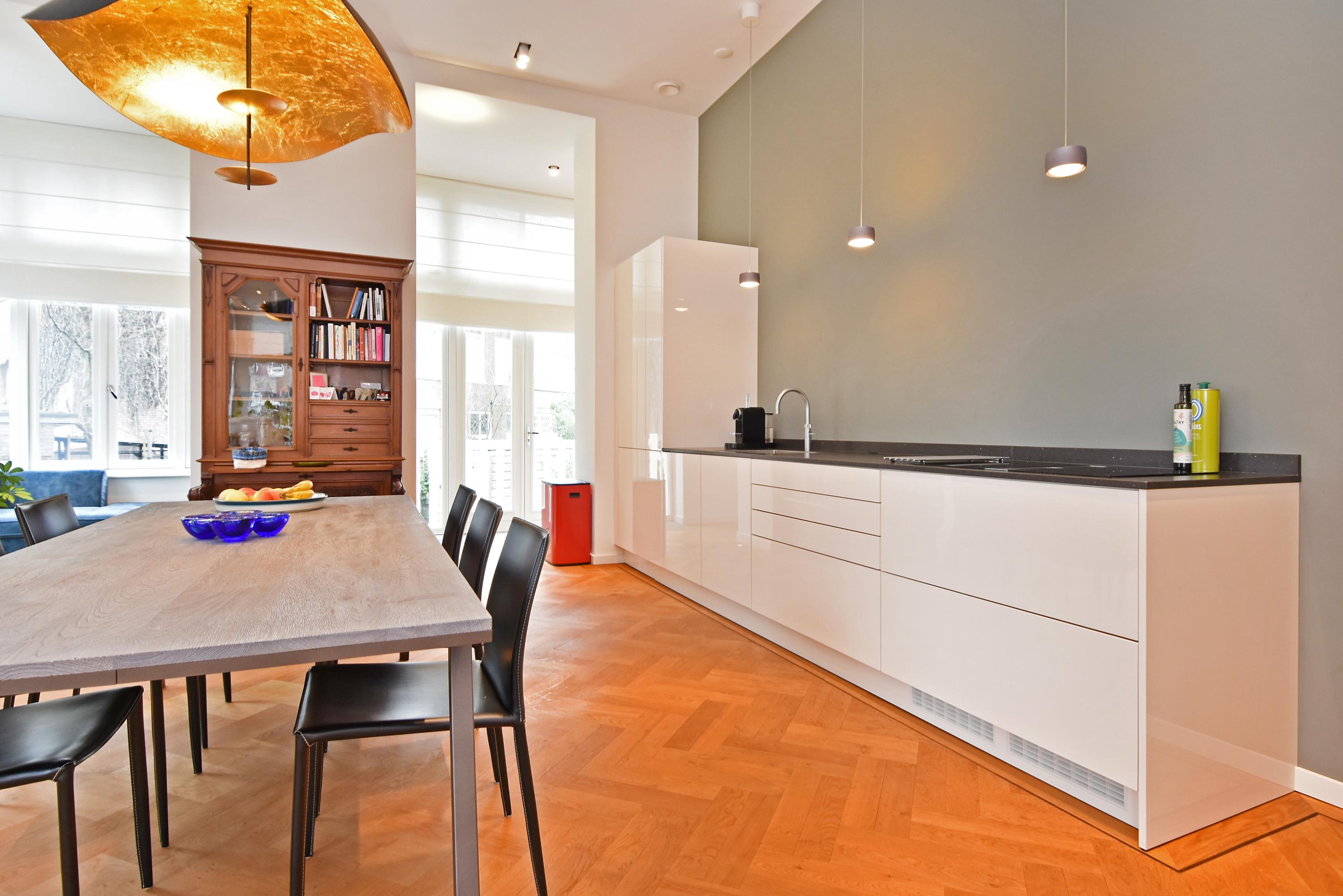 Three bedrooms and two bathrooms are found on the lower level, complemented by custom storage, a dedicated laundry area, and casting floors with underfloor heating. The property includes two reserved parking places with an EV charging point, full smart technology for heating and lighting, and is move-in ready. All within walking distance to fine dining, cultural venues, and the Peace Palace, this duplex apartment The Hague invites an elegant and contemporary quality of life.