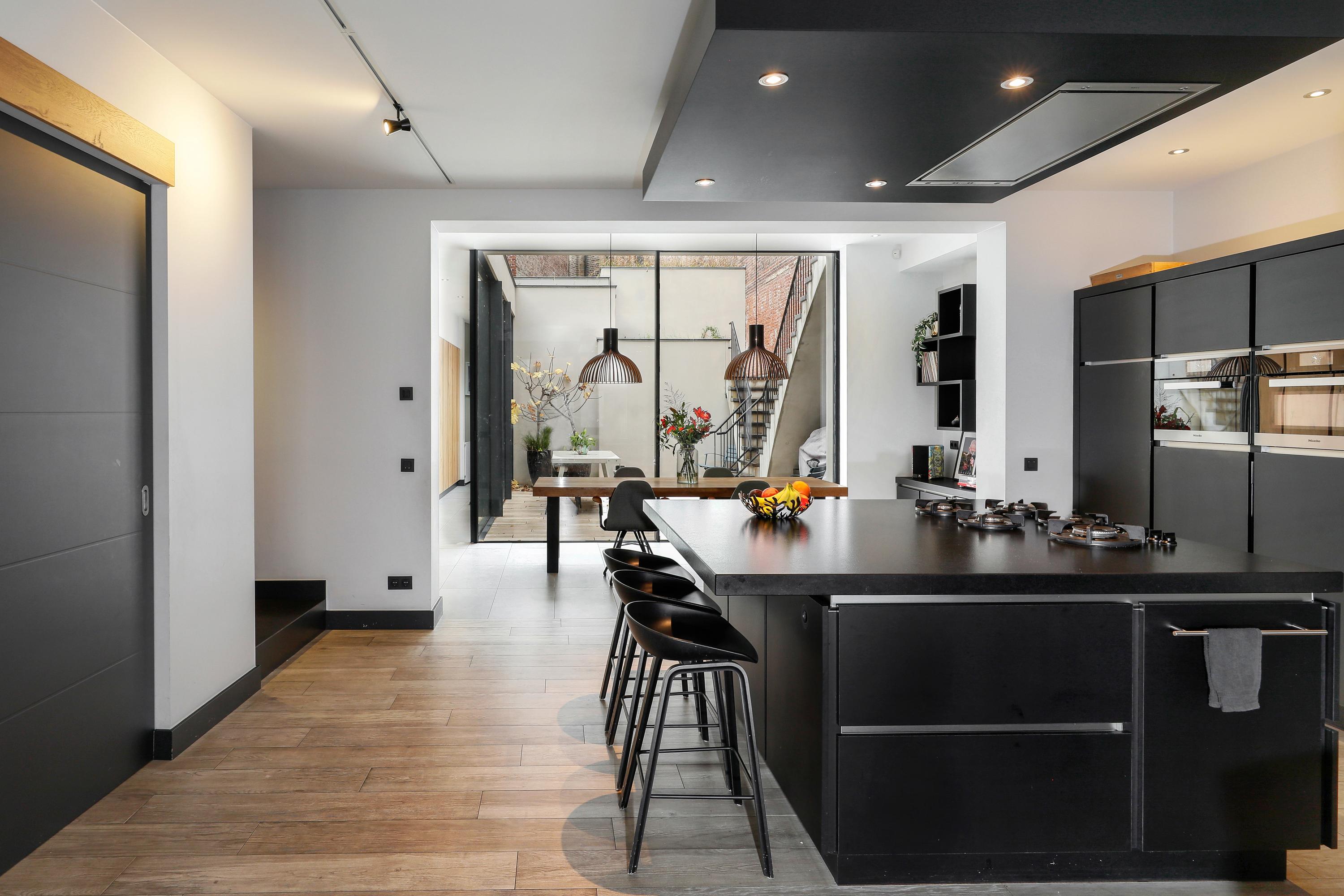 Older houses in the city center are typically narrow and tall. Few houses offer, like this one, approximately 150 m² of ground floor space. With all that space, the kitchen is the hub of your family. It fulfills this social hub role with a spacious island offering ample storage, PITT Cooking, and a breakfast and drinks bar. Naturally, the kitchen is fully equipped with Miele and Liebherr appliances and a Quooker. There's also ample storage space around the island, and opposite it, a coffee and wine corner. From this kitchen, you also have a beautiful view of the living room, the dining room, and the garden. An ideal focal point for your home.