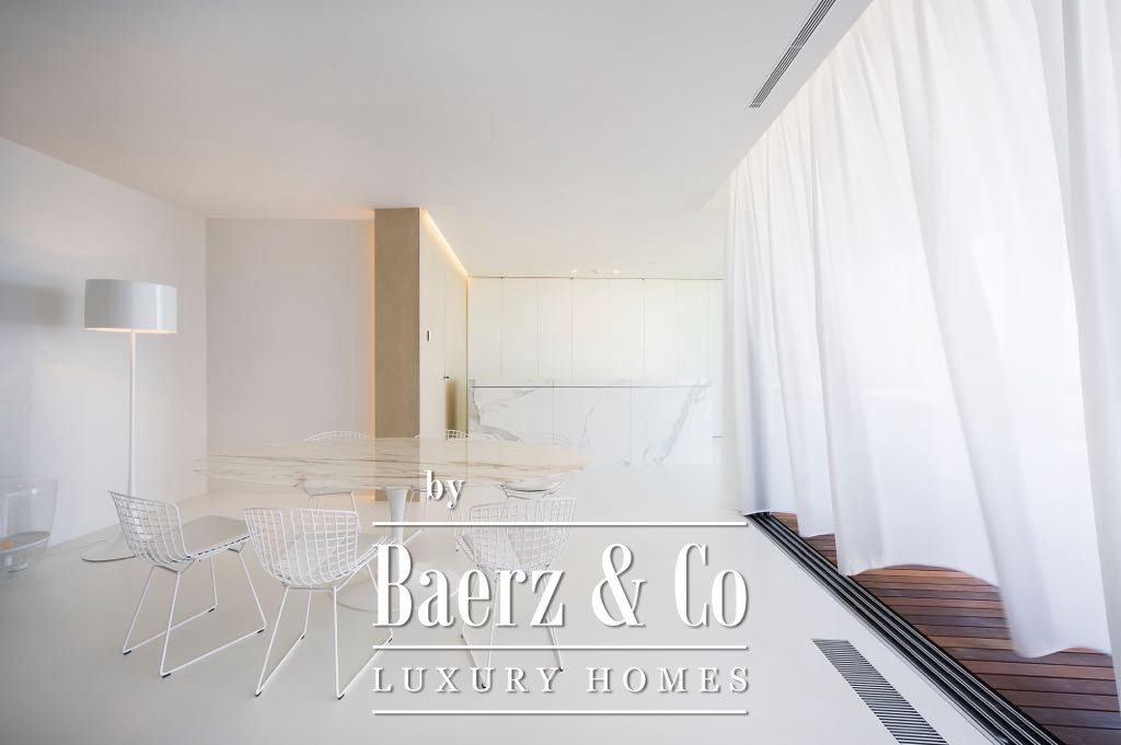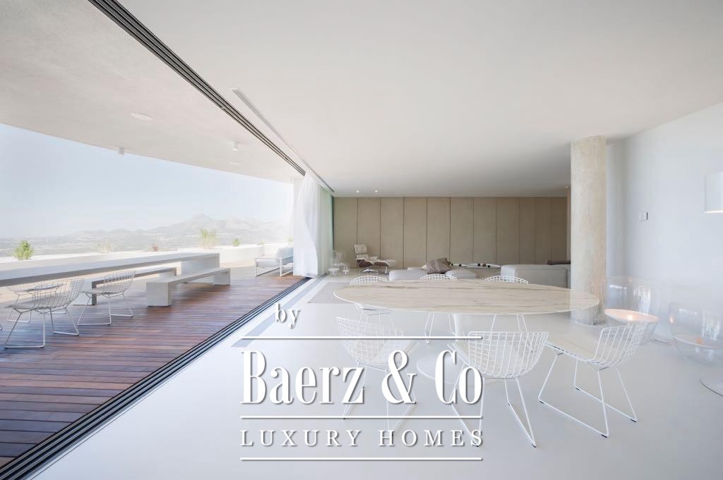 This exclusive penthouse combines the size of a villa with the convenience of an apartment. It offers style and comfort, along with a spectacular view of both the deep blue Mediterranean Sea and the impressive Sierra de Bernia. The centerpiece is the enormous southwest-facing terrace of nearly 250 m², where you can enjoy the Mediterranean climate in peace and privacy year-round. The floor-to-ceiling sliding windows allow for maximum natural light and breathtaking views from every room. The interior of this luxury property has been designed by renowned Belgian interior designer Filip Deslee. It features