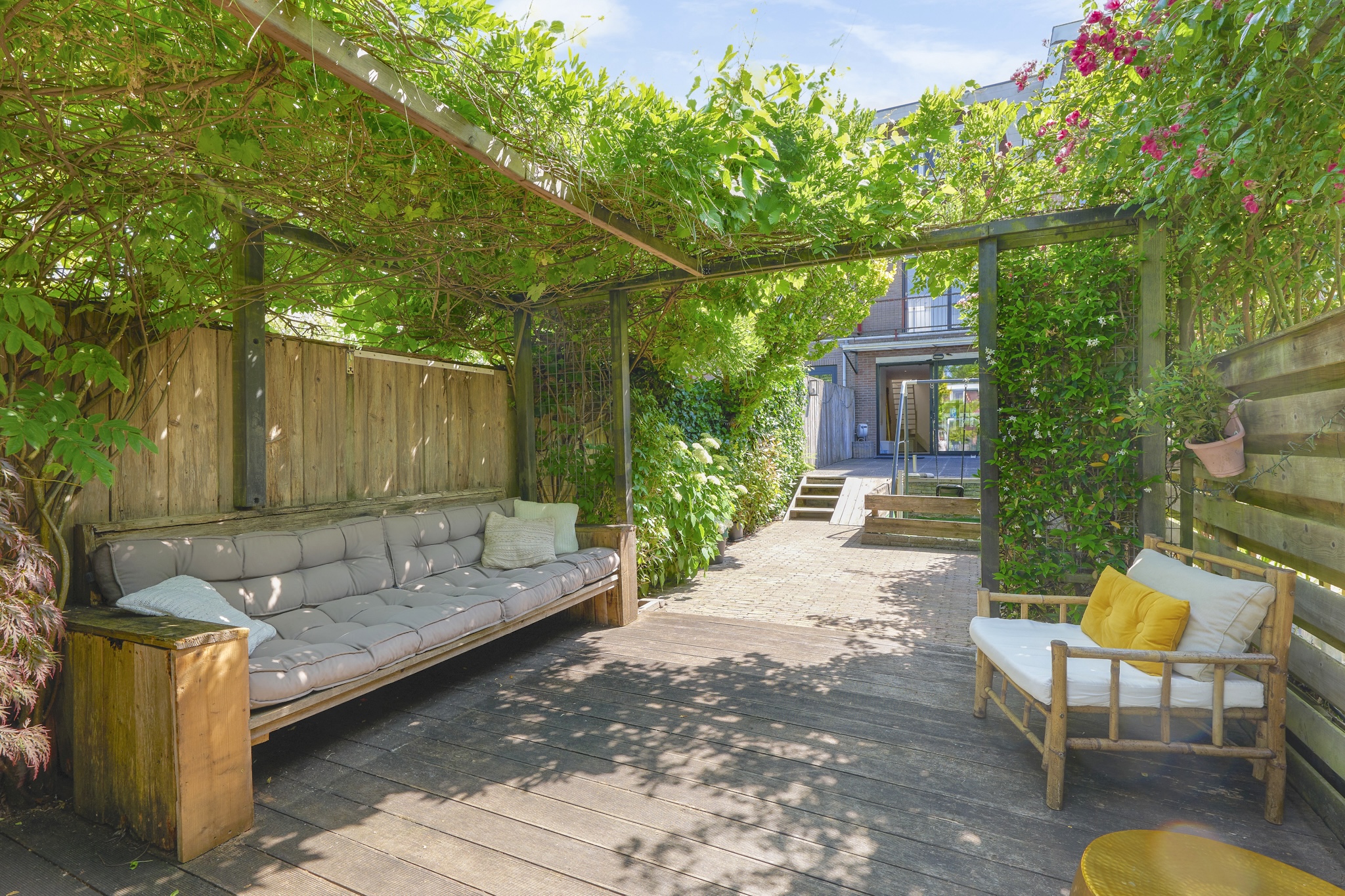 The garden is beautifully landscaped with a combination of terraces, borders, and lush planting. Thanks to its generous size, the garden offers plenty of opportunities – for children to play, for setting up an outdoor kitchen, or even creating a vegetable garden. The atmosphere is that of a green urban idyll: an oasis of peace and privacy in the heart of Amstelveen, where you can fully enjoy outdoor living.