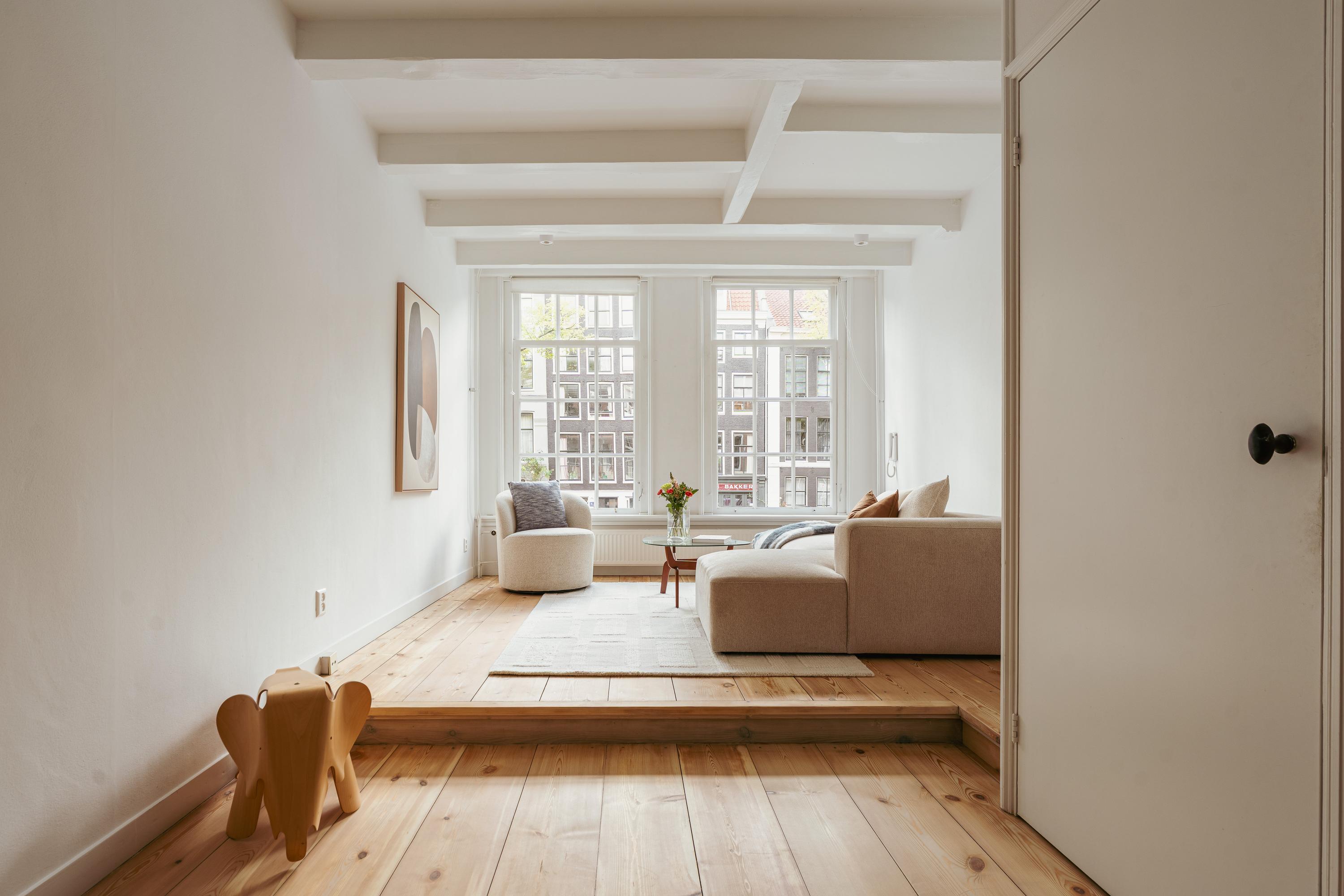 This canal house Amsterdam offers an understated sense of arrival. Located on the tranquil Bloemgracht in the heart of the Jordaan, this listed monument spans 118 m² across four residential levels and presents a fluid interplay of light, texture and water views—a rare combination in the city. The property introduces itself with a private entrance, leading into a kitchen-diner anchored by original features and ample cupboard space, with a welcoming seating area at the front capturing the vibrancy of the canal and sunlight throughout the day.