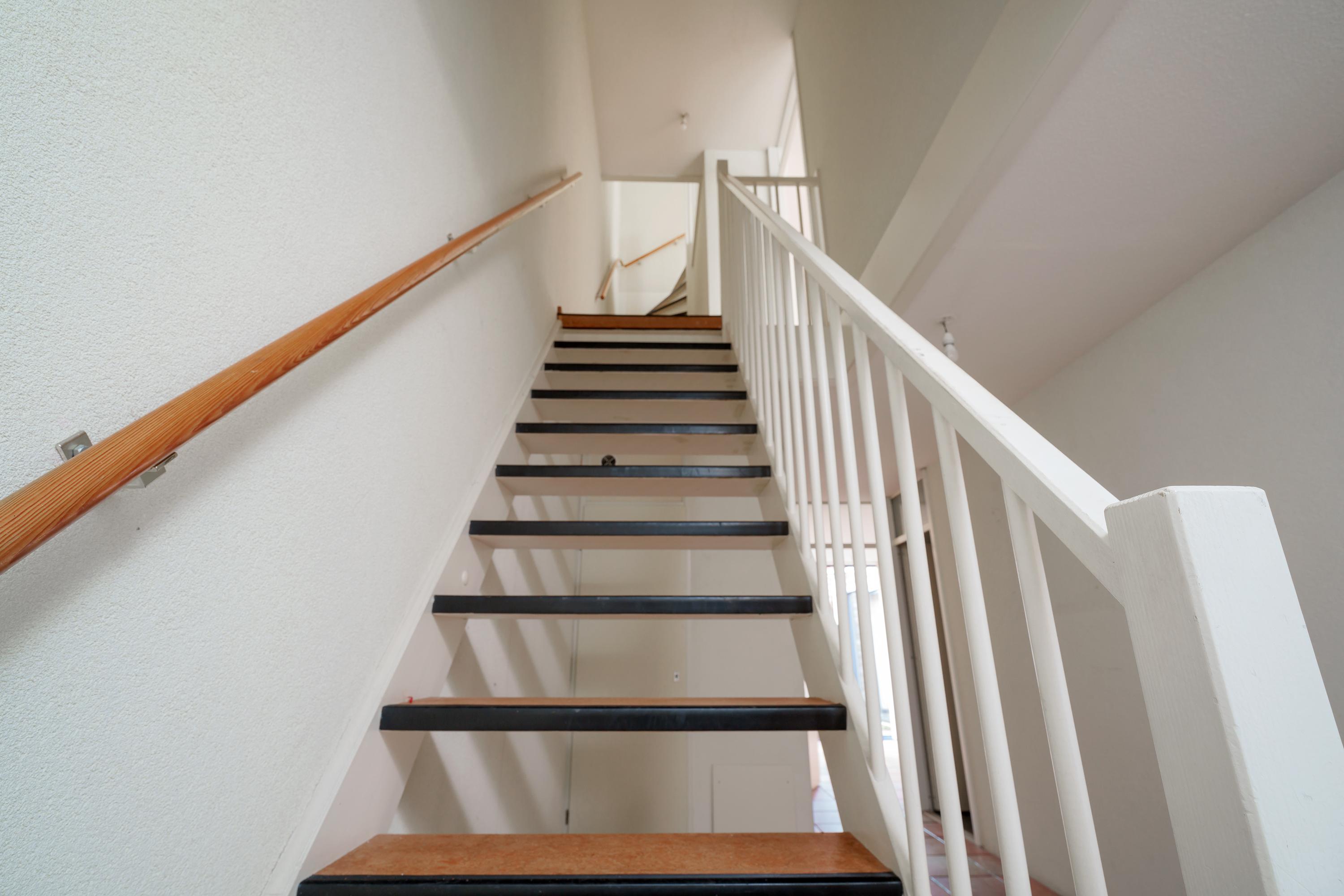 The top floor features three well-sized bedrooms. The front bedroom has access to a west-facing balcony. You will also find a spacious bathroom and the central heating room on this floor.