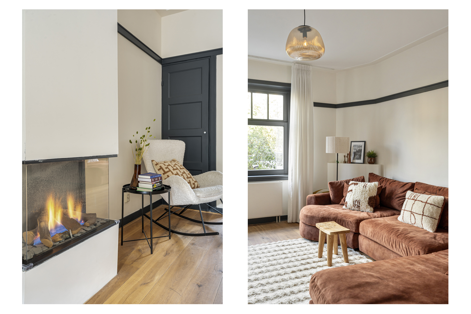 Upon entering through the private entrance, you arrive in the hallway, which provides access to the central hall and the various rooms. To the right, you will find the spacious living room, a bright and inviting space featuring large windows at the front and French doors at the rear. The living room offers ample space for both a comfortable seating and dining area and is equipped with a charming gas fireplace, adding warmth and atmosphere. Adjoining the living room is the open-plan kitchen, which truly forms the heart of the home. The kitchen features a generous island with a Quooker tap and an integrated climate-controlled wine cabinet. The island is perfectly suited for placing a dining table, creating a natural and sociable connection between cooking and dining. The kitchen is further equipped with a five-burner gas stove, combi-oven, separate oven, dishwasher, and extractor hood. Thanks to the French doors and large windows, the kitchen enjoys a direct connection to the garden and offers a pleasant view outside. When the doors are opened, the covered terrace becomes an extension of the kitchen, creating a seamless indoor-outdoor living experience. The property comprises three bedrooms. The master bedroom is generously sized and, like the hallway, is fitted with air conditioning. The additional bedrooms are well-suited as children’s rooms, a home office, or guest rooms. Centrally located within the property is a spacious hall featuring a custom-built wall with open shelving, functioning as a stylish bookcase and offering ample space for books, art, and decorative objects. From this hall, all bedrooms, the bathroom, and the separate toilet are accessible. The bathroom is fitted with a bathtub and washbasin.