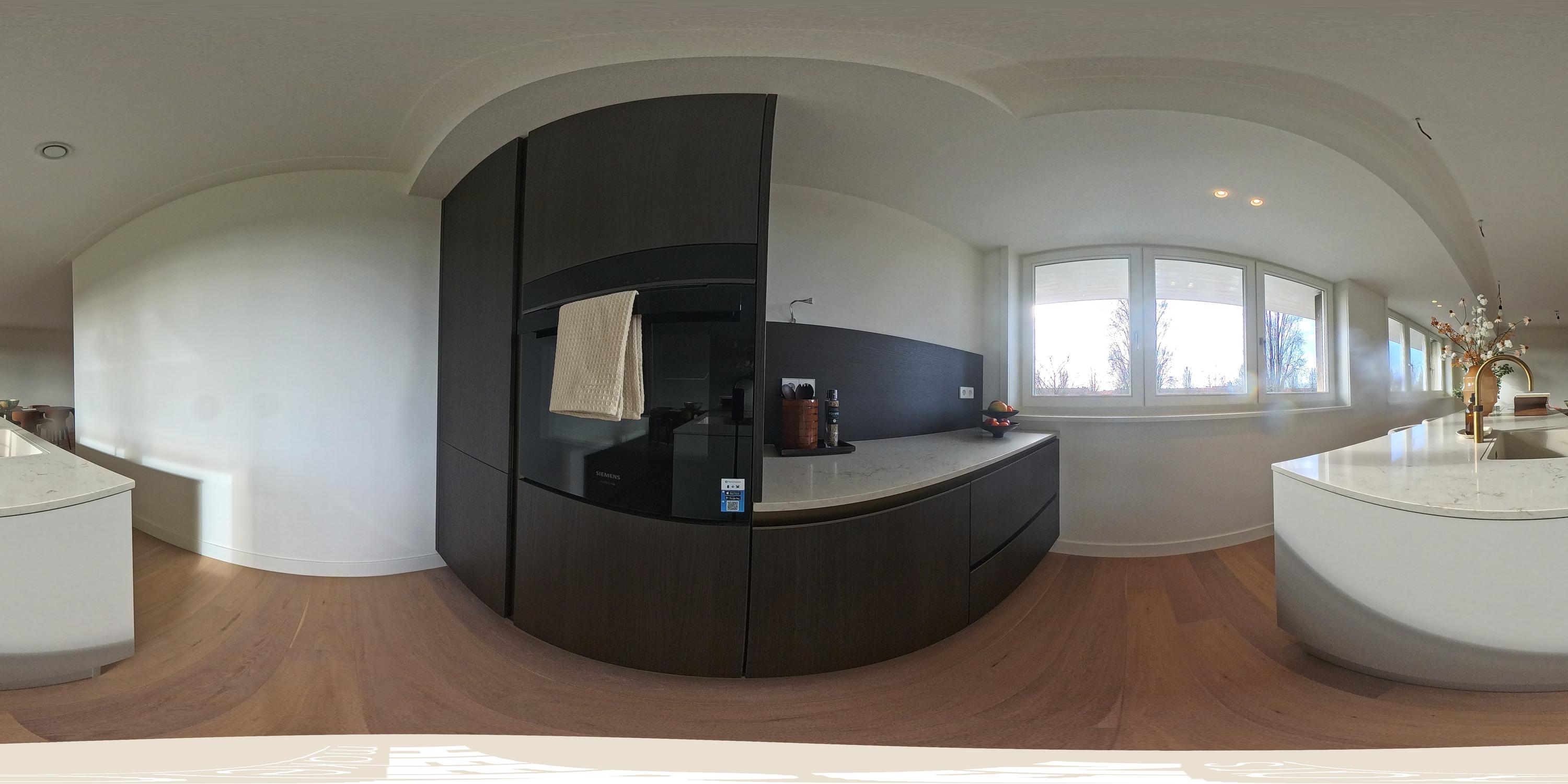 The open-plan kitchen is a true eye-catcher, fitted with high-quality built-in appliances: an induction hob with integrated extractor, dishwasher, combi-oven and Quooker tap. The combination of sleek handleless cabinetry and warm wooden accents gives this floor a modern yet inviting feel. From the living room you have access to a sunny southeast-facing balcony, perfect for a morning coffee or an afternoon drink in the sun.