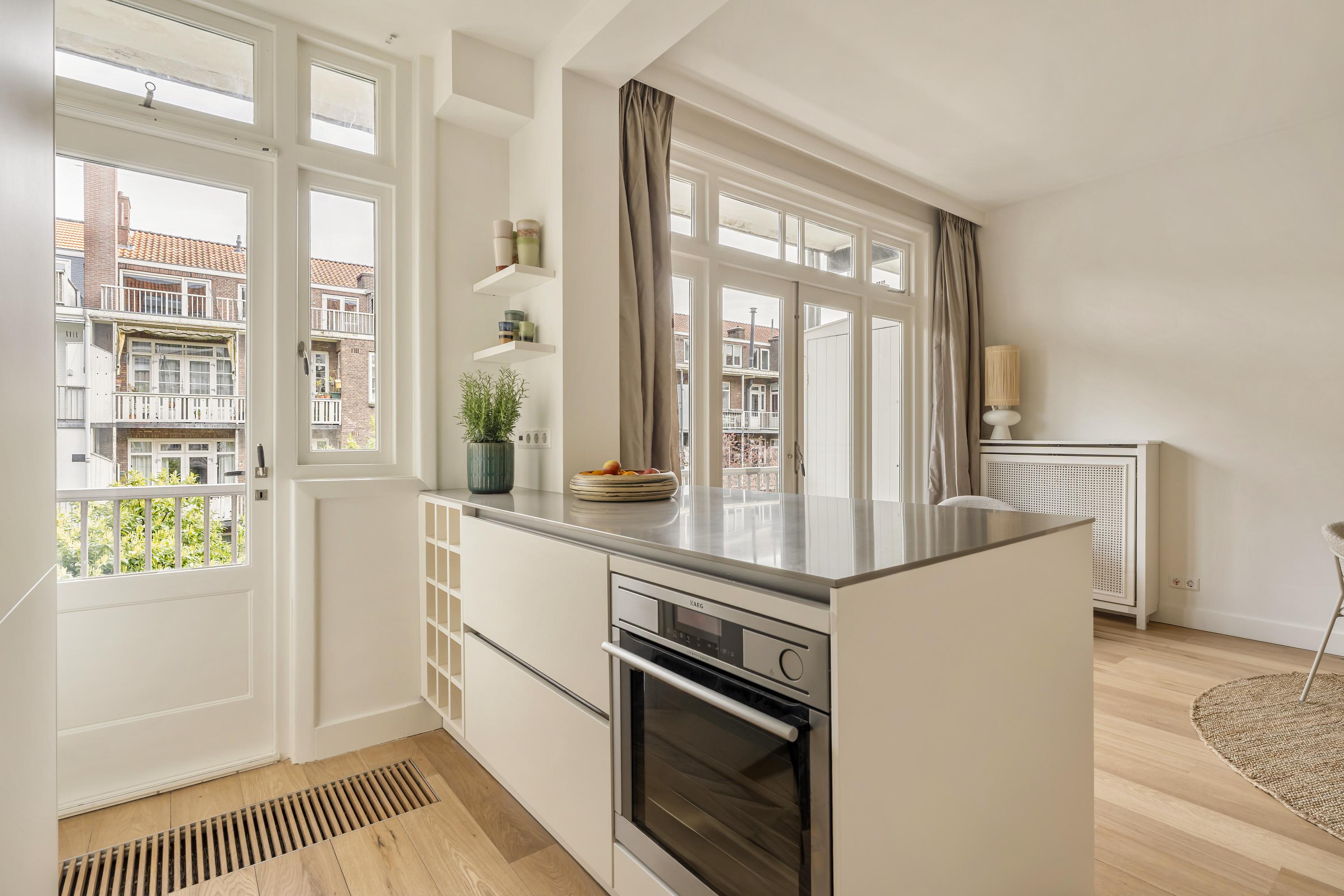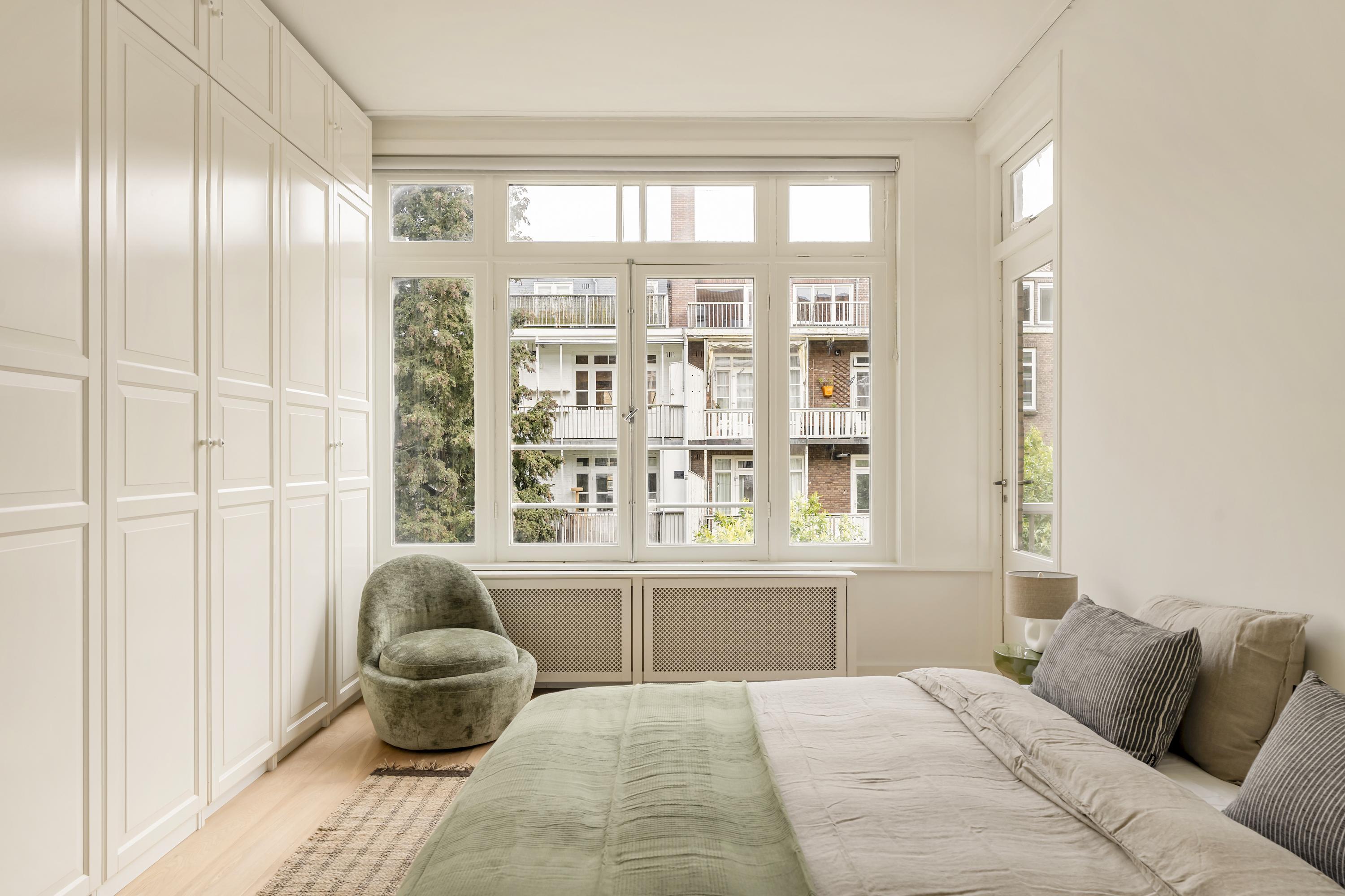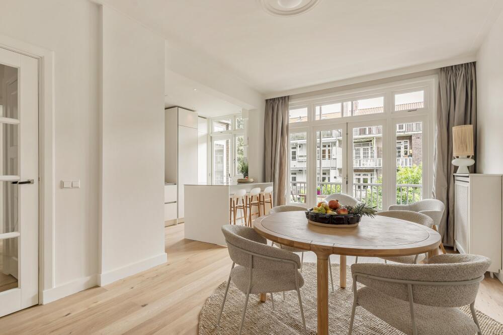 Apartment Amsterdam Zuid brings together period charm and contemporary comfort in a coveted Amsterdam-Zuid address. This residence spans approximately 112 m², offering three well-proportioned bedrooms and a spacious living area infused with character. The apartment’s heritage features, including original sliding doors, custom cabinetry, and iconic bay windows, are complemented by thoughtful renovations such as floor insulation and double glazing.