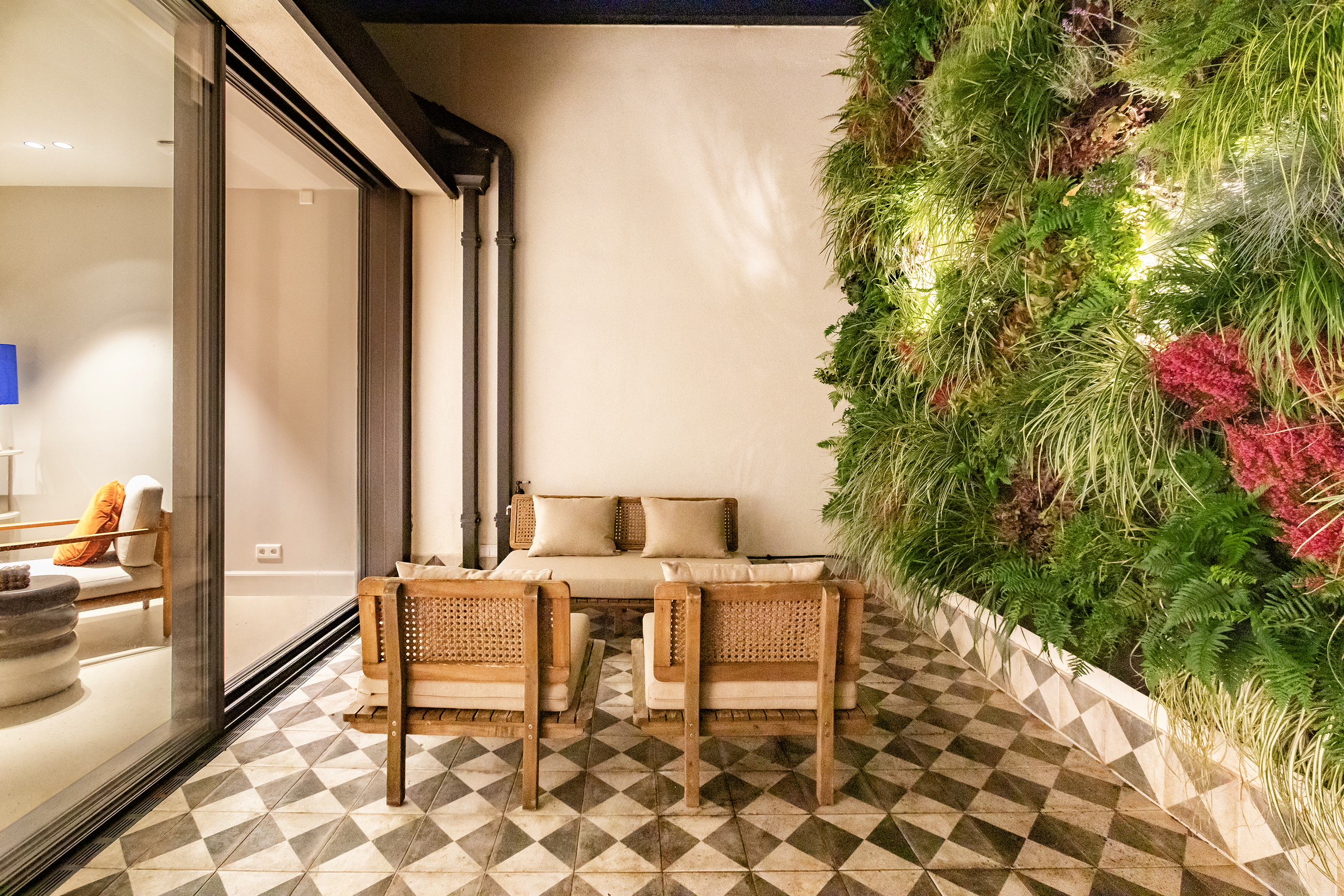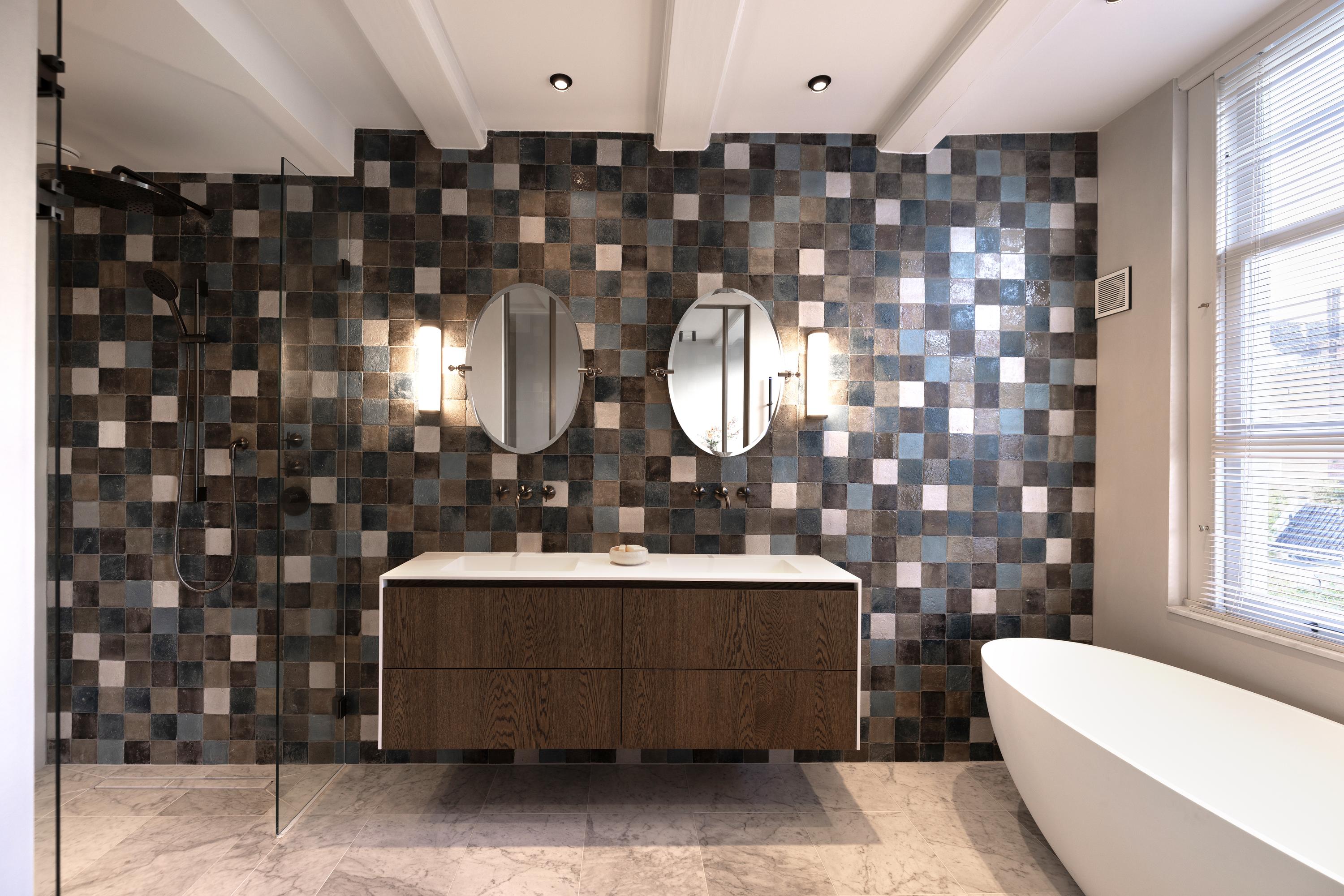 - High-end bathrooms with original tiling, microcement and Dornbracht taps