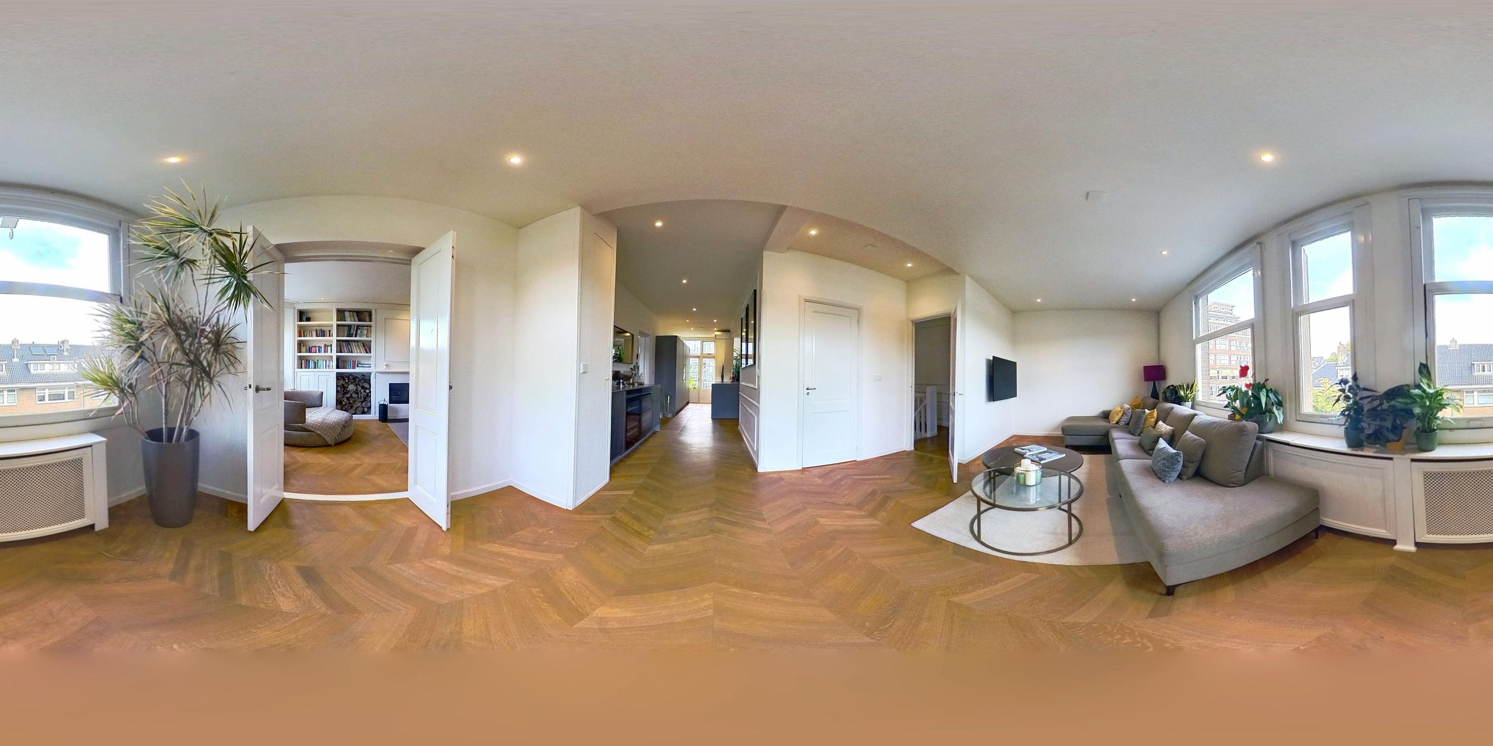 Apartment Amsterdam Zuid is offered for sale on Rubensstraat, spanning approximately 238m² over three thoughtfully designed levels. This spacious family apartment was renovated in 2020, with a further upgrade to the top floor and windows in 2023. The residence is defined by clean architectural lines, well-proportioned spaces, and a rare sense of privacy for its central Amsterdam setting.