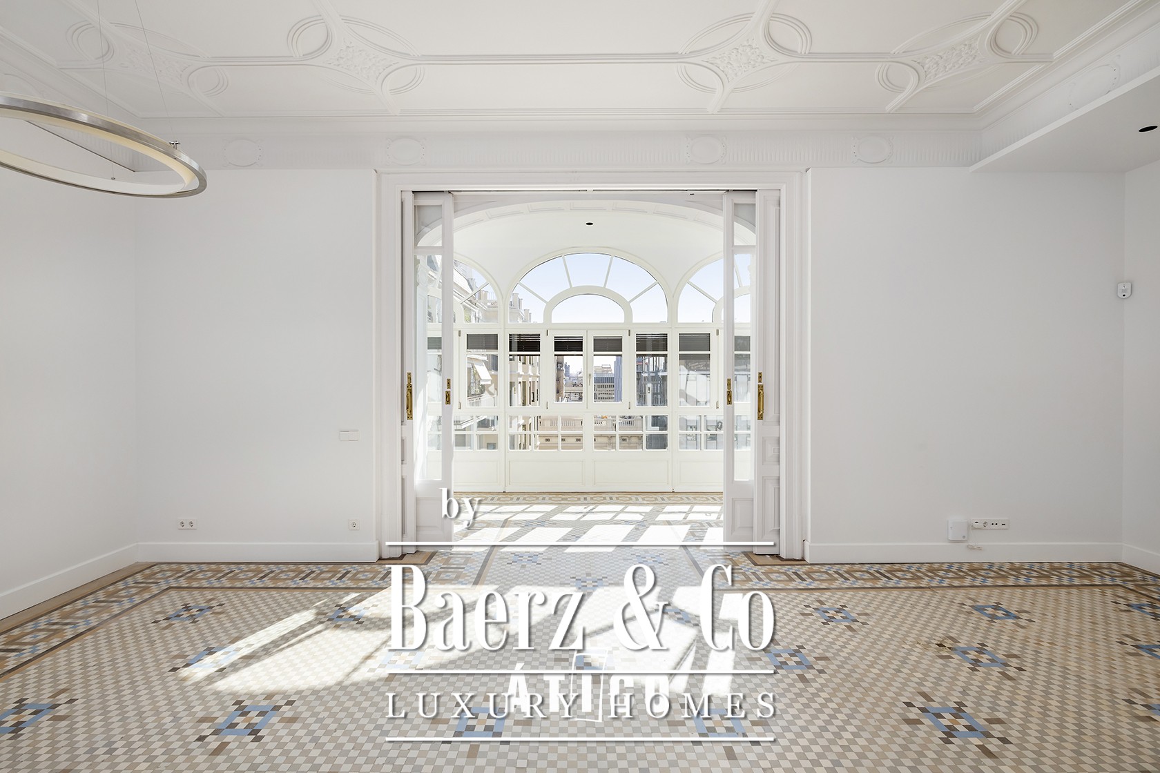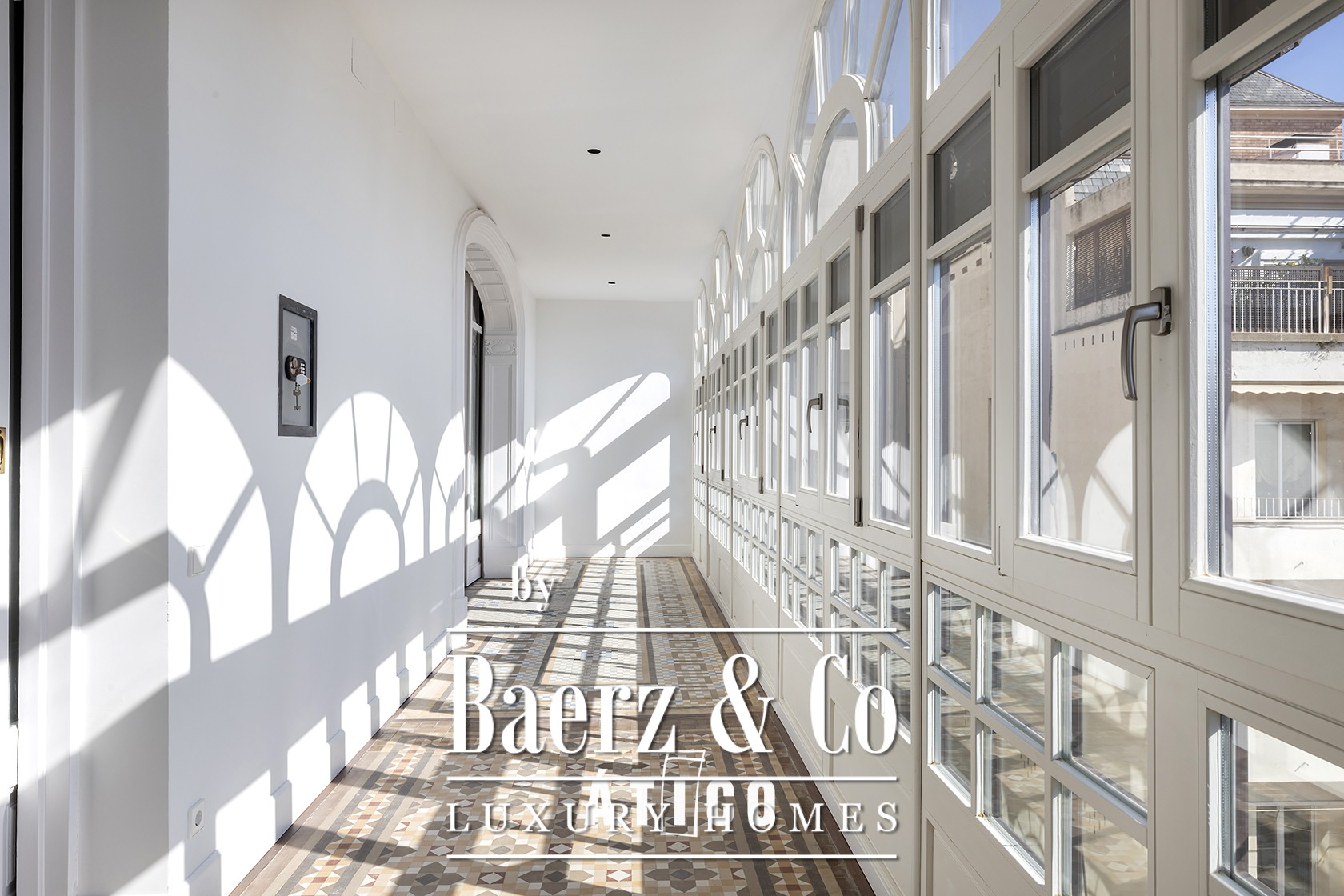 The apartment has been completely renovated, respecting its original character with details such as restored hydraulic floors and 3.5-meter-high ceiling moldings, which provide a feeling of spaciousness and elegance. Some areas have Noia flooring, which gives it an exclusive touch. The restored gallery and windows ensure an excellent entry of natural light throughout the day, making every space in the home warm and welcoming.
