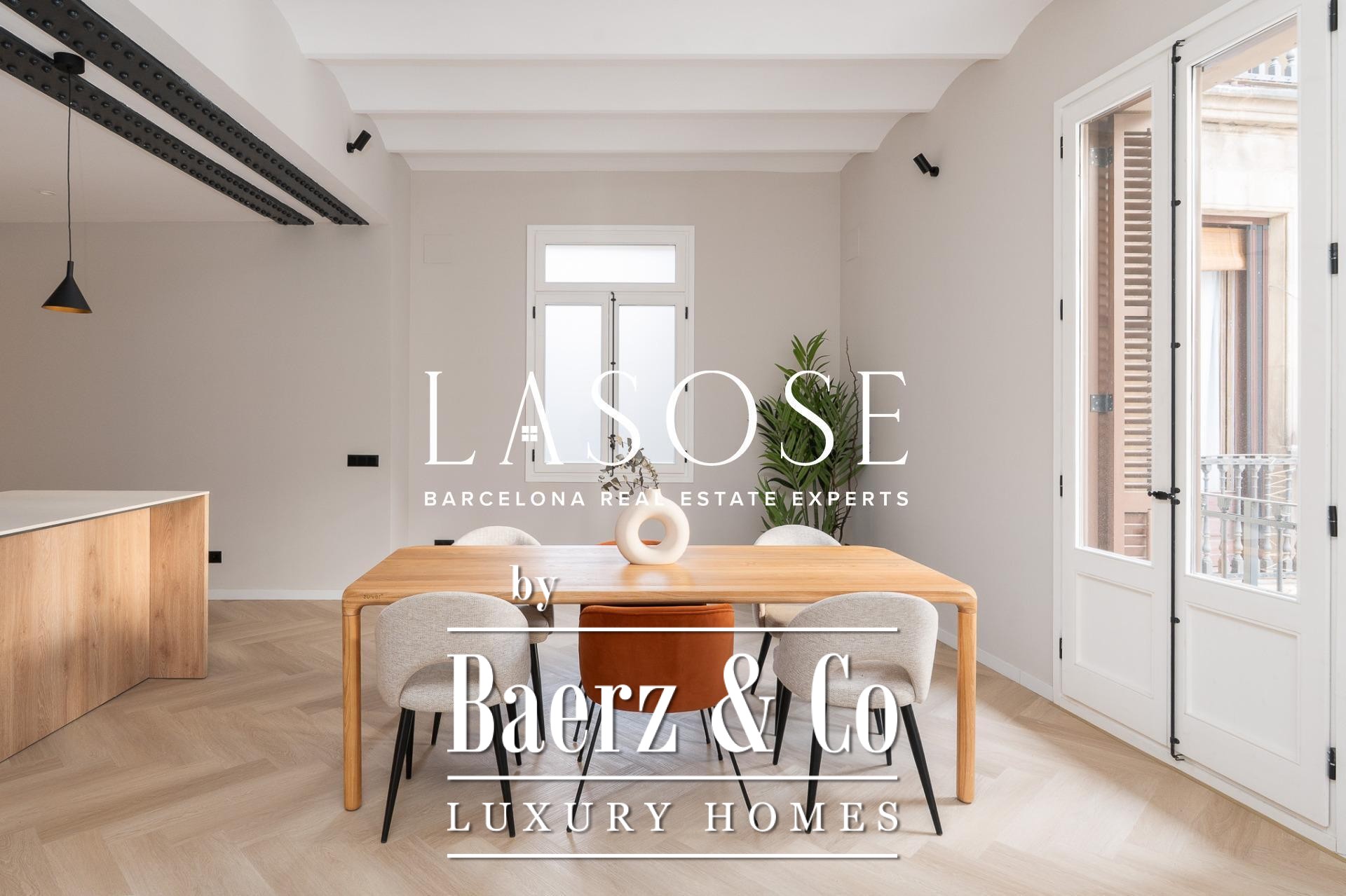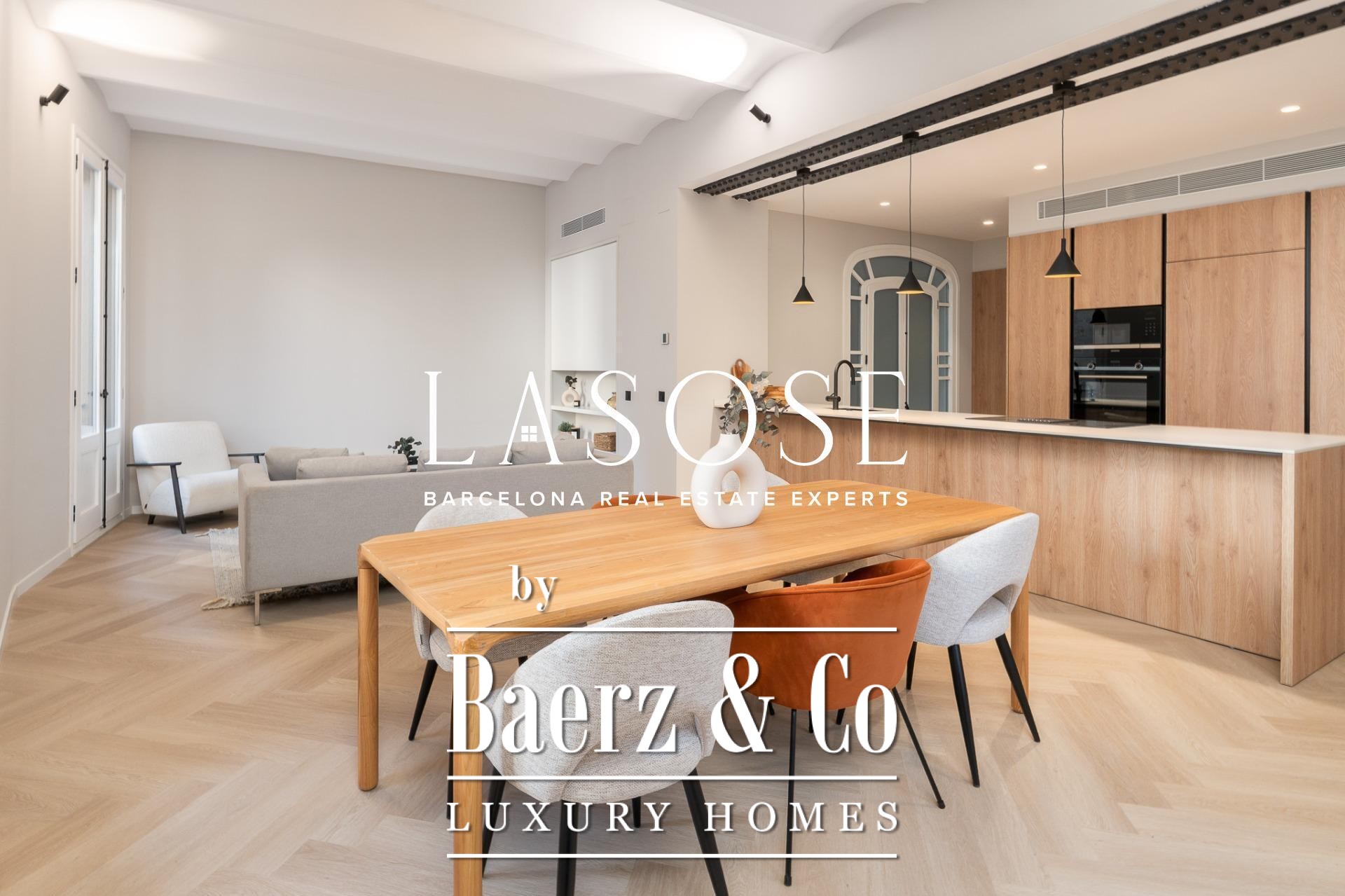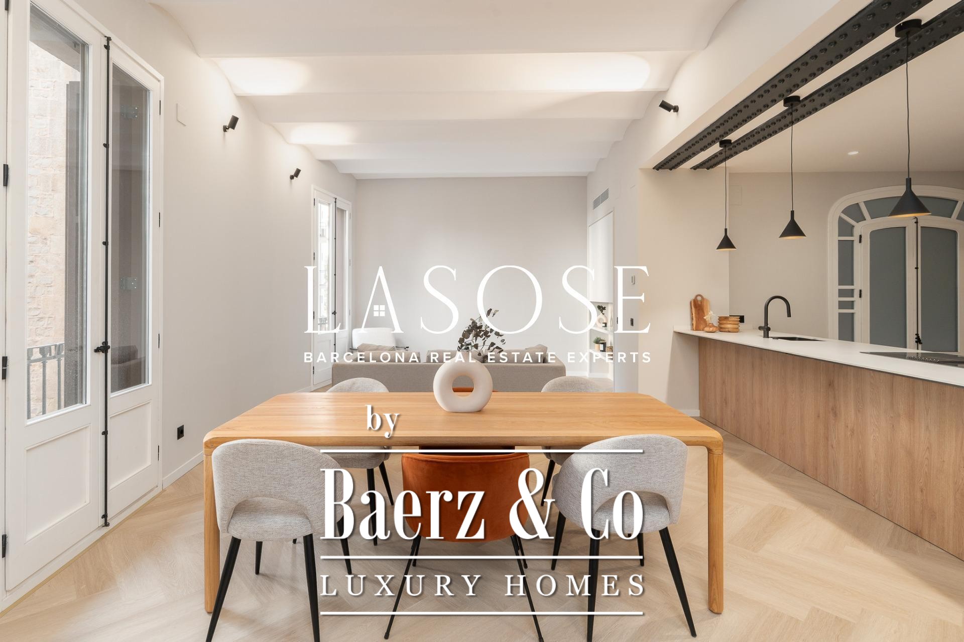 Apartment Barcelona blends the authenticity of a classic building with the refinement of meticulous renovation, positioned in the city’s historic center near the Cathedral and the Palau de la Música. This apartment, offering 140 m² of built space and a living area of 119.72 m², exemplifies thoughtful restoration using high quality materials while preserving timeless features such as the Catalan vault and wooden shutters.