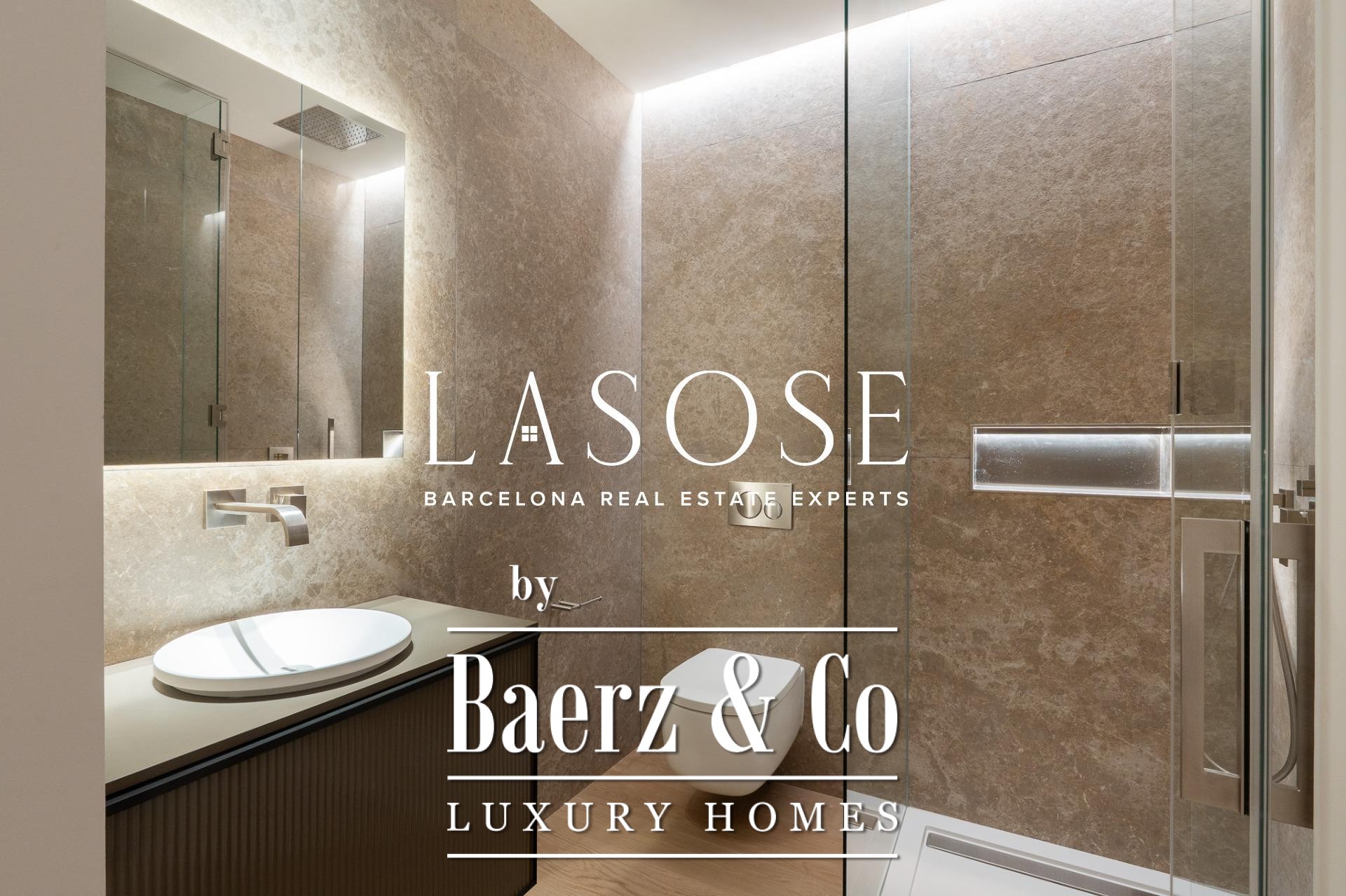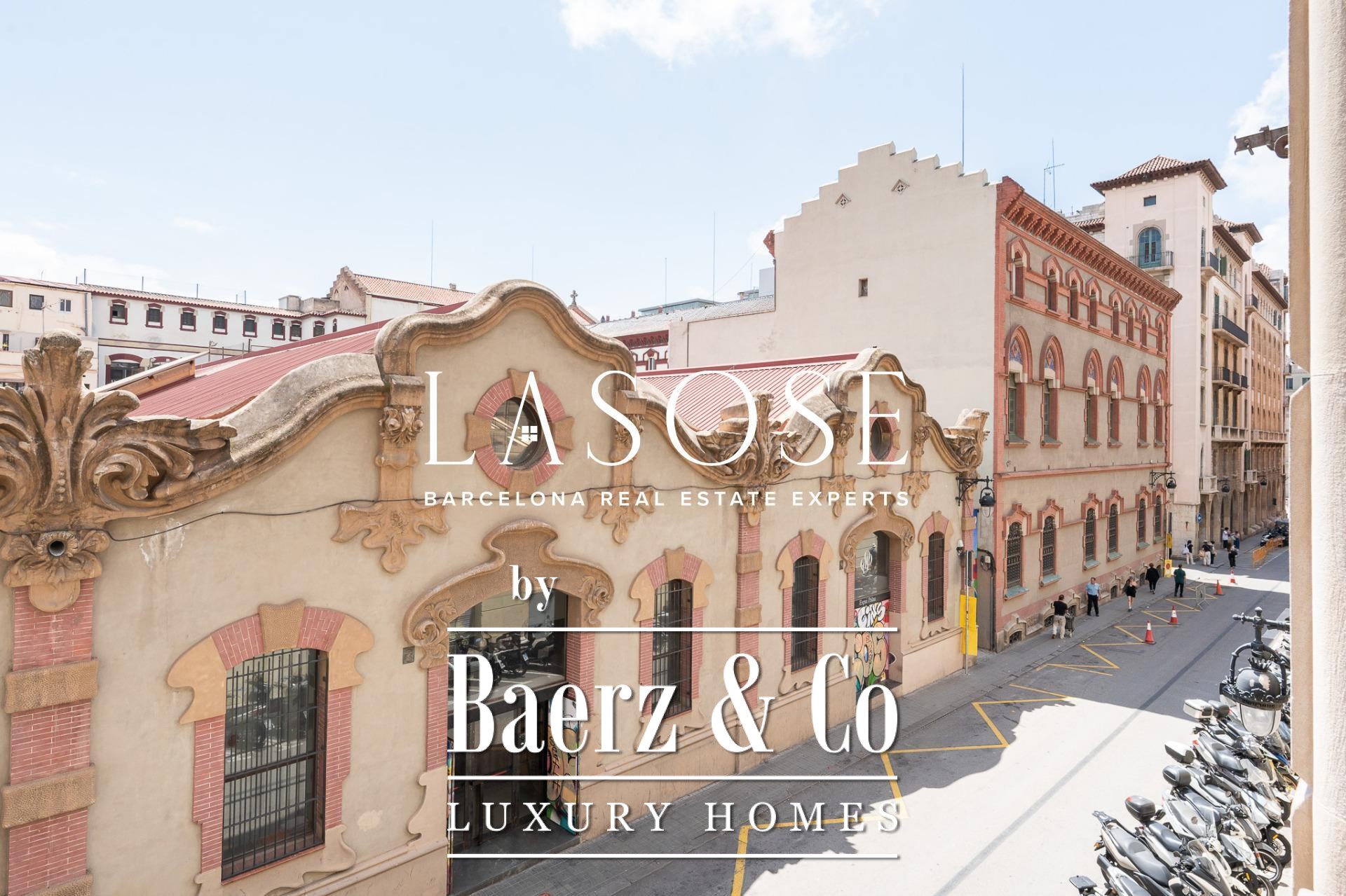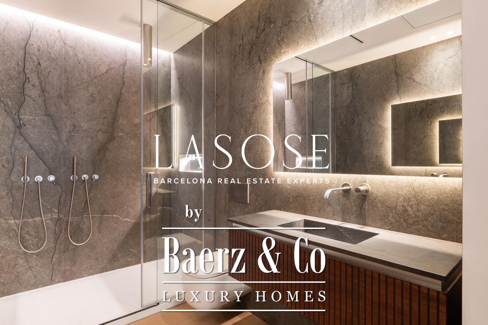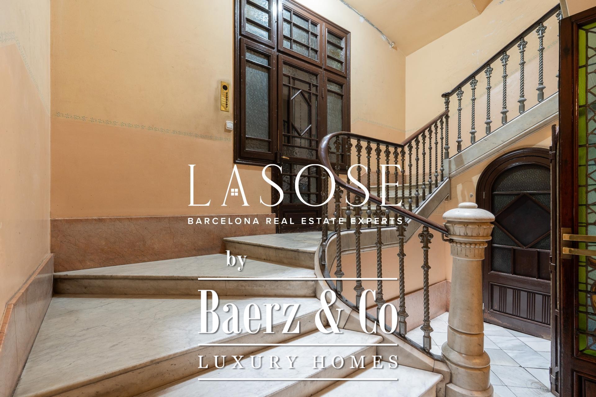 LASOSE presents this magnificent 347 m² property, completely renovated, which combines the charm of a classic estate with the comfort and sophistication of contemporary design. Located in an elegant regal estate dating from 1885, with elevator and in excellent condition, this property offers a unique experience in one of the most vibrant areas of the city.. . Located on the interfloor and with ceilings of 3.2 meters high, the apartment enjoys an exceptional luminosity thanks to its views to two streets and its southeast orientation. From the entrance, it surprises with a spectacular welcome area adorned with modernist details that make the difference.. . The day area consists of a large living-dining room with open kitchen, equipped with a central island space for six diners, ideal for meetings and dinners. This space is complemented by an elegant office, a guest toilet and a practical laundry area with washing machine, dryer and storage cabinets.. . The jewel of the home is its impressive 60 m² master suite, which