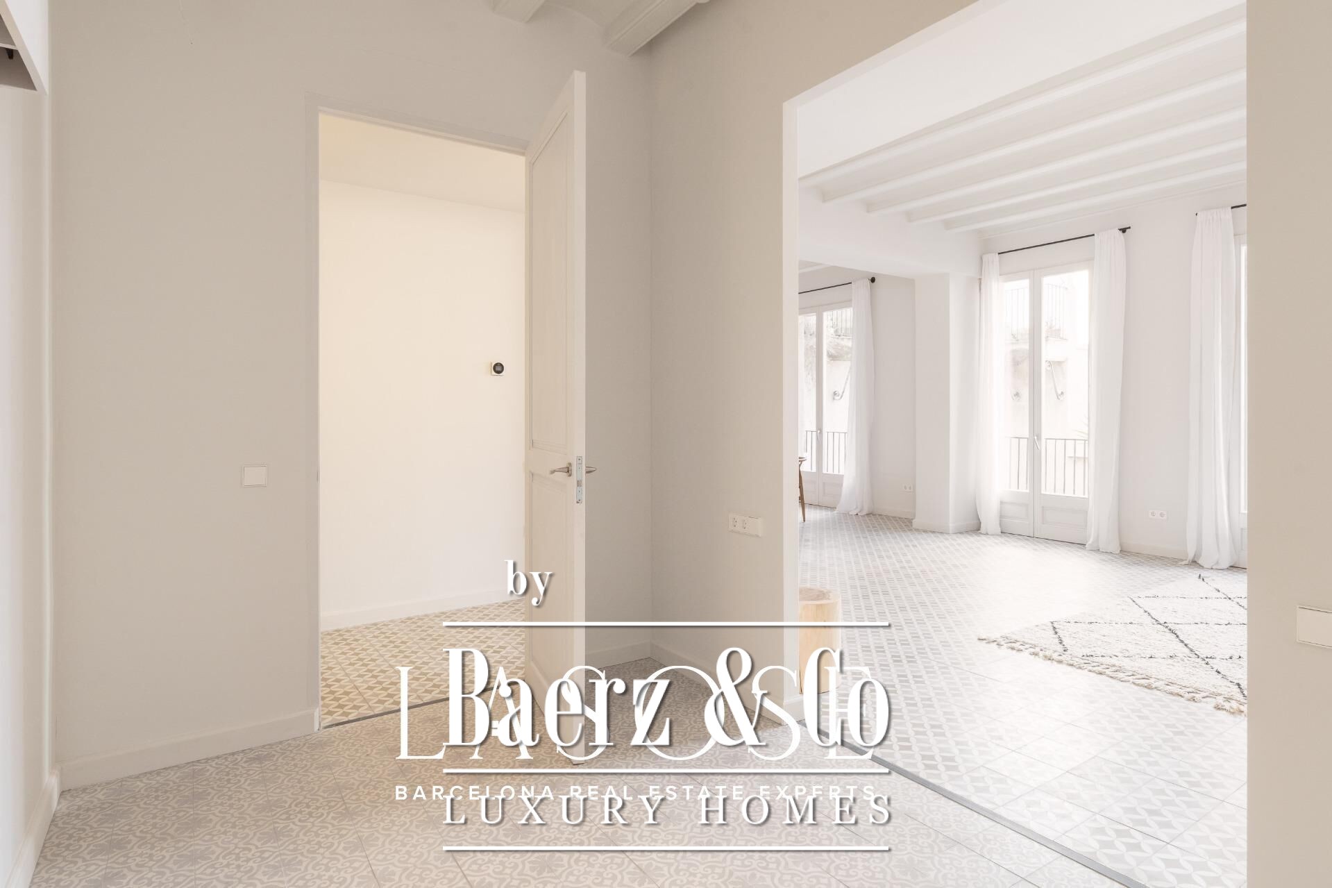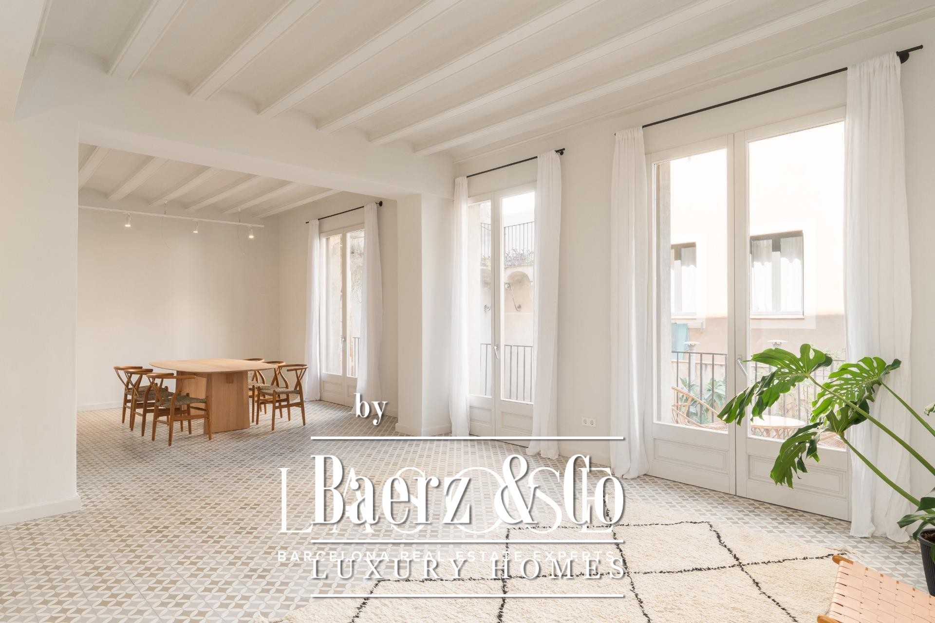 Stylish Renovated Home in the Heart of El Born – 133 m² Full of Charm and Modernity. . Discover this spectacular 133 m² apartment, fully renovated and located in the northern part of the iconic 'El Born district', near Eixample Dret. A unique opportunity to live in one of Barcelona’s most sought-after areas, where history and contemporary lifestyle blend seamlessly. . . Key Features: . - 2 spacious bedrooms with en-suite bathrooms, maximum privacy and comfort. . - Versatile third room, perfect as a bedroom, home office, or workspace. . - Bright and inviting living-dining area, opens to a modern open-concept kitchen with high-end integrated appliances. . - Exposed wooden beams and original details, blending classic charm with top-quality