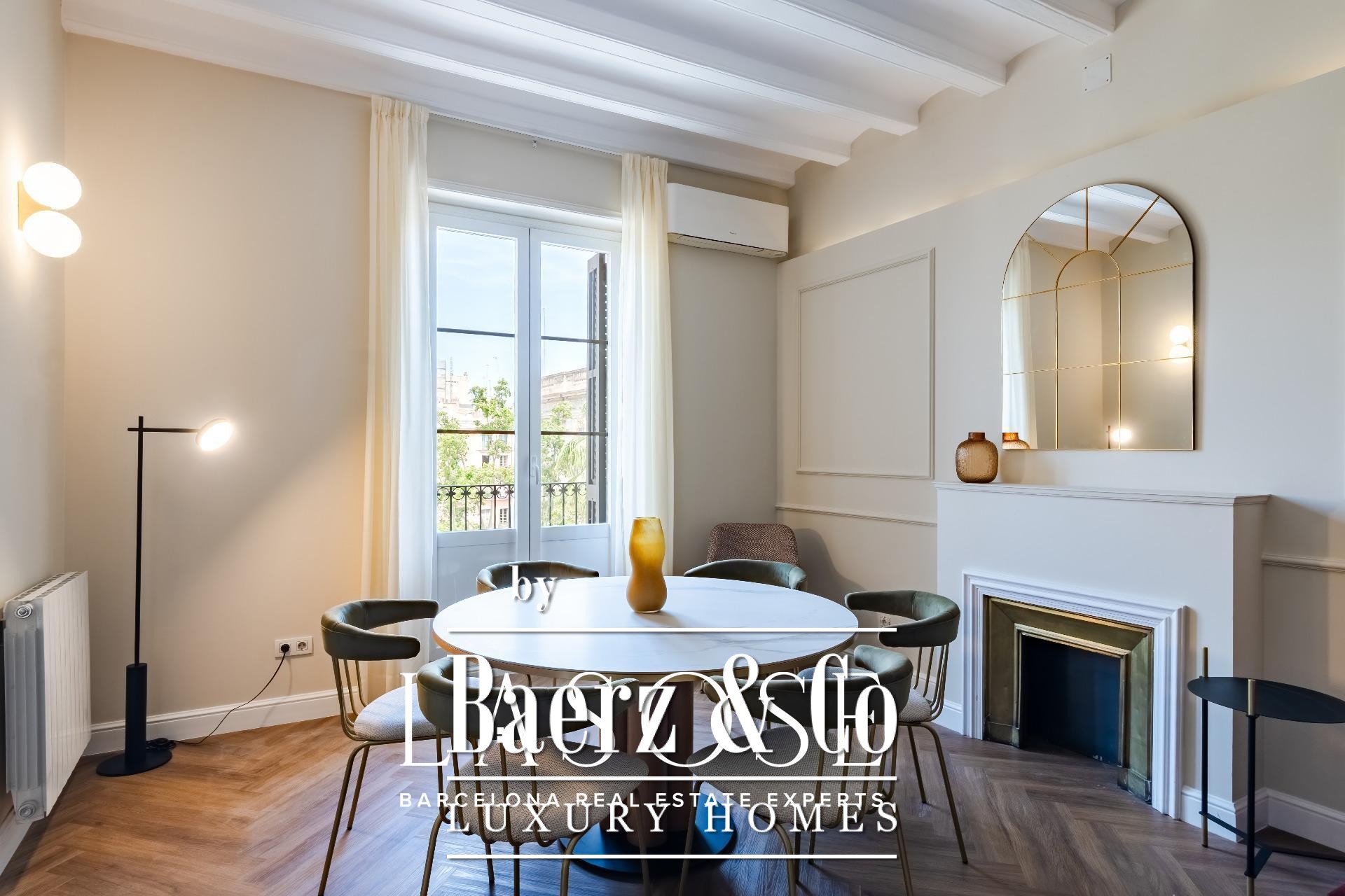 Lasose presents this bright 138 m² apartment, located on the third floor of a listed historic building, which represents a unique opportunity to live in a privileged enclave in the center of Barcelona, where history and modern comfort meet.. . The building, located on Calle Isabel II, is part of the 19th-century urban development of Portal de Mar and Pla de Palau. This building is not only notable for its architectural value, but also for its cultural significance: it was Picasso's first home in Barcelona.. . Layout and main features:. . 3 double bedrooms and 2 full bathrooms. . Spacious living-dining room with *wooden beamed ceilings*, 3 meters high, which enhance the feeling of spaciousness and light. . 5.60 m² balcony overlooking one of the most emblematic areas of the city. . Separate kitchen, fully equipped with high-end