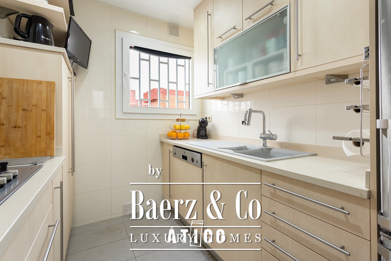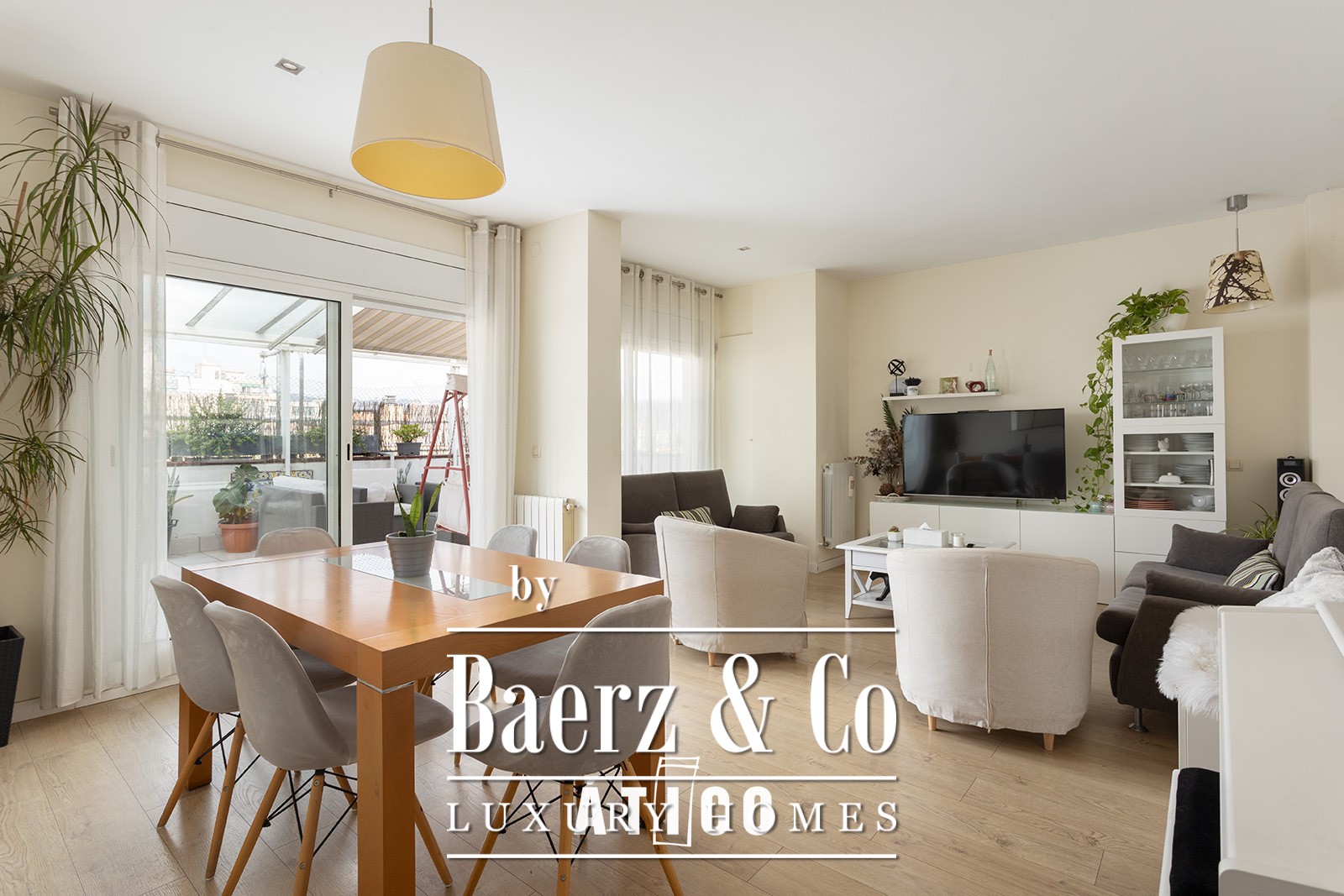 This penthouse, located in the Guinardó neighborhood (Barcelona), offers spacious, bright living spaces on a very quiet street. The home has 85 square meters of interior space and a 60-square-meter private terrace, providing a privileged outdoor space for enjoying the sun and unobstructed views of the city.