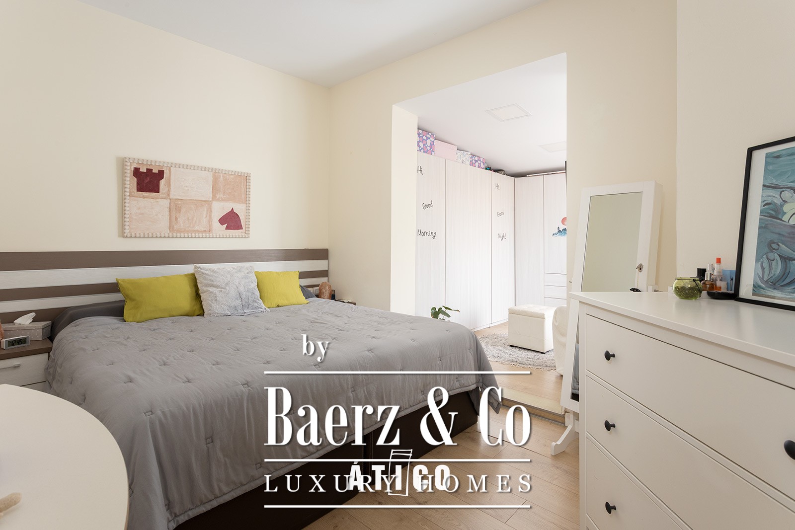 The apartment has three spacious and bright bedrooms, one of which has a walk-in closet, adding functionality and comfort to the layout. The large living-dining room opens directly onto the terrace, creating a visual and spatial continuity that amplifies the feeling of spaciousness and light. All rooms are exterior and enjoy natural light throughout the day.