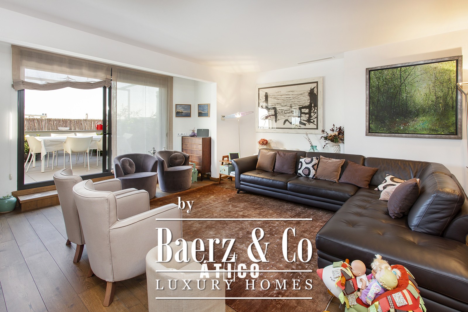 Spectacular 290 m penthouse on Via Augusta. Sea views from the living room and Tibidabo from the kitchen and most of the rooms. If anything stands out about this home, it's that every room is completely exterior. It also has unusually high ceilings for a penthouse. And it's not just street-facing, it also enjoys unbeatable views. The floor plan is 230 m and 60 m distributed across several terraces. From the living room, you access a beautiful terrace with views. And from the master bedroom, you access another terrace facing the sea. In total, it has four bedrooms and three full bathrooms (two of them en suite). One of the bedrooms is accessible via a staircase that leads to the upper floor, which also has a terrace. The kitchen has a central island and a separate utility room with a guest toilet. The apartment is in perfect condition. Two parking spaces are included in the price in a neighboring building.