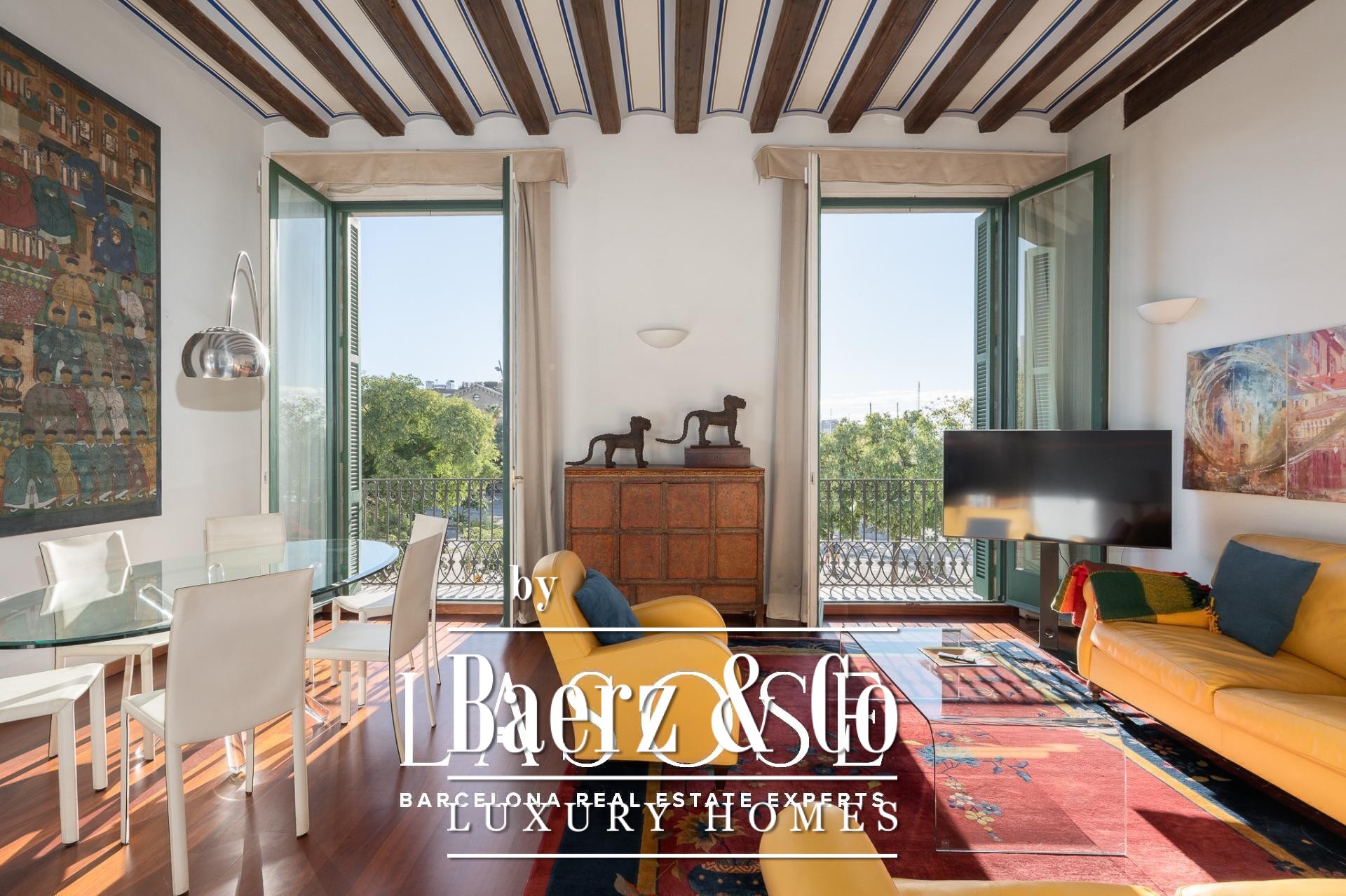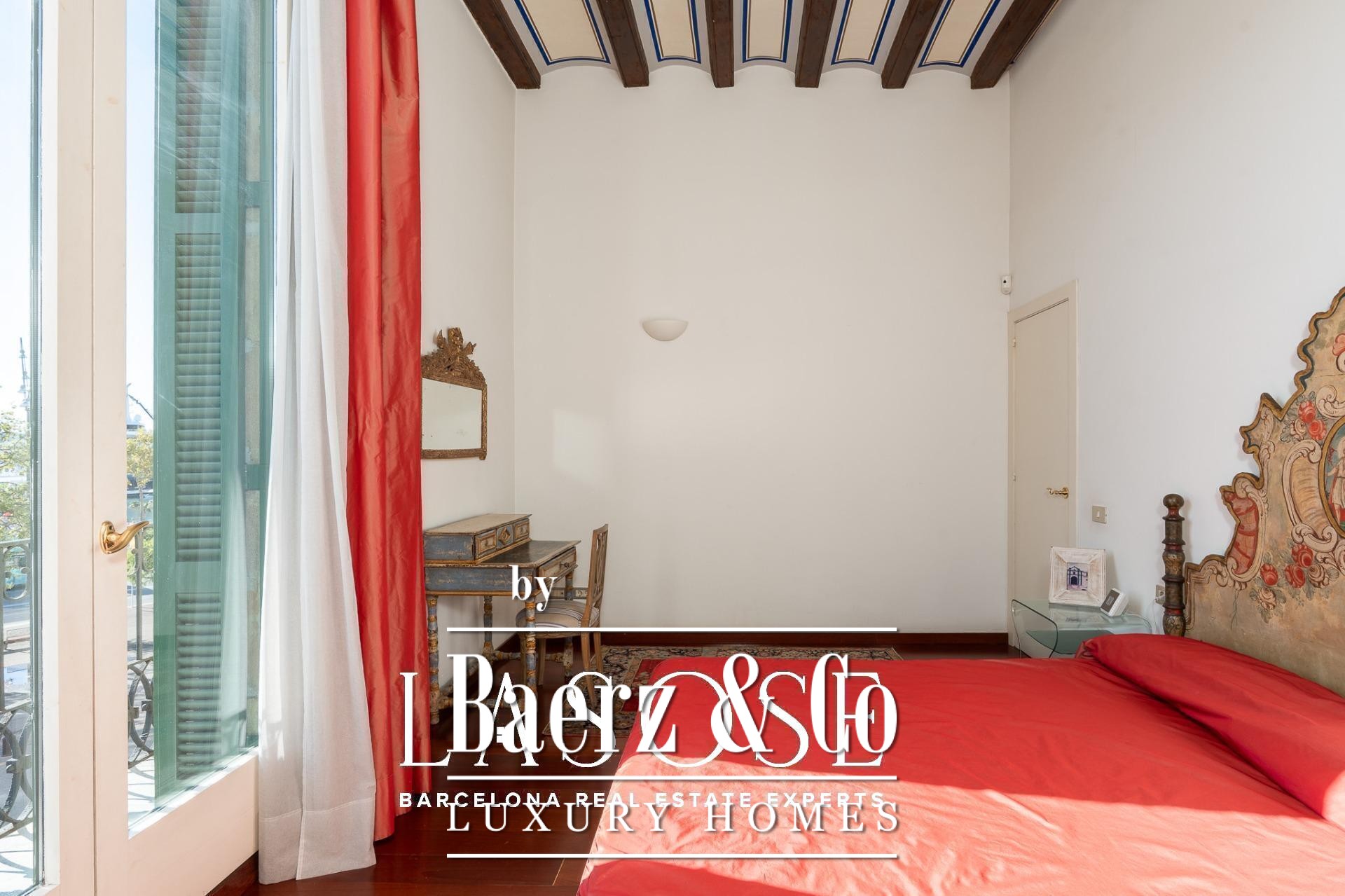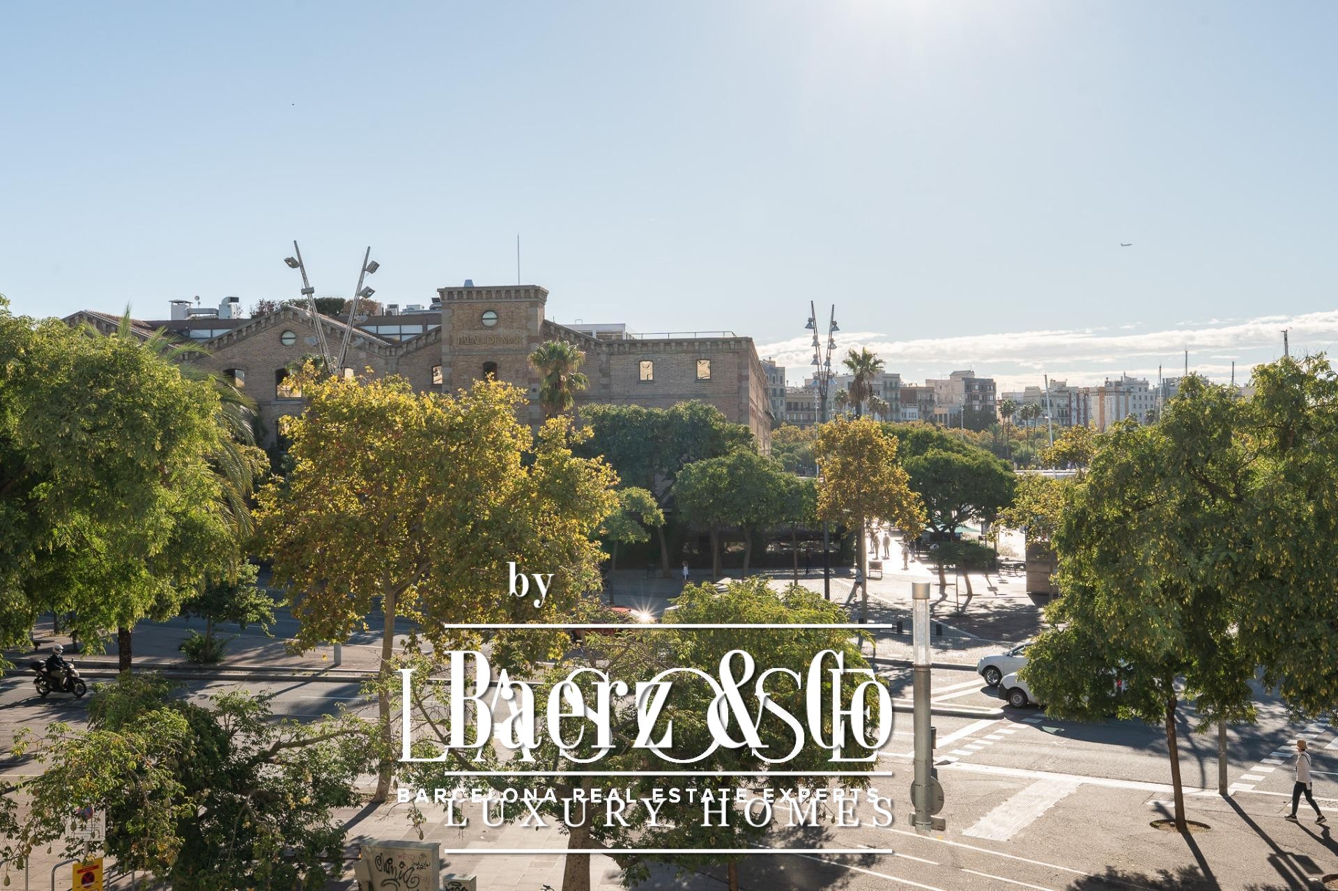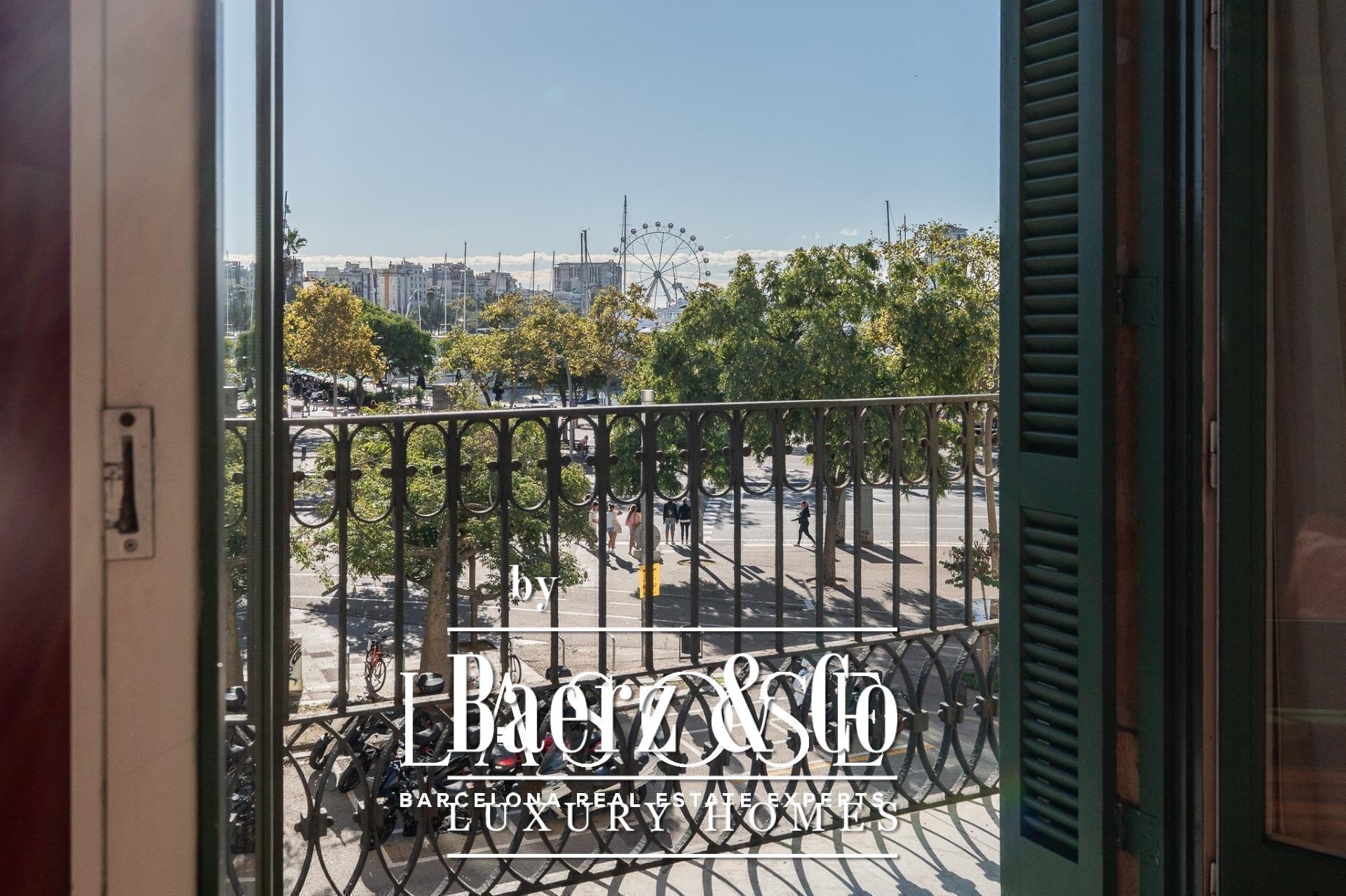 Apartment Barcelona sets its stage within a historic building overlooking the city’s marina. This apartment, spanning 122 m², occupies a distinguished address on Carrer Llauder and presents a rare interplay of heritage and contemporary living. Step inside to a volume defined by 3.8-meter ceilings, exposed wooden beams, and Catalan vaulted ceilings with hand-painted details. Wrought-iron balconies frame the open sea and the greenery of Las Ramblas de Mar, filling each room with Mediterranean light.