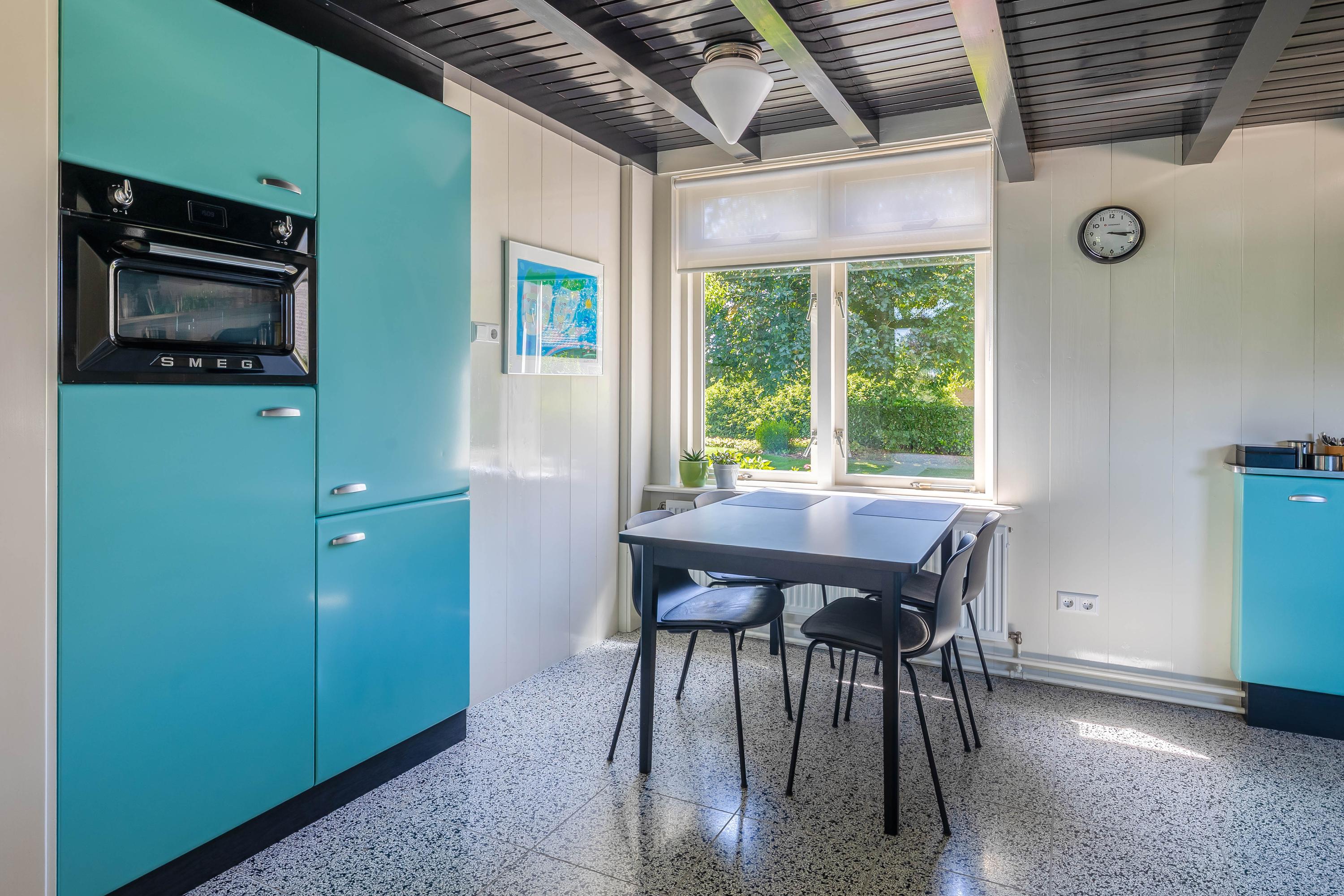 Outside, the property is an oasis of peace and quiet. The surrounding garden is neatly landscaped, green and well maintained, with several seating areas, large lawns, trees, borders, a vegetable garden and charming corners. Thanks to the position of the plot, there are no immediate neighbours, offering plenty of privacy and beautiful views over water and meadowland. The meadow on the eastern side may no longer be built on, ensuring unobstructed views well into the future.