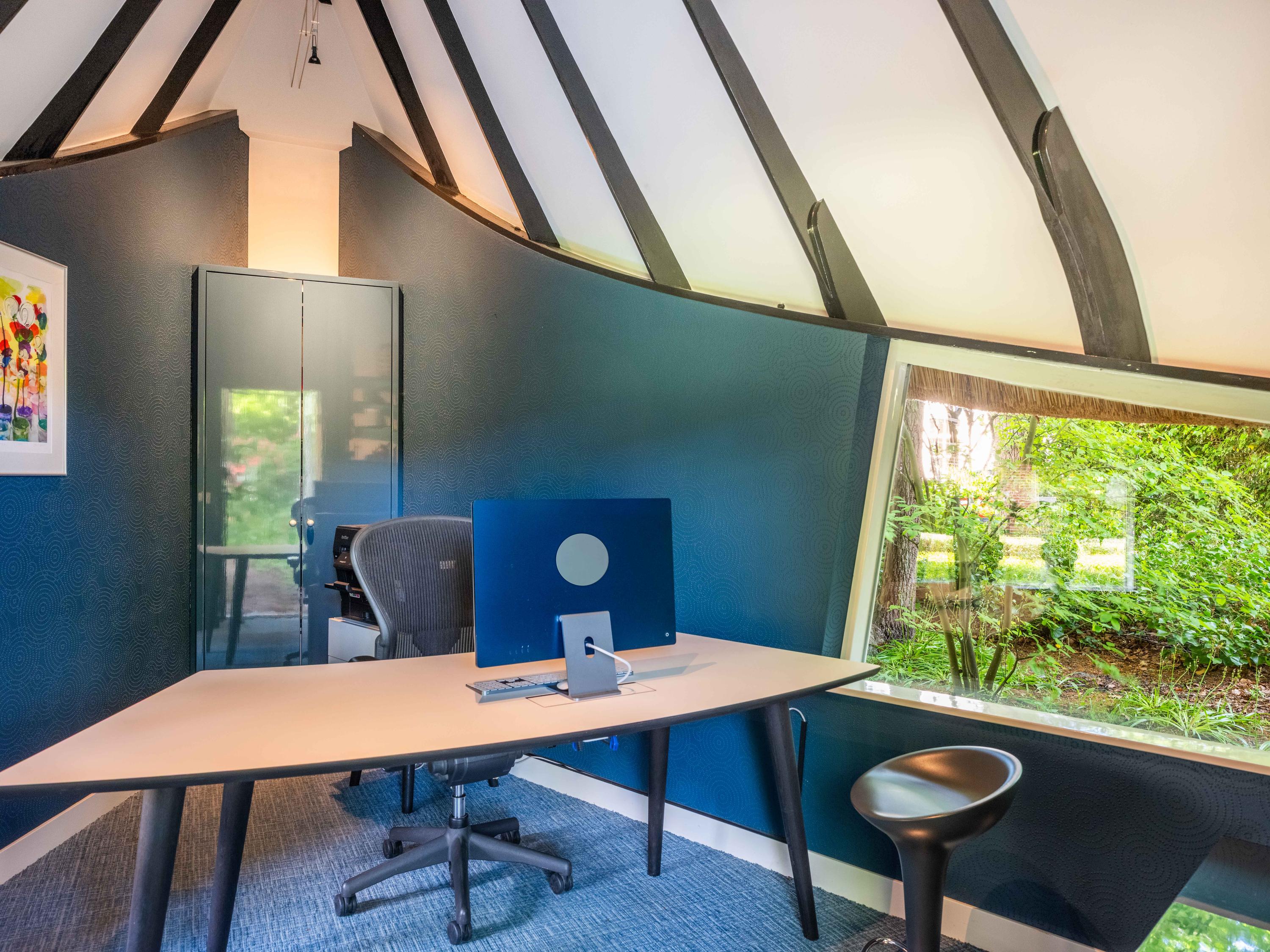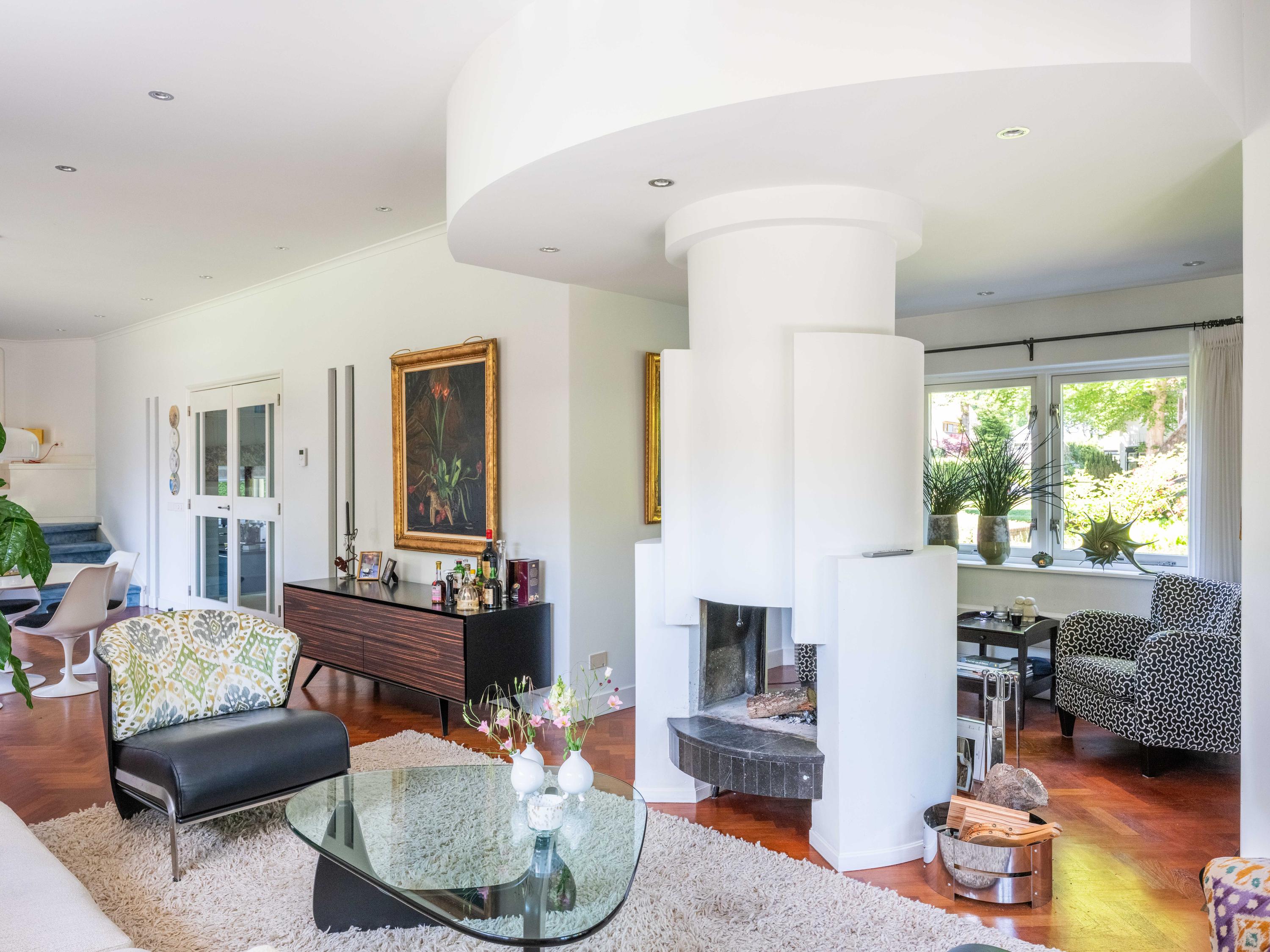 The 2,720 m² plot is enveloped in flowering borders and monumental trees, with a detached garden cottage and entrance house—reminiscent of a moored sloop—both restored in period style. This villa for sale in Bergen invites a life of quiet dignity, architectural provenance, and seclusion, in harmony with the heritage of Park Meerwijk.