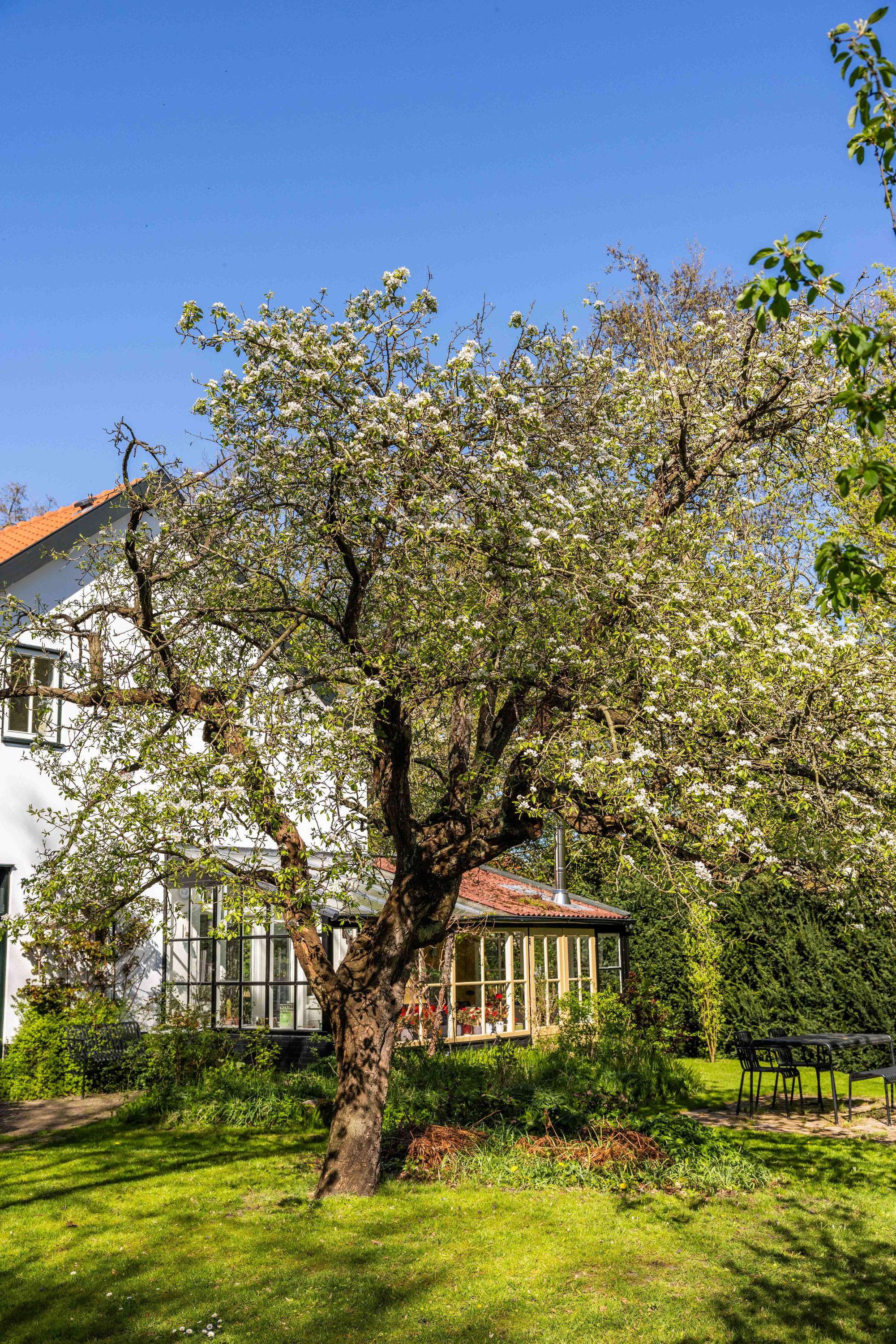 The lovely green garden offers all the privacy you could wish for and has been landscaped according to ecological principles. The impressive pear tree is a real eye-catcher. Various other fruit trees have also been planted. In the garden, there is also a practical workshop shed and a garage/carport for even more storage, parking or hobbies. On-site parking is easily available, and there is also a charging point for electric vehicles.