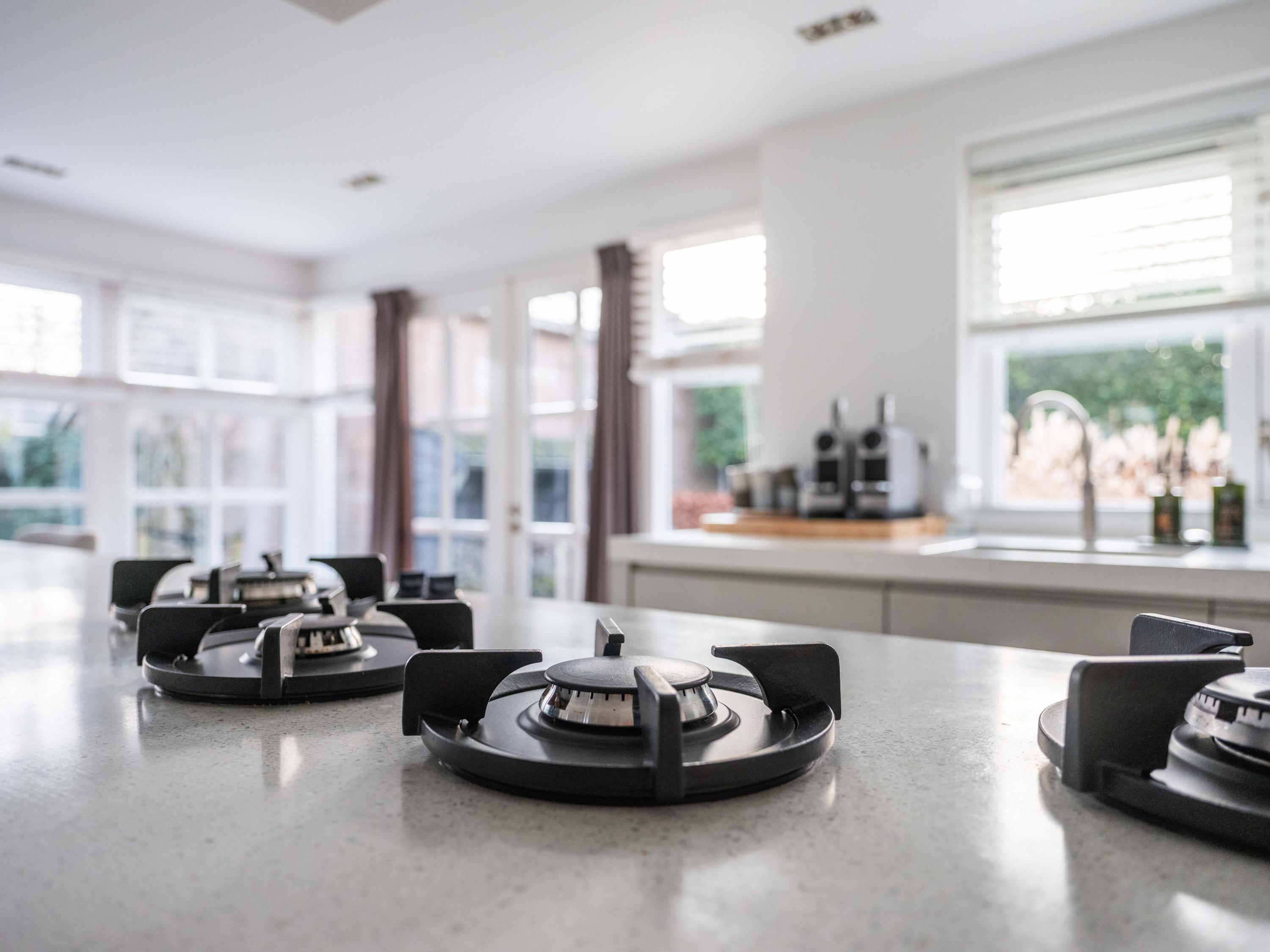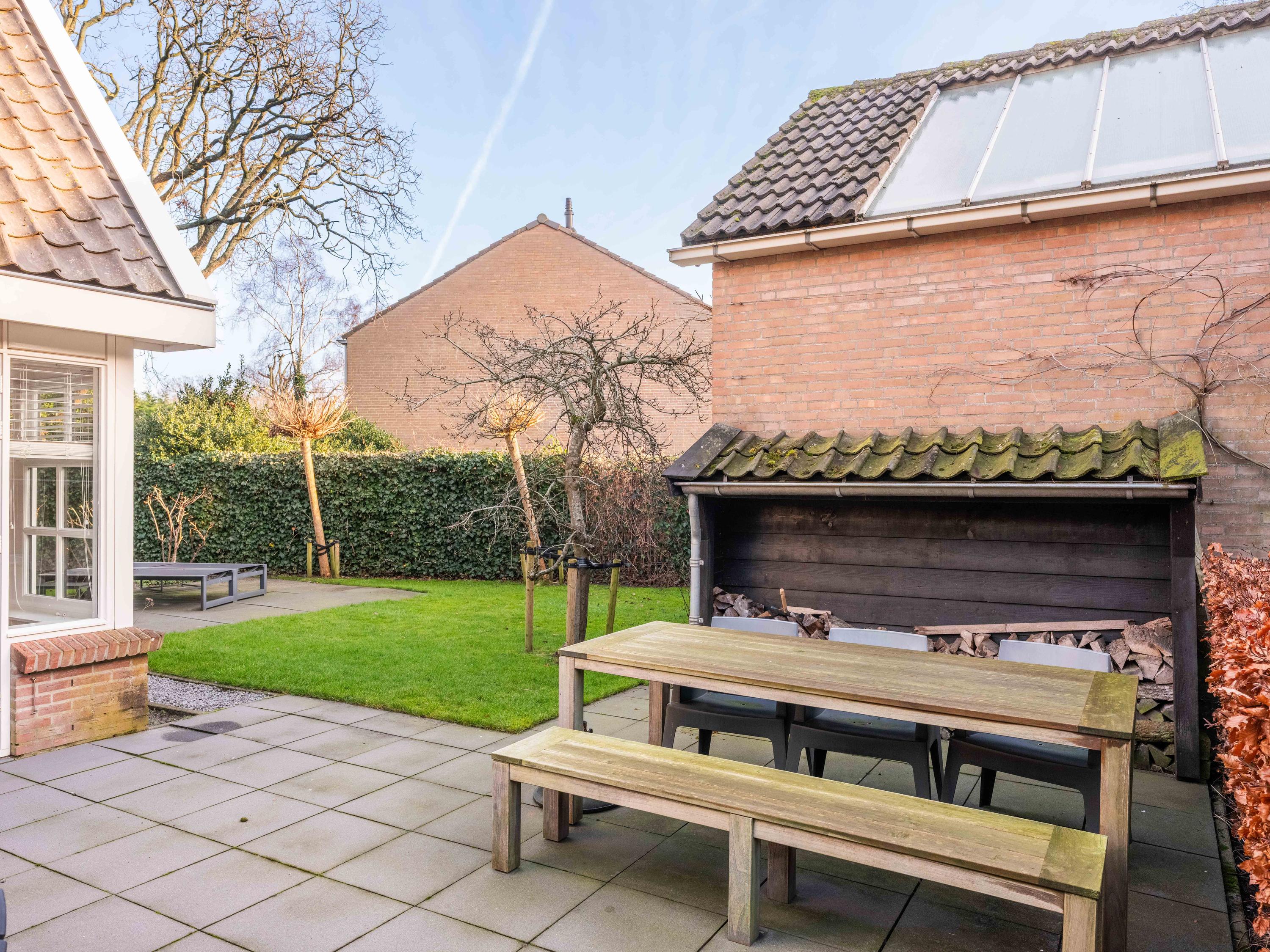 Upon entering, you immediately notice the pleasant atmosphere. The spacious hall with staircase and modern toilet provides access to the practical utility room and leads further to the dining room with fireplace. From here, double garden doors open onto the beautifully landscaped garden, allowing the indoors and outdoors to flow effortlessly into one another. The living room connects seamlessly to the designer kitchen by Piet Jan van den Kommer—a real eye-catcher that perfectly matches the country style of the house. The wooden floors and beamed ceilings enhance the feeling of warmth and character.